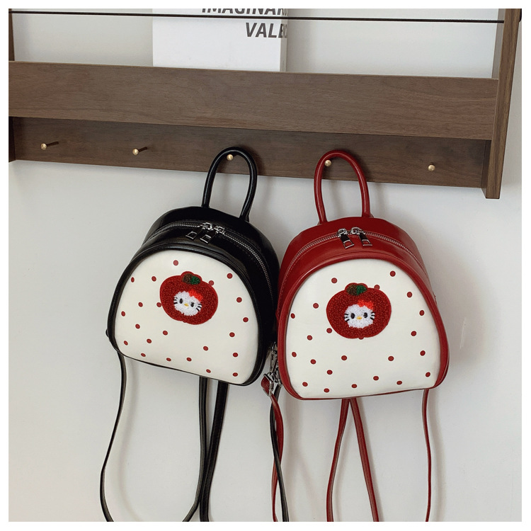 어린이 사과 폴카 도트 고양이 배낭 어린 소녀 다목적 귀여운 틈새 빨간색 핸드백 아기 여행 배낭스토어 가기