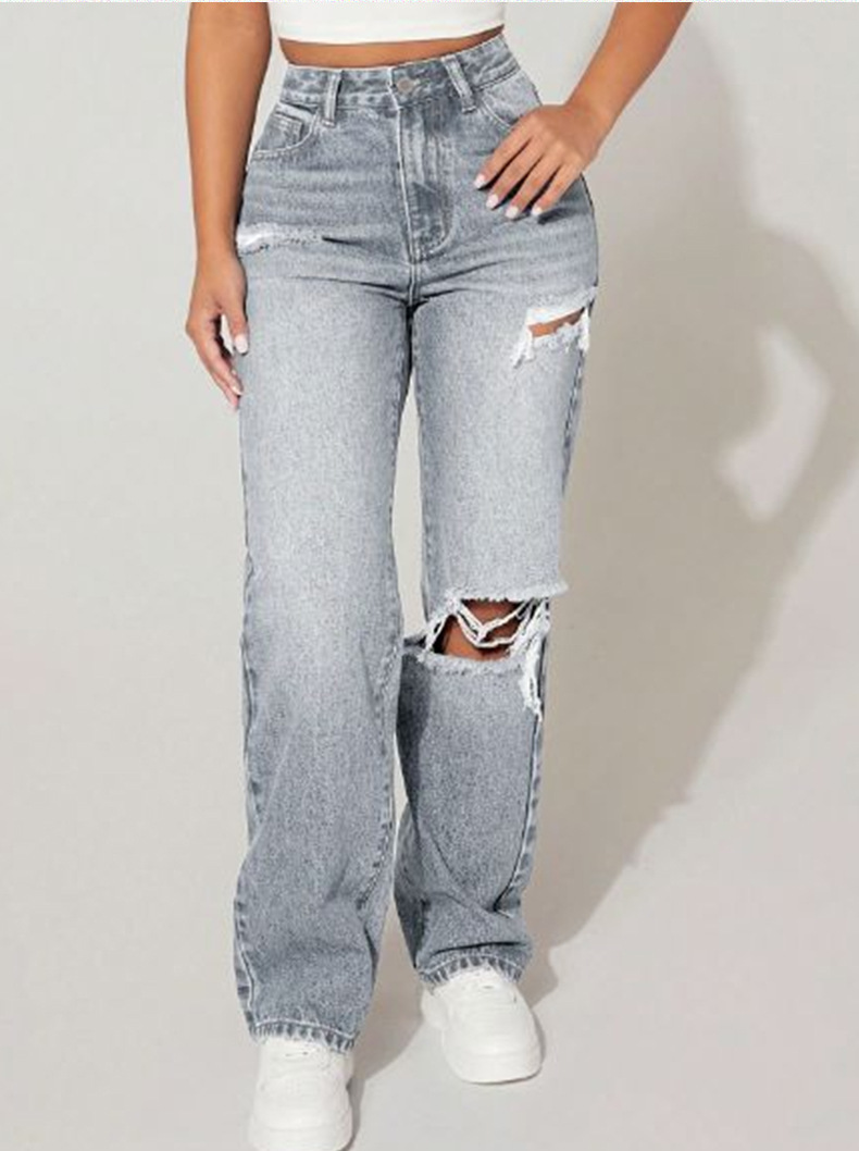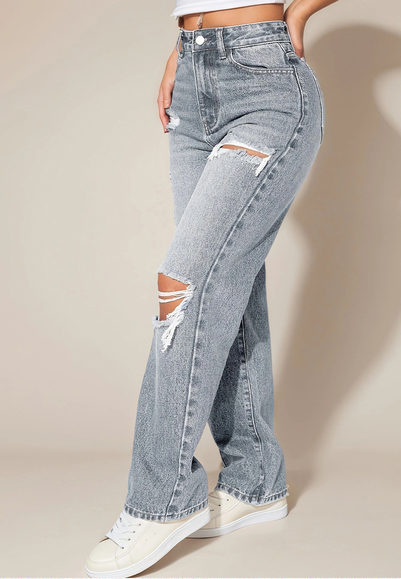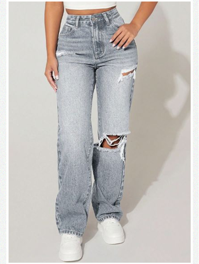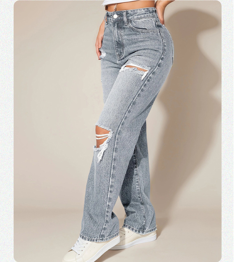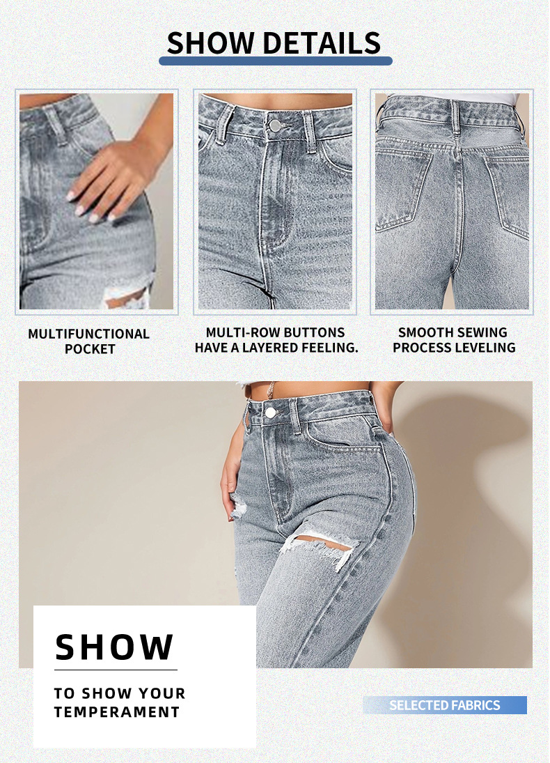 국경을 넘나드는 유럽과 미국의 인기 스트리트 트렌드 여성용 찢어진 블루 유럽과 미국 청바지스토어 가기