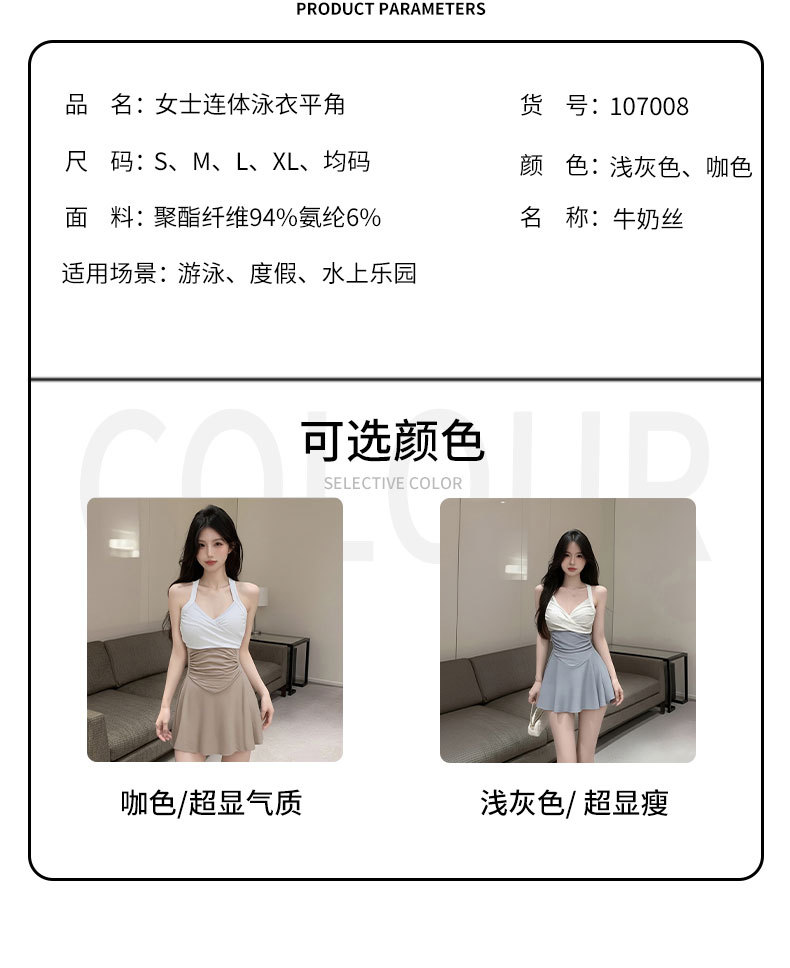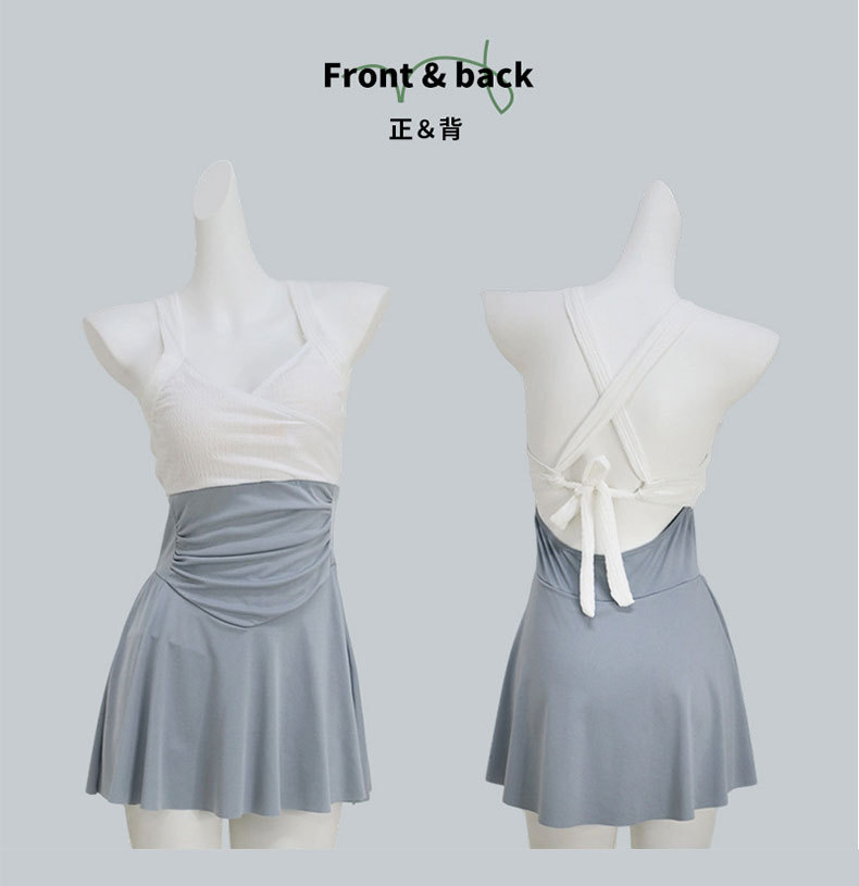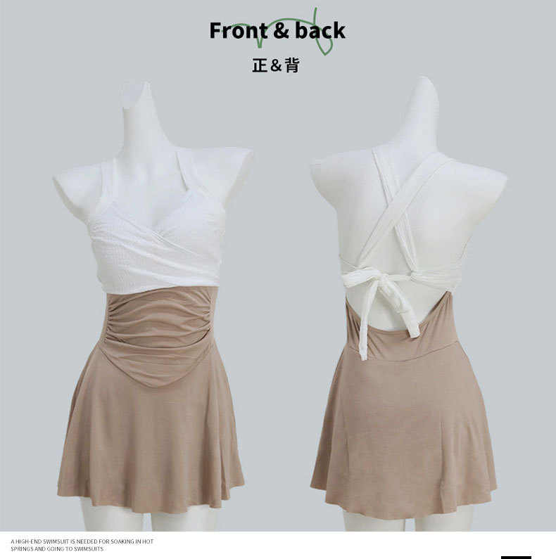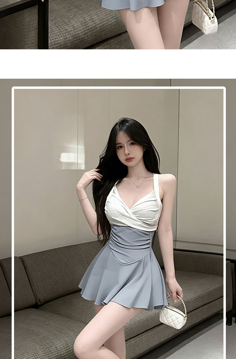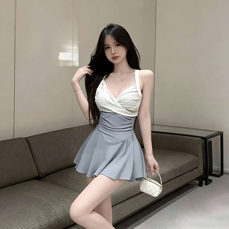 여성용 원피스 수영복, 새로운 스타일, 순수한 섹시 스타일, 심플한 서스펜더, 배색, 슬림핏, 고급 백리스 스커트 수영복스토어 가기