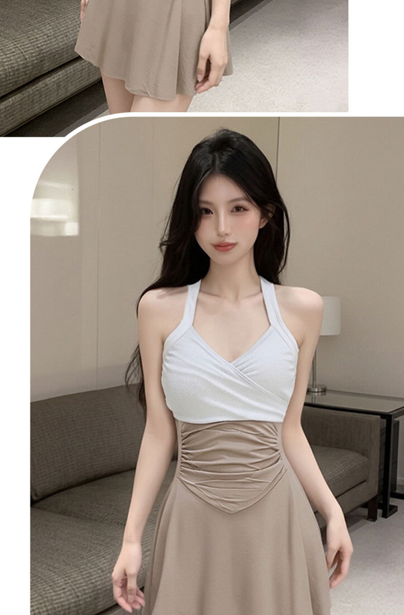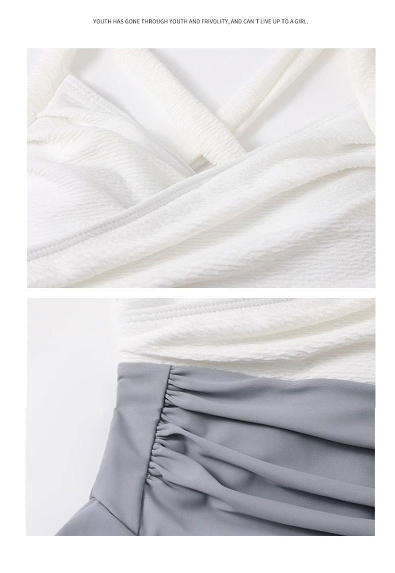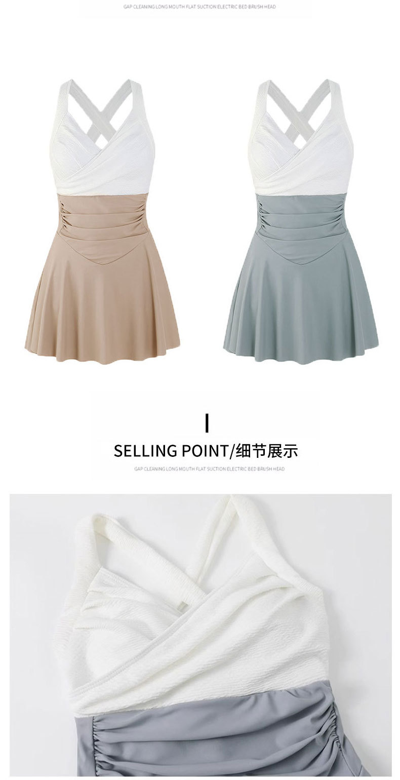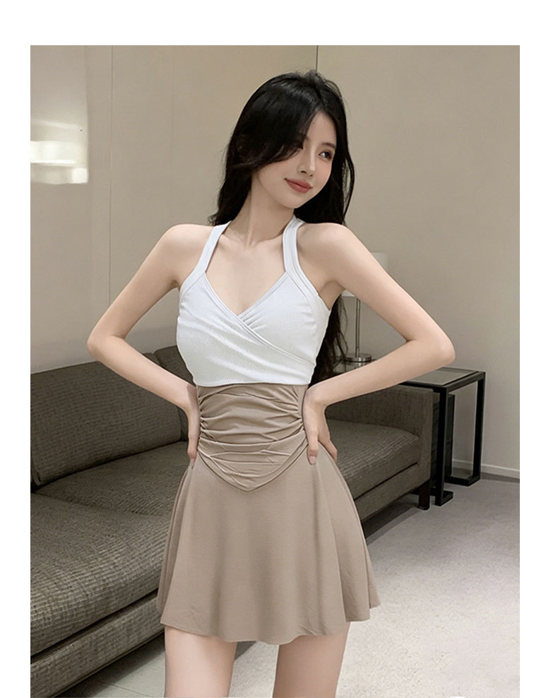 여성용 원피스 수영복, 새로운 스타일, 순수한 섹시 스타일, 심플한 서스펜더, 배색, 슬림핏, 고급 백리스 스커트 수영복스토어 가기