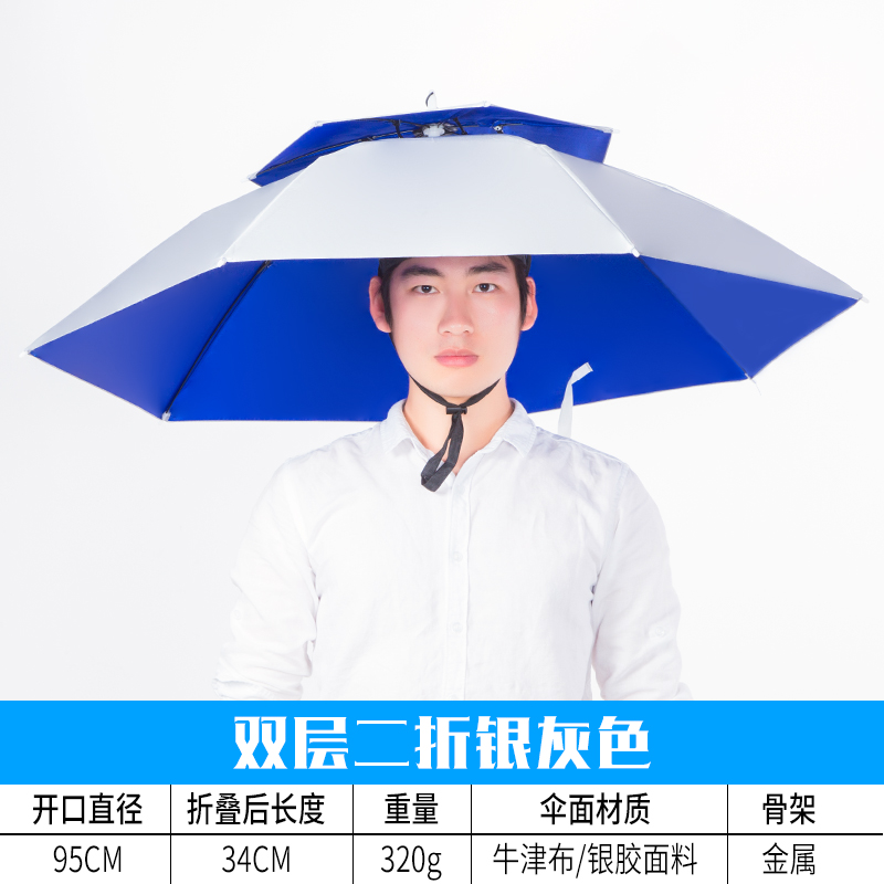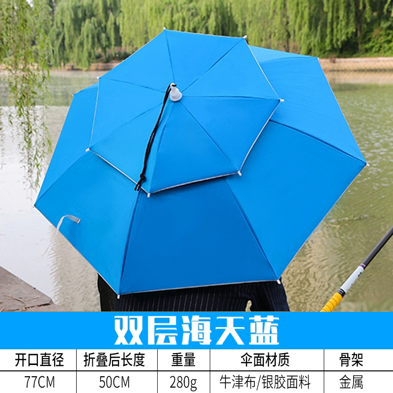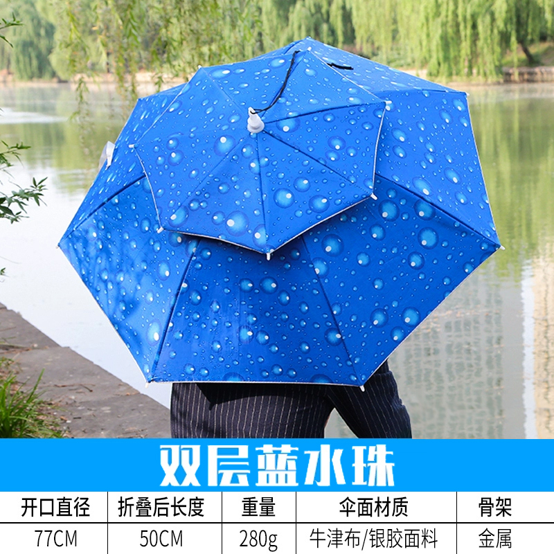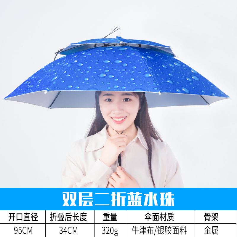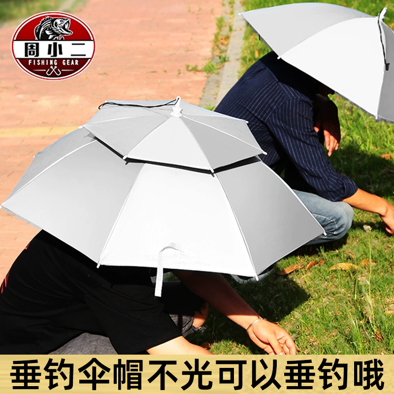 우산 모자, 머리 장착형 이중층 대형 파라솔, 방수 접이식 오버헤드 우산, 야외 낚시 및 차 따기 모자