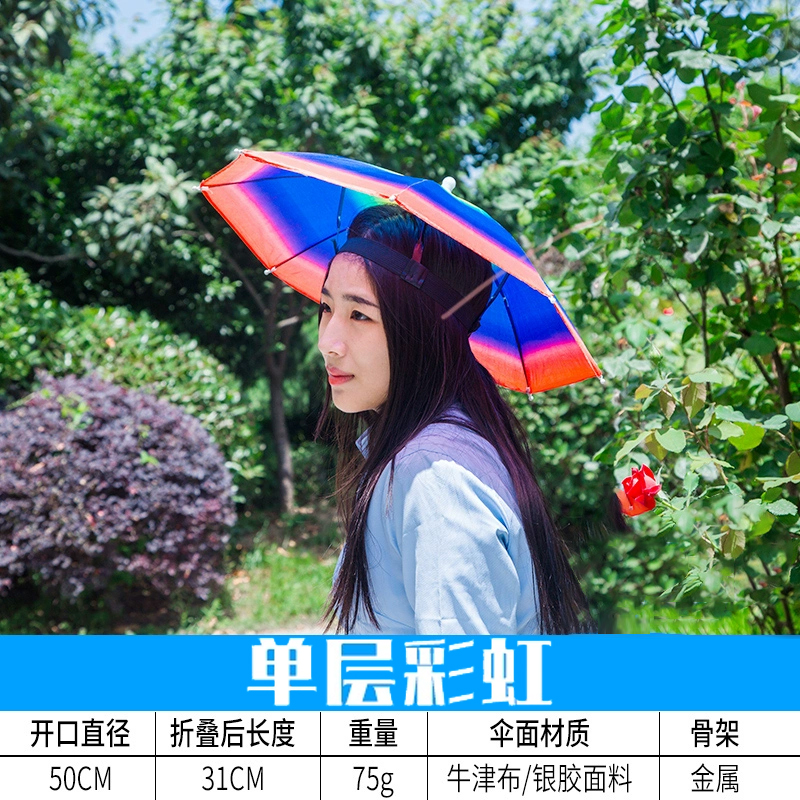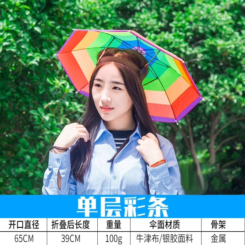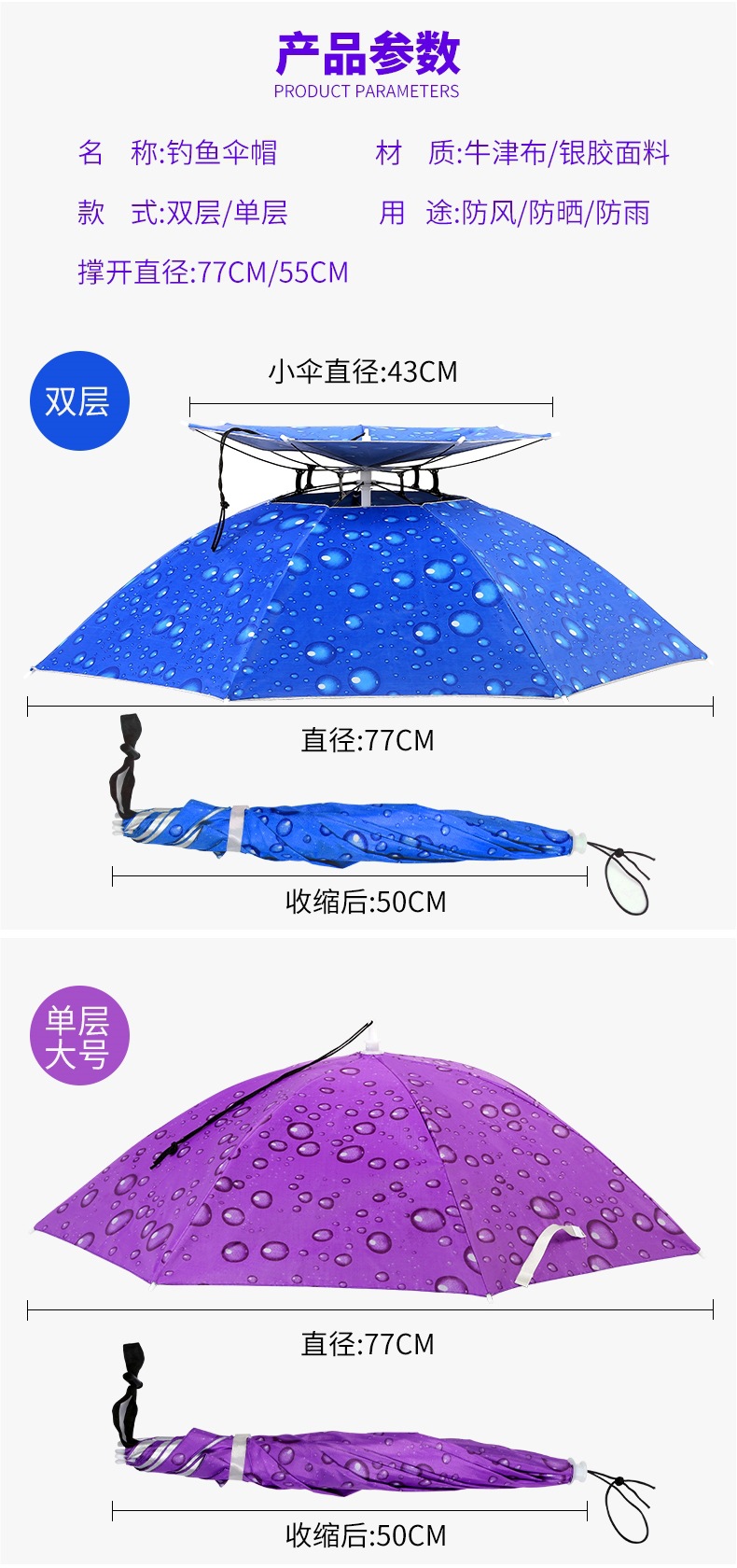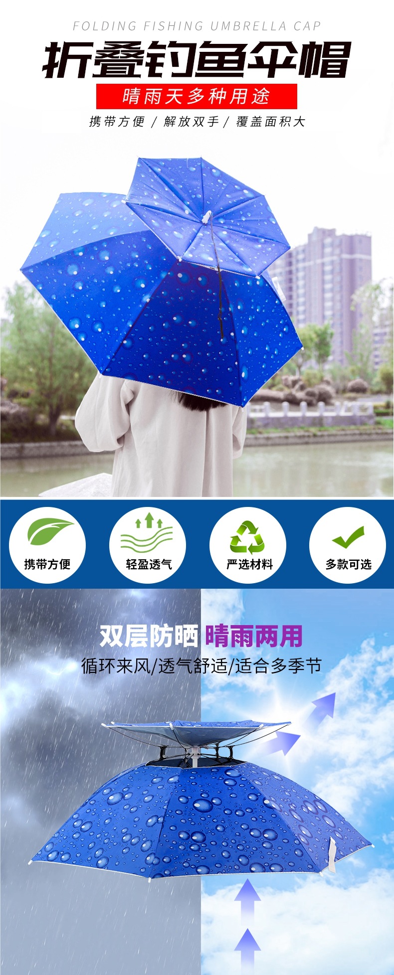 우산 모자, 머리 장착형 이중층 대형 파라솔, 방수 접이식 오버헤드 우산, 야외 낚시 및 차 따기 모자