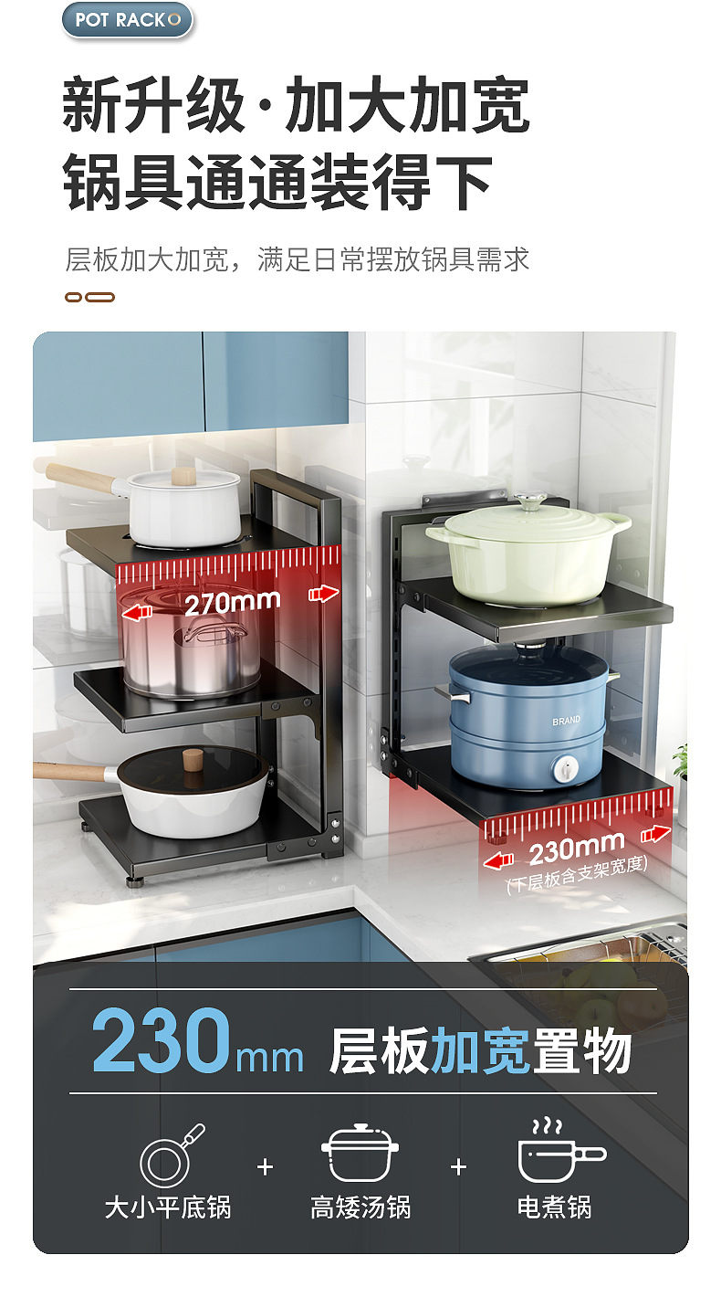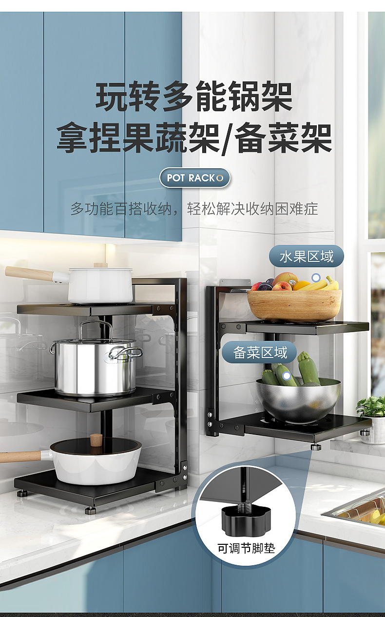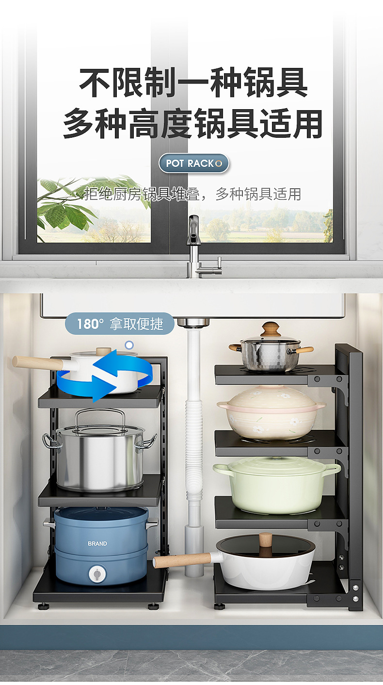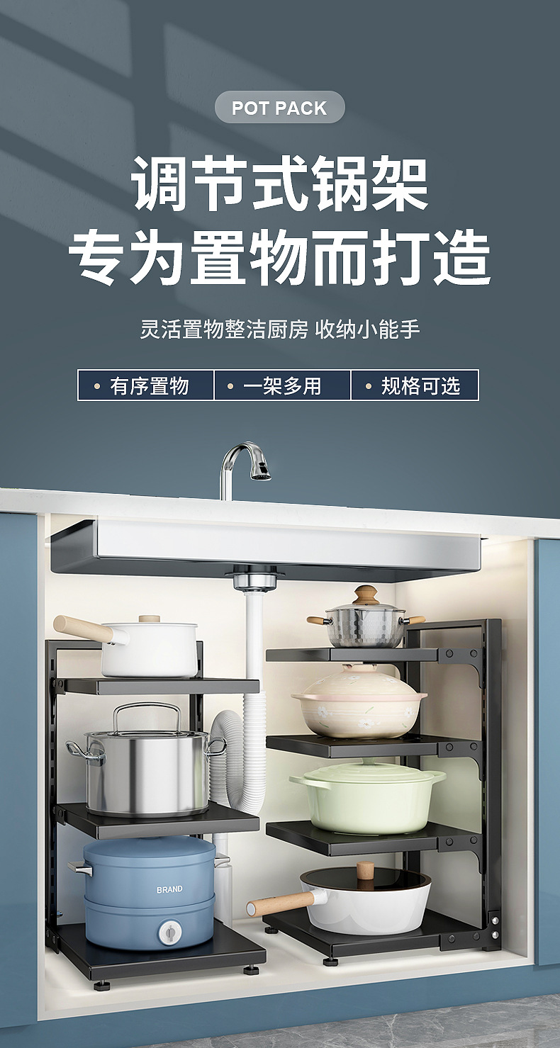 주방 수납 선반, 가정용 냄비 선반, 다기능 냄비 및 조리기구 다층 수납 선반, 캐비닛 아래 싱크대 냄비 선반