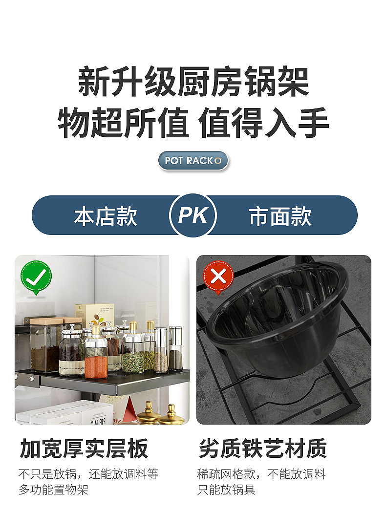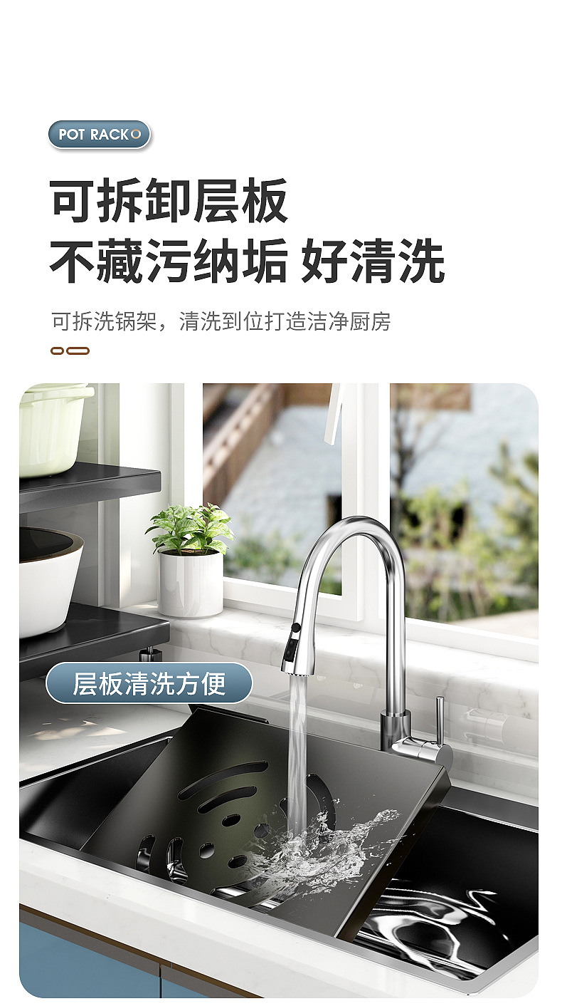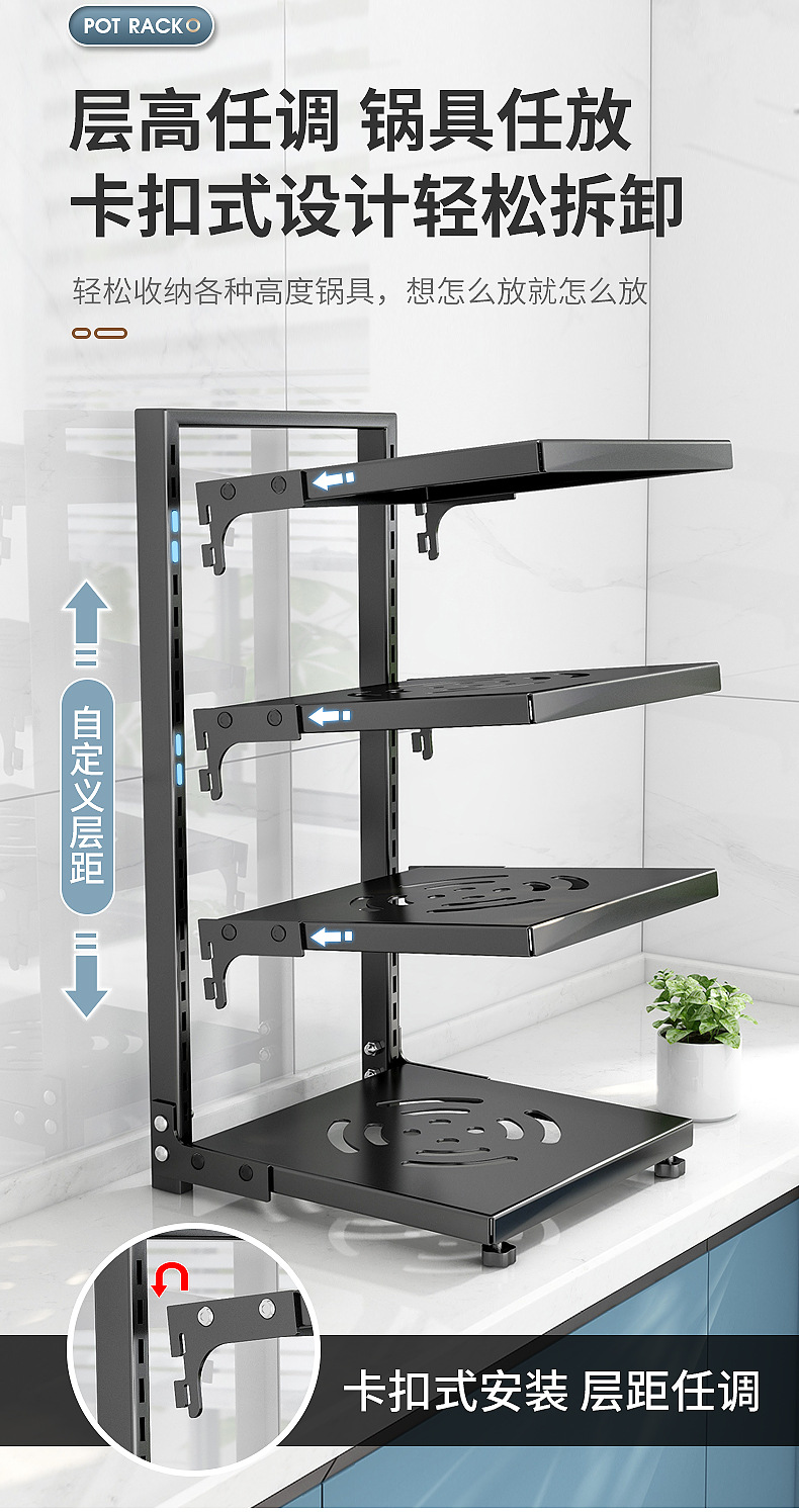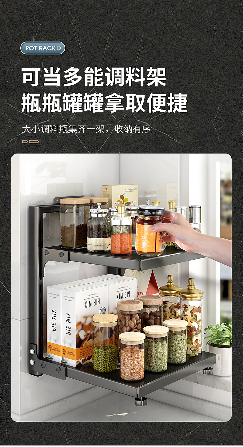 주방 수납 선반, 가정용 냄비 선반, 다기능 냄비 및 조리기구 다층 수납 선반, 캐비닛 아래 싱크대 냄비 선반