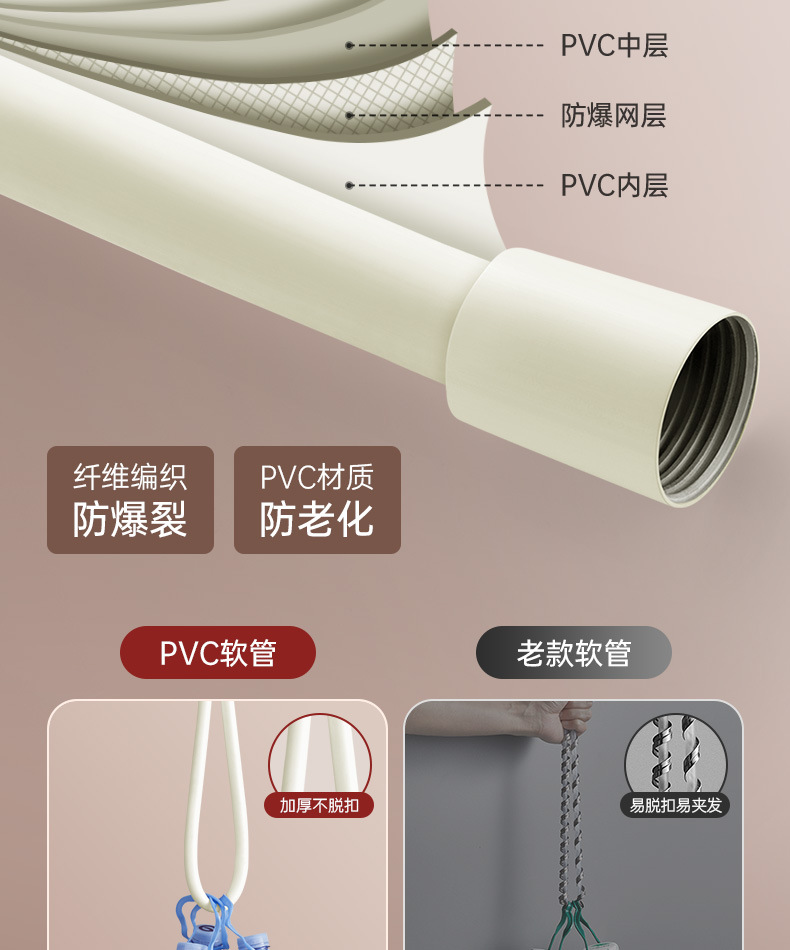 방폭형 샤워 호스, 온수기 배출구, 범용 레인 PVC 연결 호스, 욕실 샤워 헤드 수도관