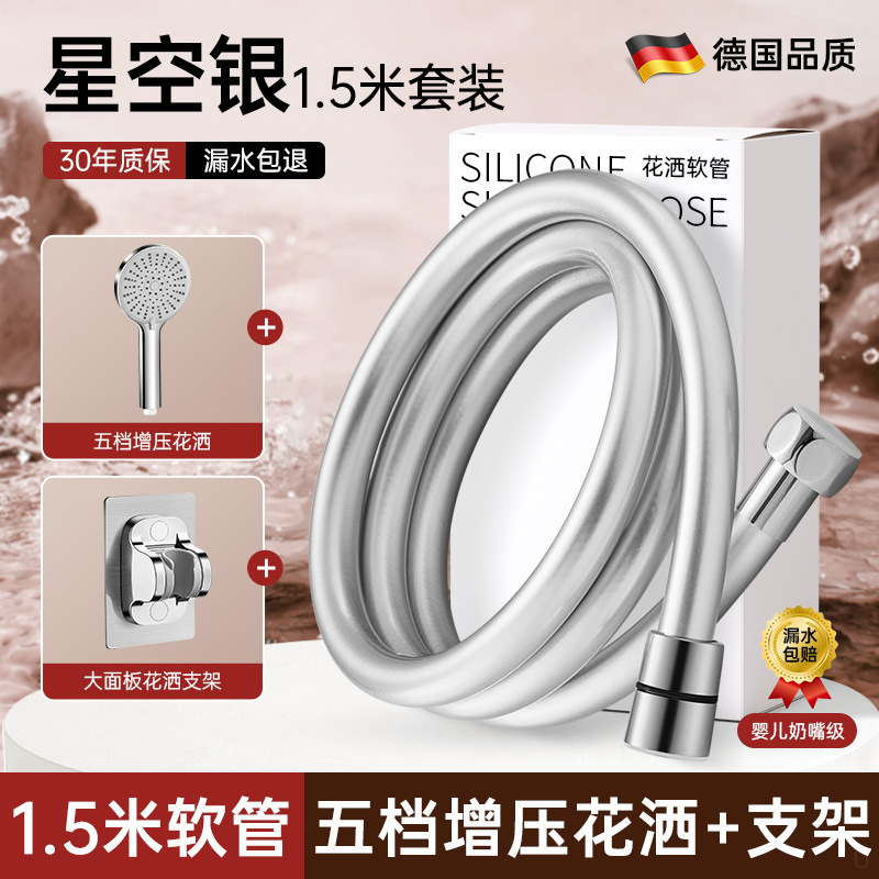 • [브라이트 실버 세트 5] PVC 파이프 1.5m 개 + 5단 슈퍼차저 샤워기 + 펀치 프리 브라켓