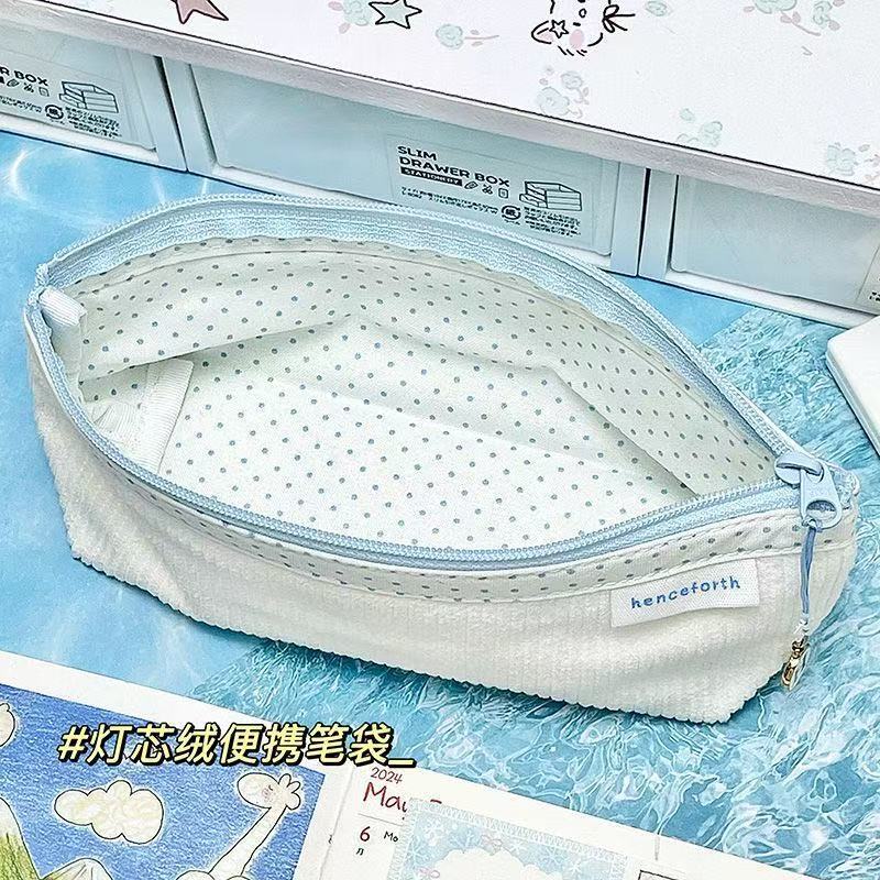 새로운 도트무늬 안감의 파란색과 흰색 한국식 일본식 간단한 스타일의 소녀 하트 필통은 작고 절묘합니다(지퍼에 펜던트가 없습니다)스토어 가기