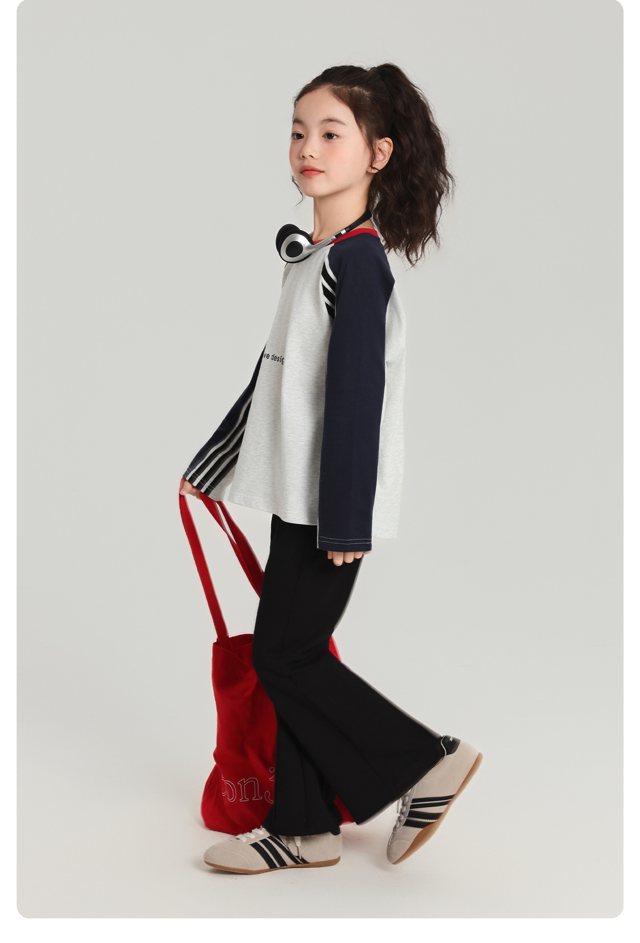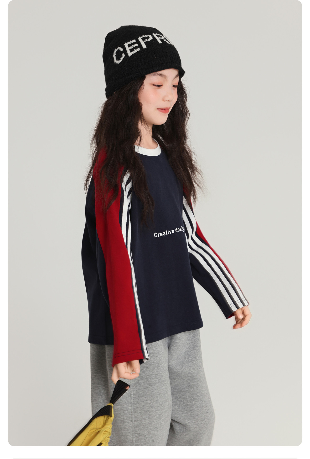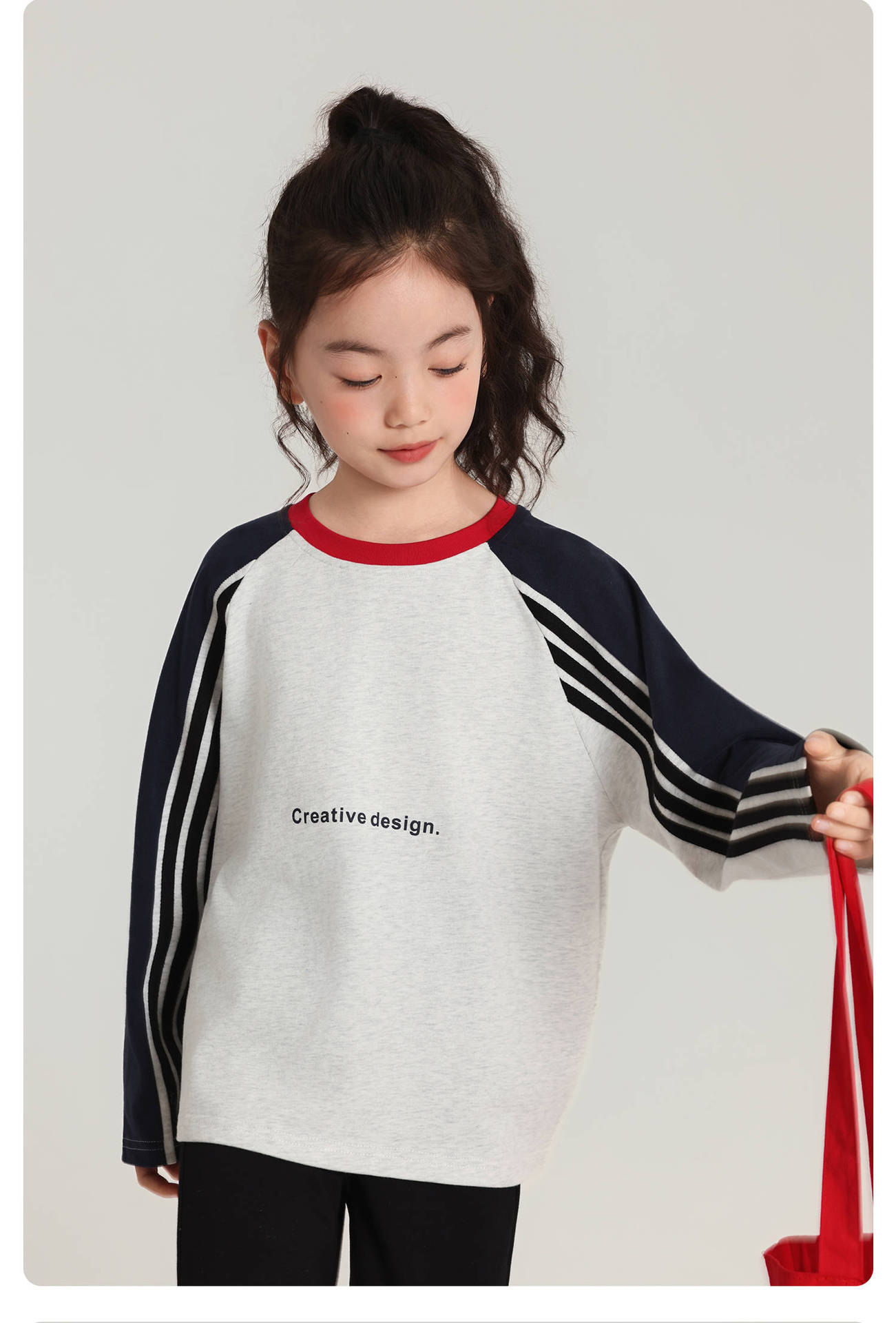 Pudding Haru 아동용 바닥 셔츠 스트라이프 소녀 긴팔 티셔츠 2025 가을 새 스타일 소녀 다용도 탑