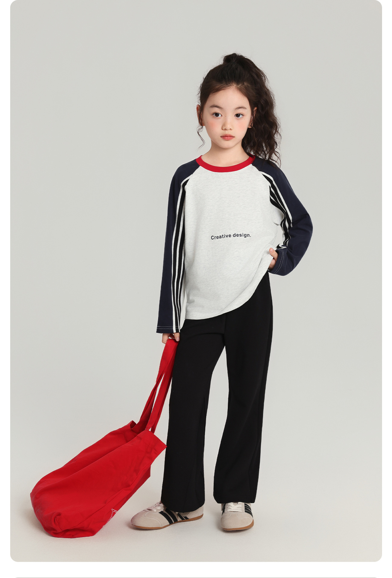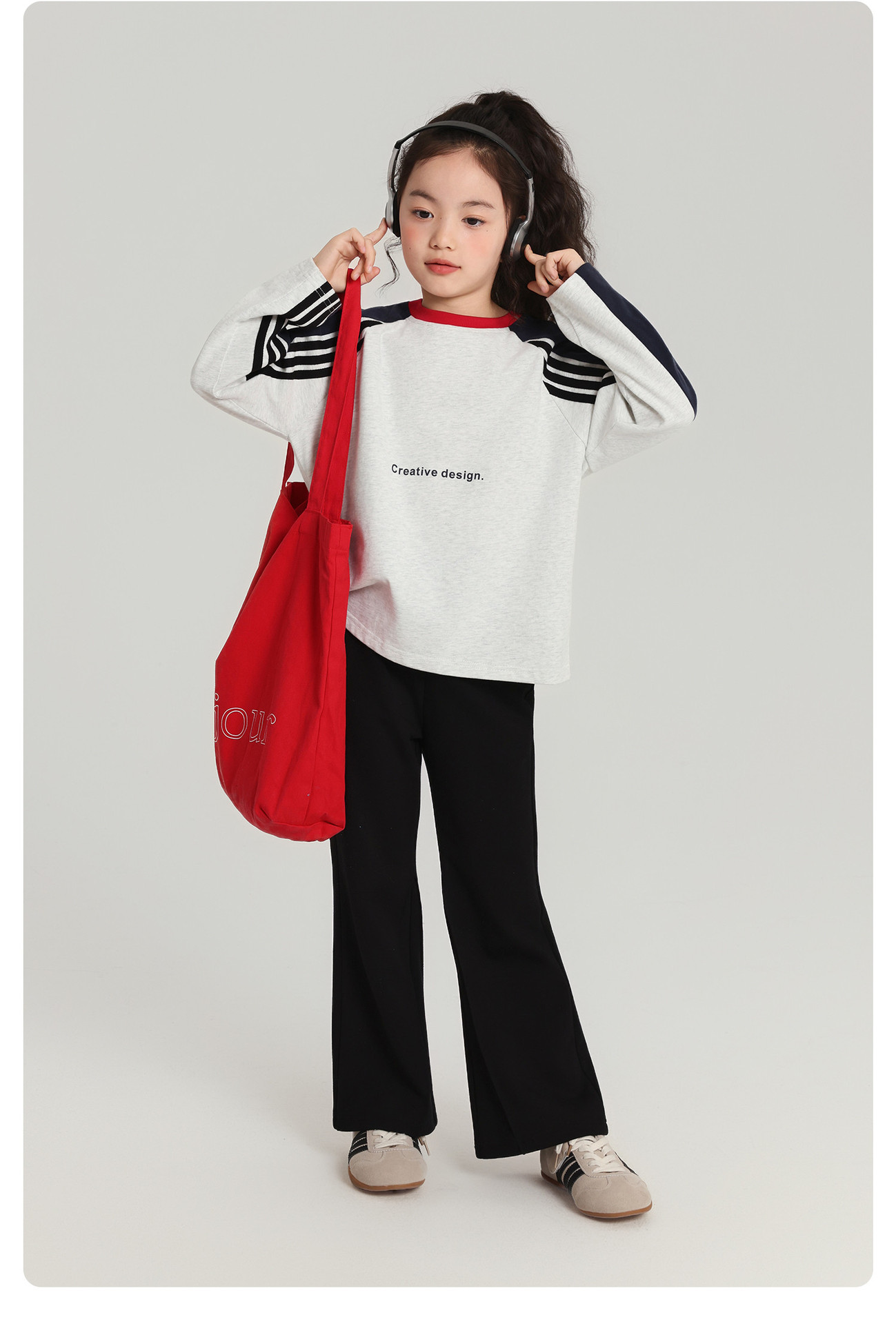 Pudding Haru 아동용 바닥 셔츠 스트라이프 소녀 긴팔 티셔츠 2025 가을 새 스타일 소녀 다용도 탑스토어 가기