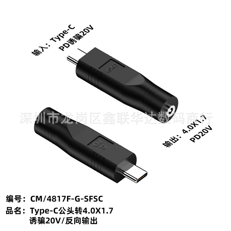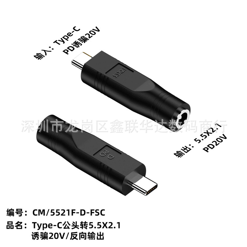 产品名称:DC转接头DC母座输出转Type-c公输入笔记本转接头PD100W诱骗转换头