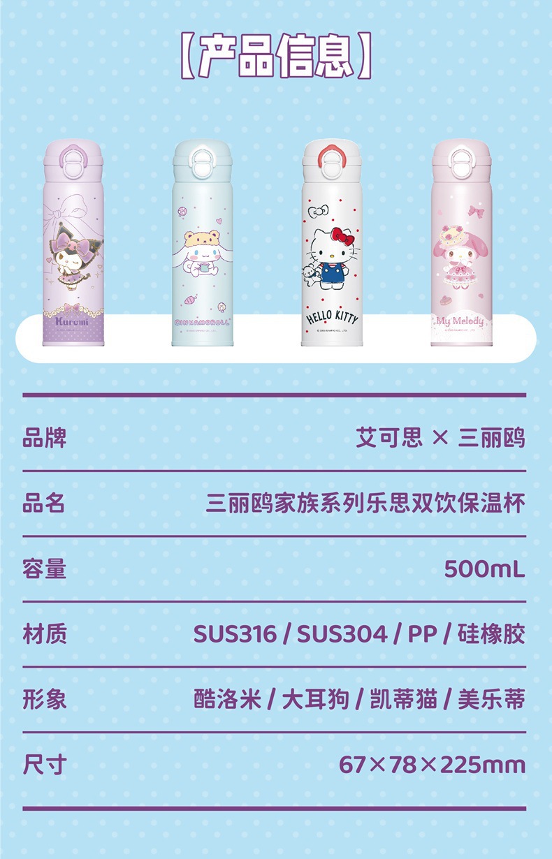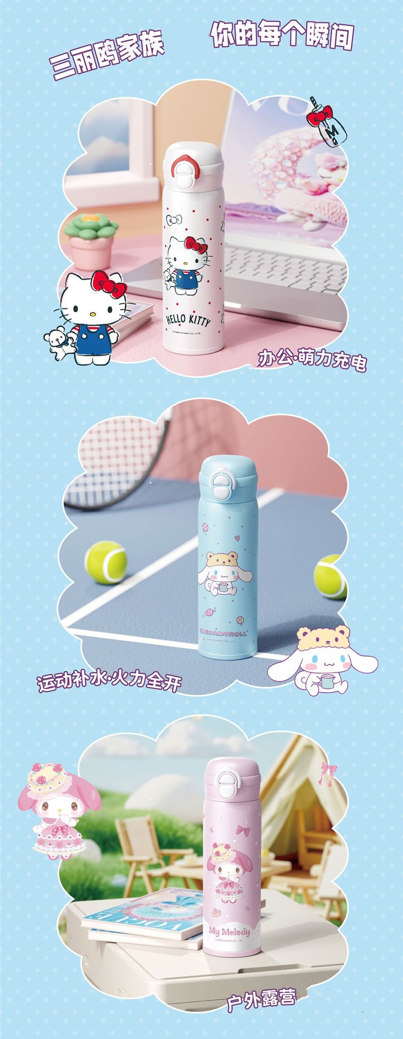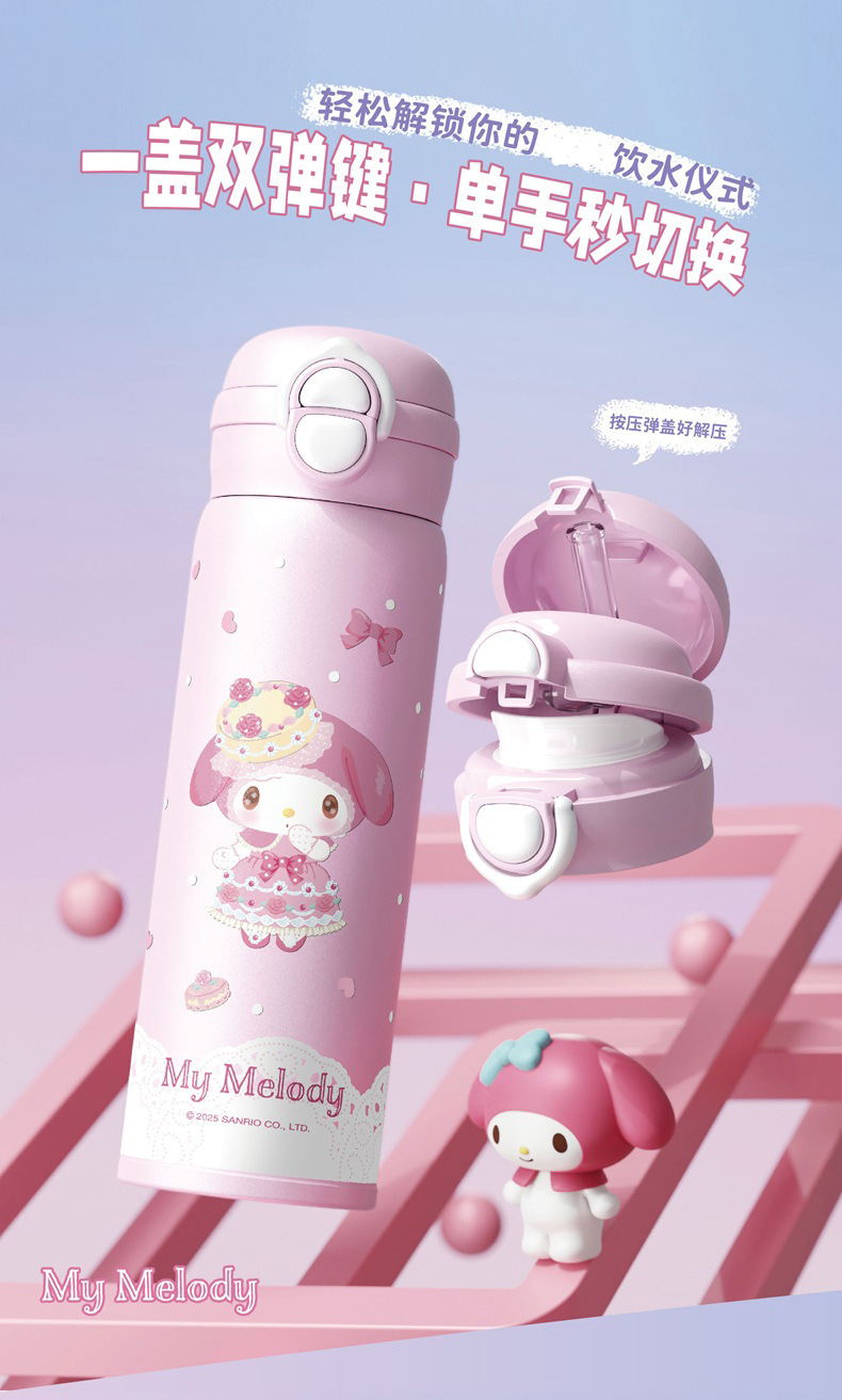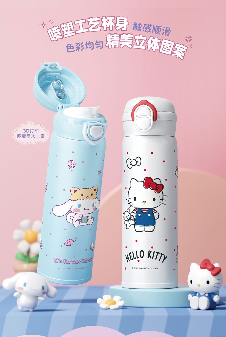 남학생과 여학생을 위한 산리오 레시 더블 드링크 보온병 컵 귀여운 만화 휴대용 밀짚 컵 새로운 316 워터 컵스토어 가기
