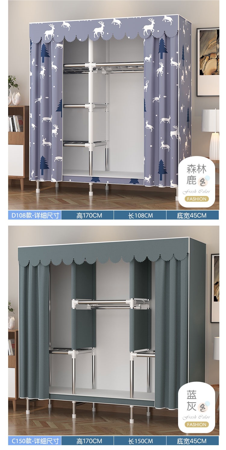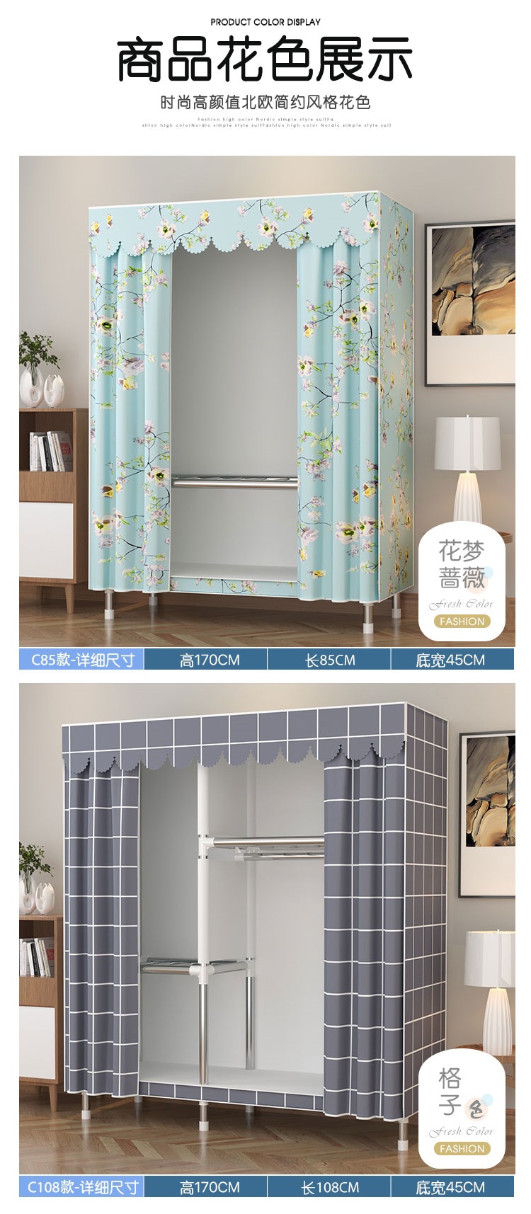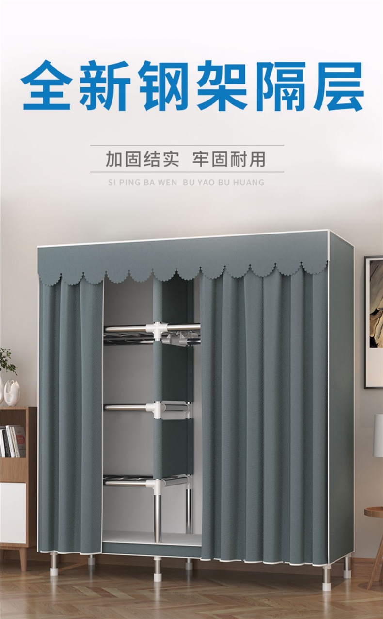 가정용 침실용 간이 옷장, 청소년기숙사용 천옷장, 견고하고 내구성이 뛰어난 조립식, 심플하고 모던한 올스틸 프레임 옷장스토어 가기
