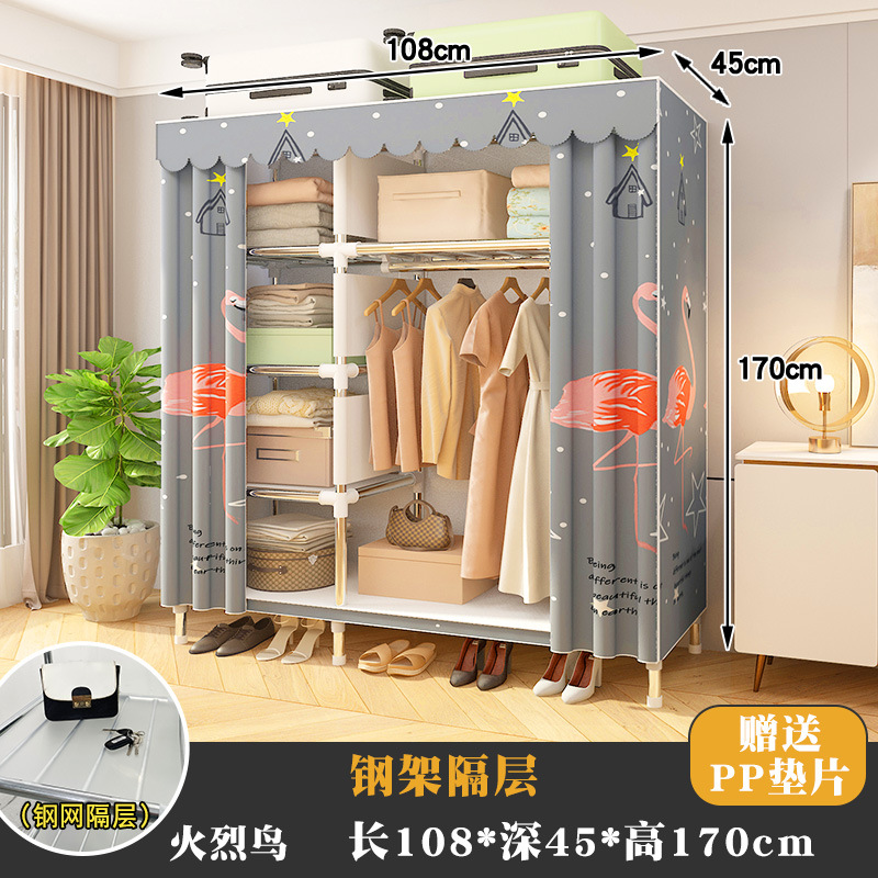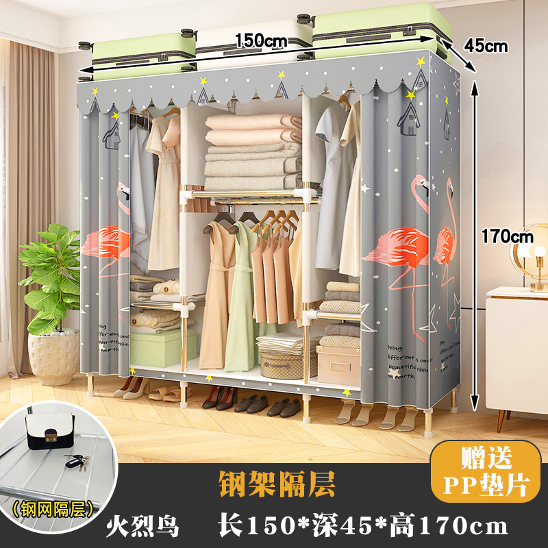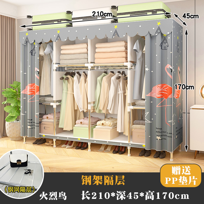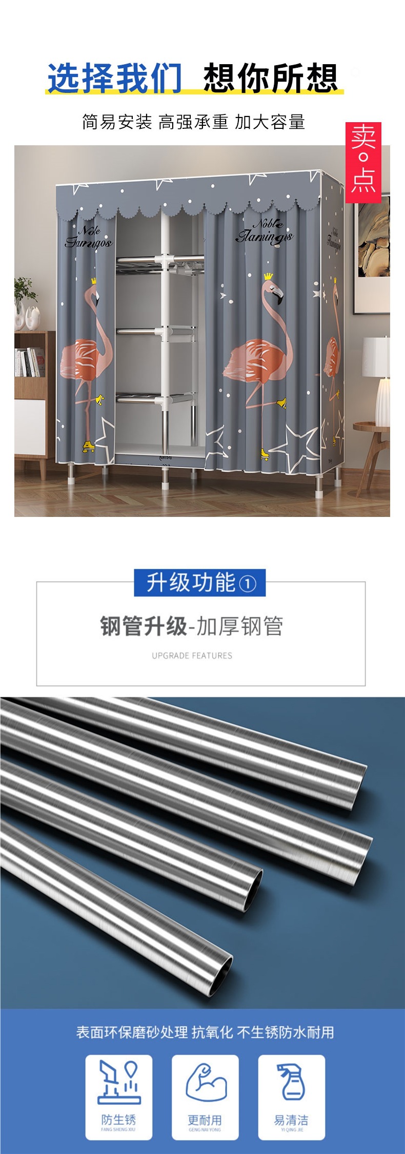 가정용 침실용 간이 옷장, 청소년기숙사용 천옷장, 견고하고 내구성이 뛰어난 조립식, 심플하고 모던한 올스틸 프레임 옷장스토어 가기