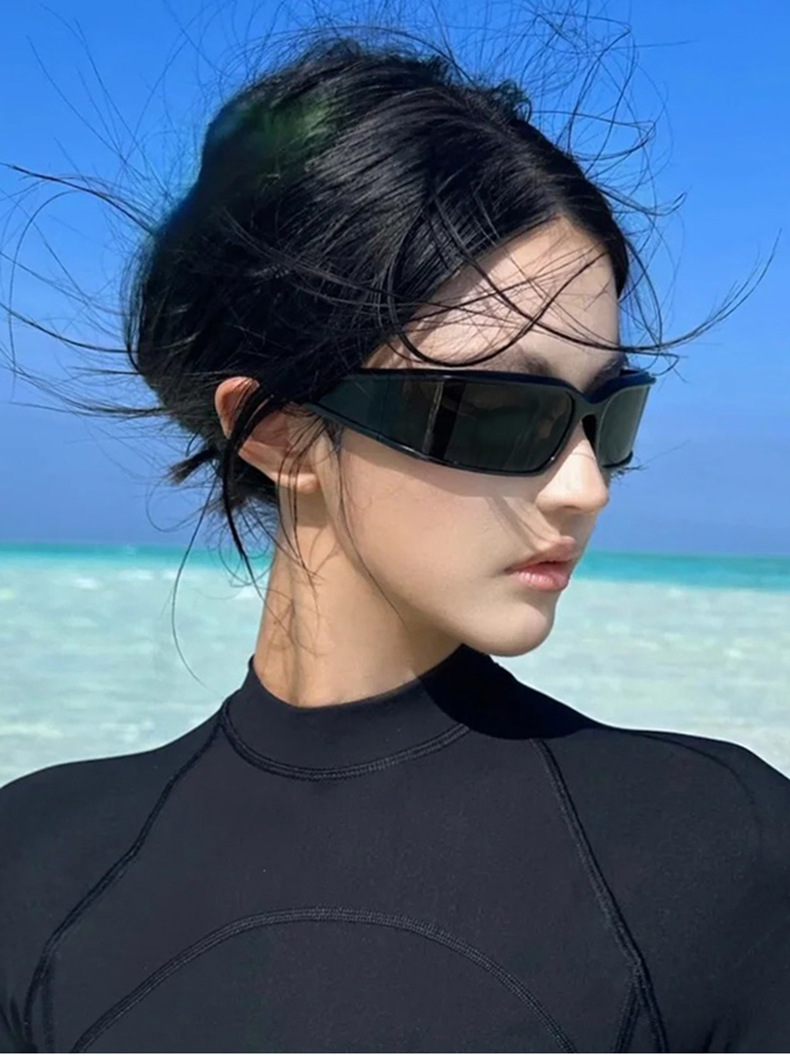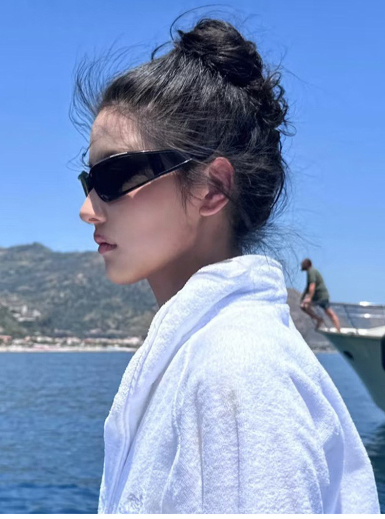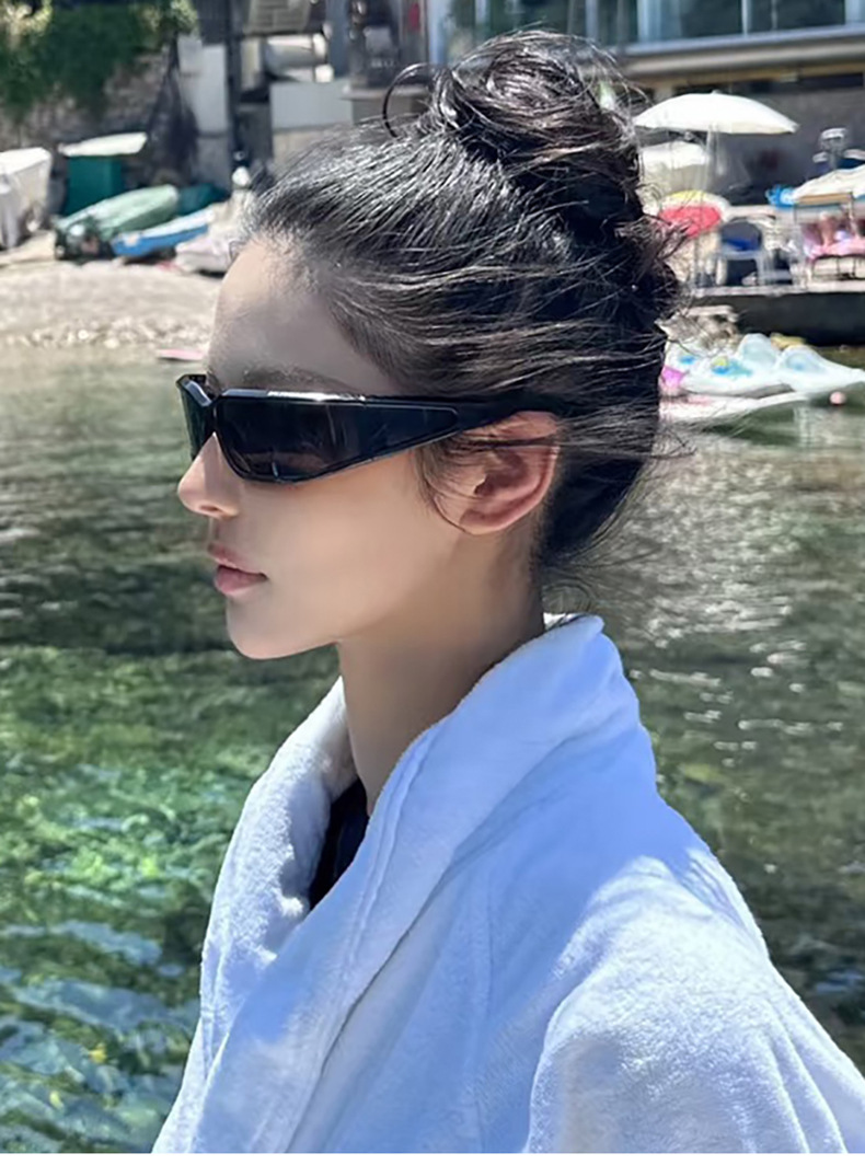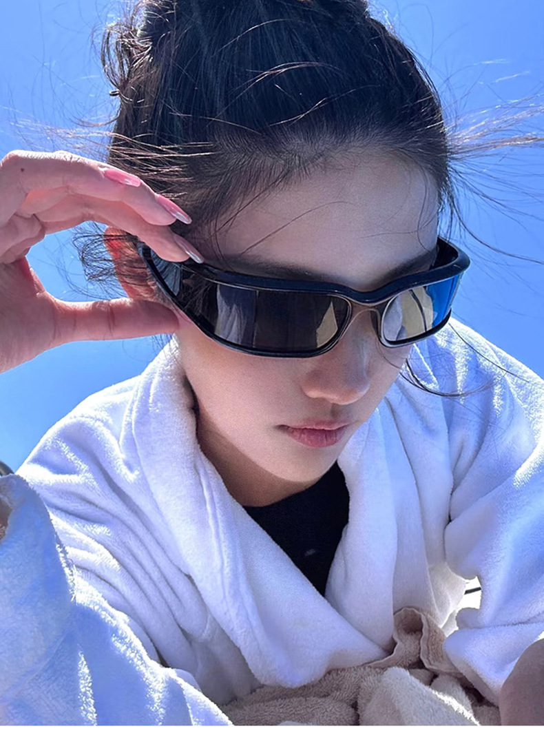 패셔너블한 곡선형 스포츠 사이클링 선글라스 크로스보더 유럽 및 미국 인터넷 연예인 야외 자외선 차단 선글라스 Y2K 선글라스스토어 가기