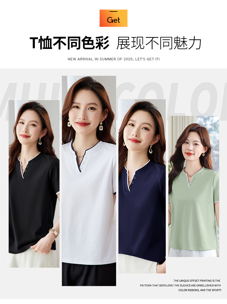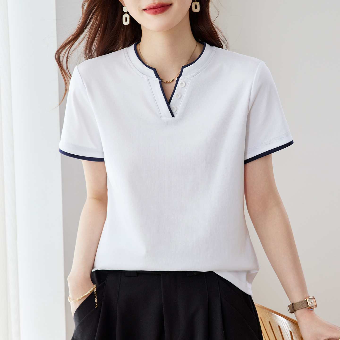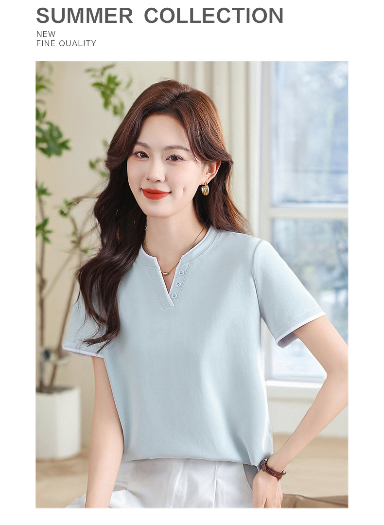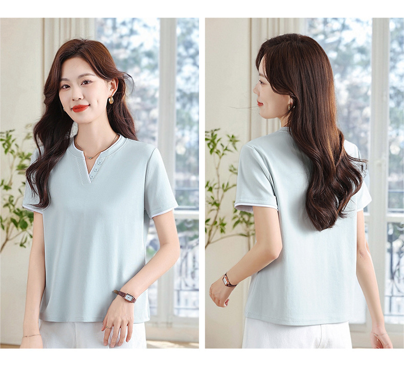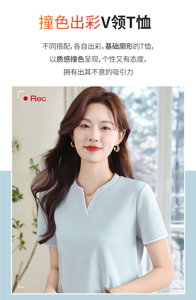 브이넥 숄더라인 반팔 티셔츠 여성 2026 신상 여름 인기 여성복 슬림핏 예쁜 나이감소 상의 반팔 티셔츠스토어 가기
