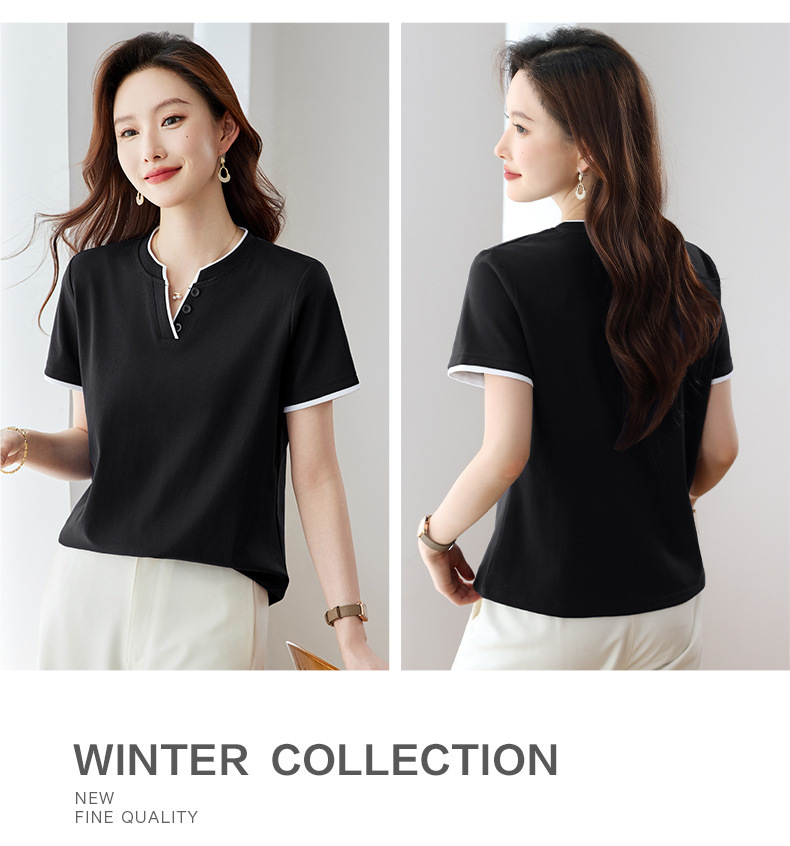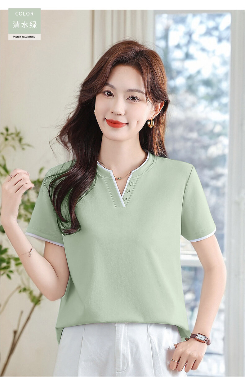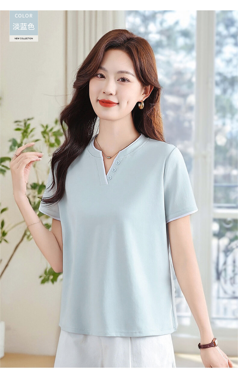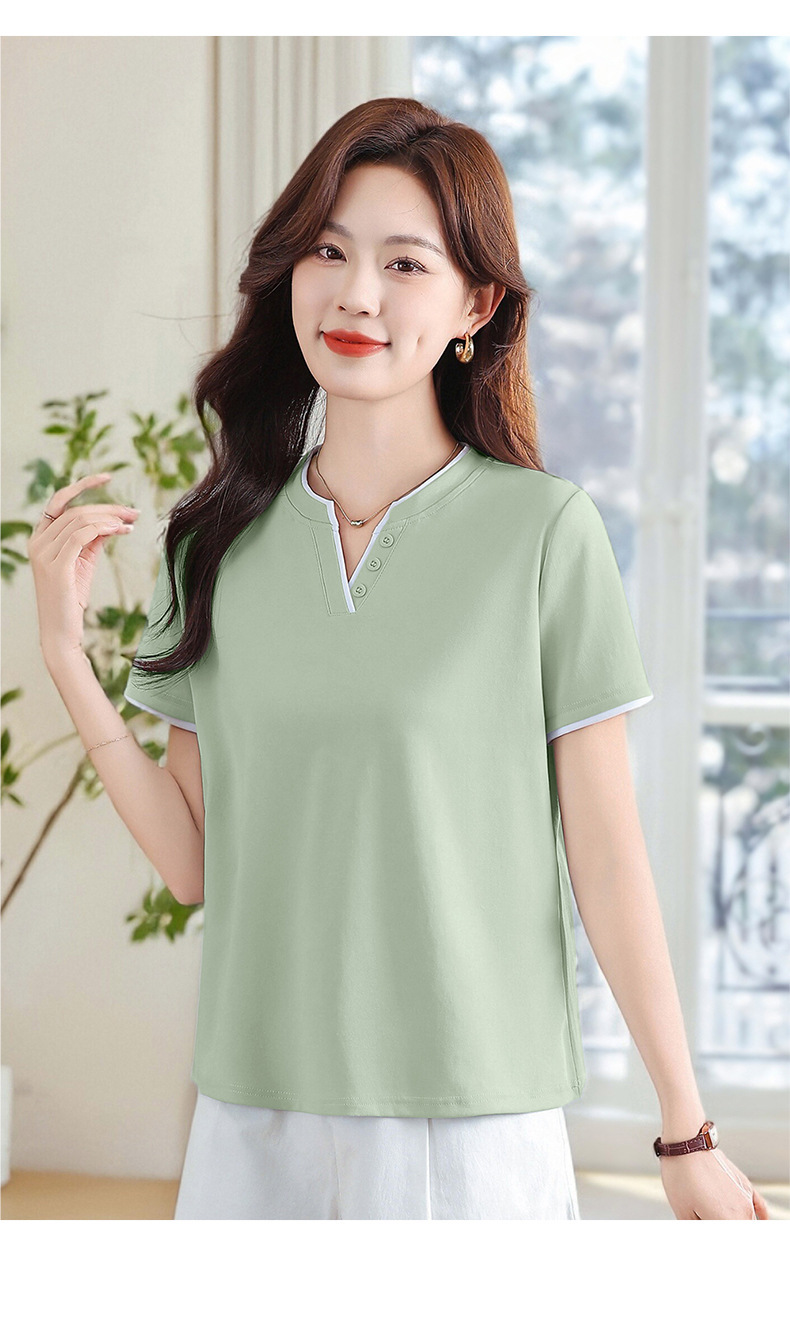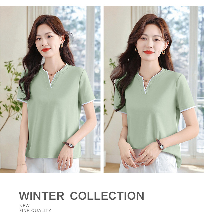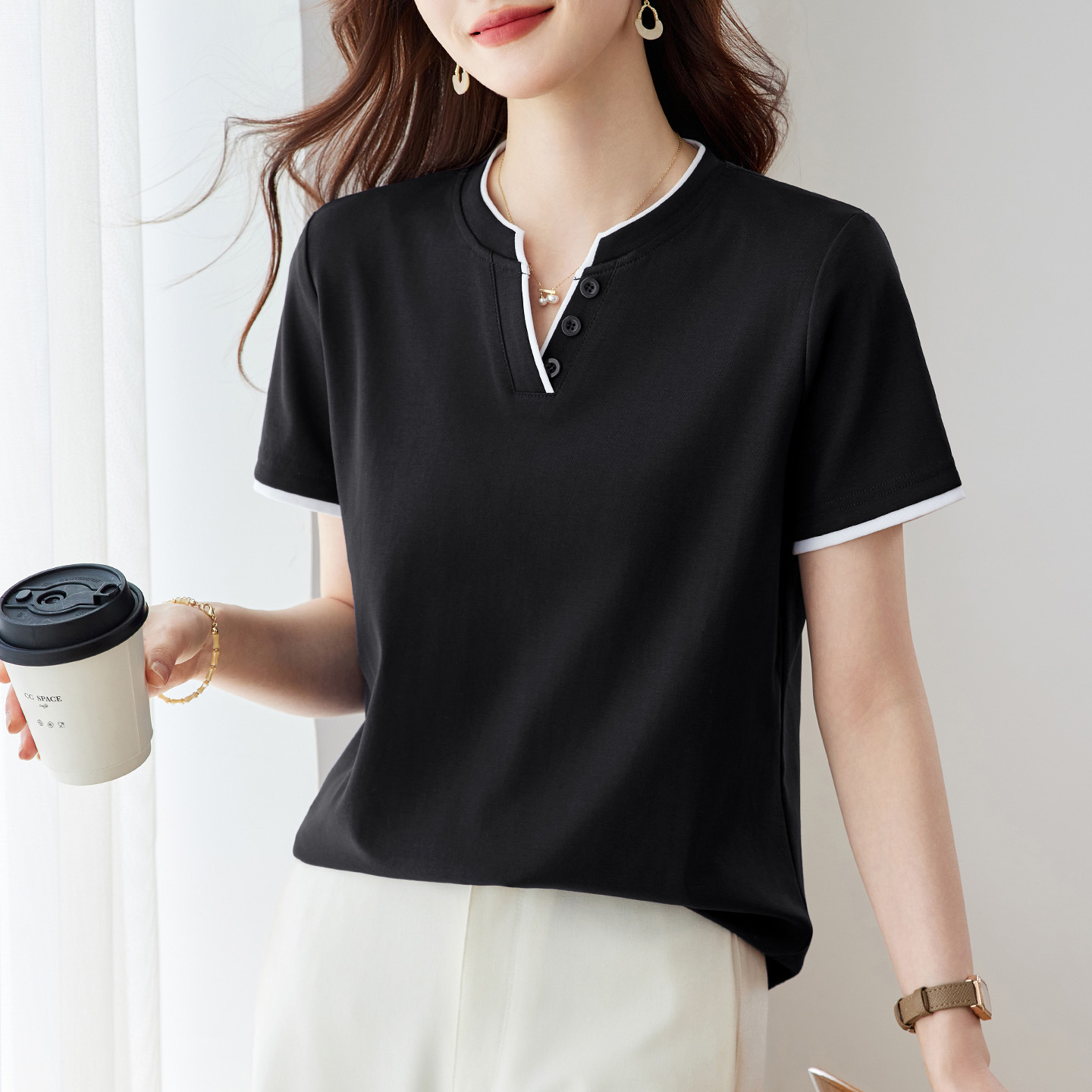 브이넥 숄더라인 반팔 티셔츠 여성 2026 신상 여름 인기 여성복 슬림핏 예쁜 나이감소 상의 반팔 티셔츠스토어 가기