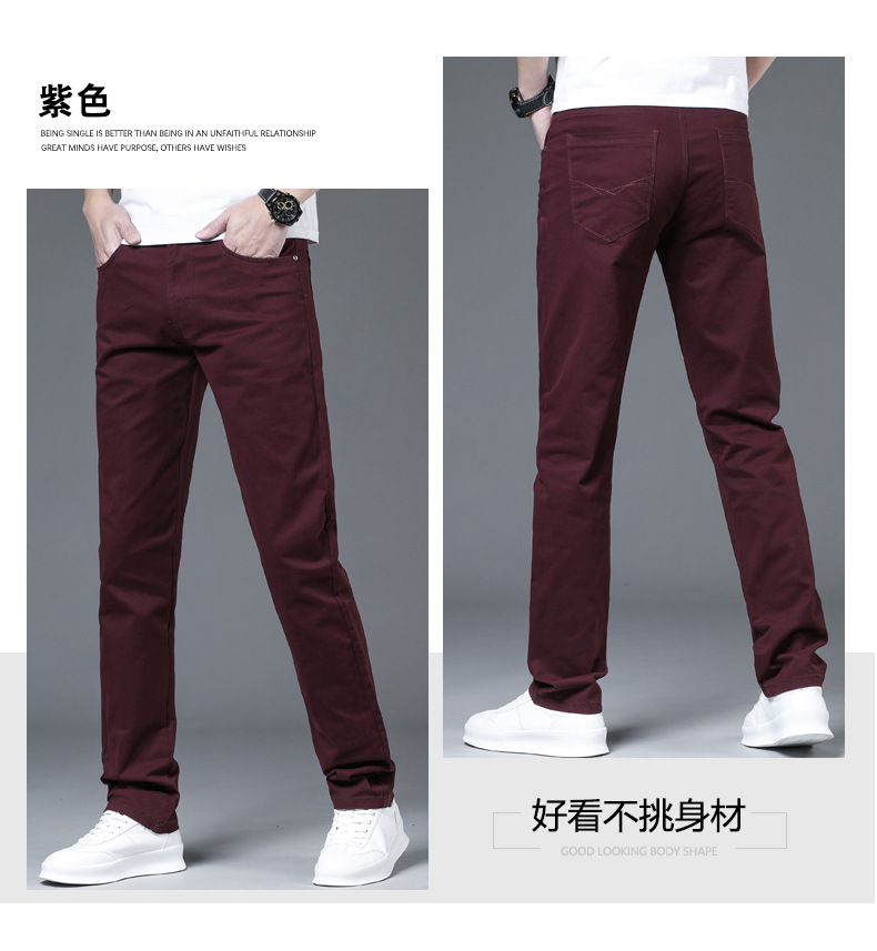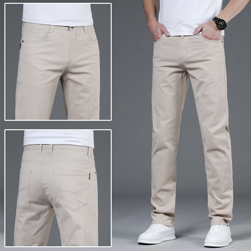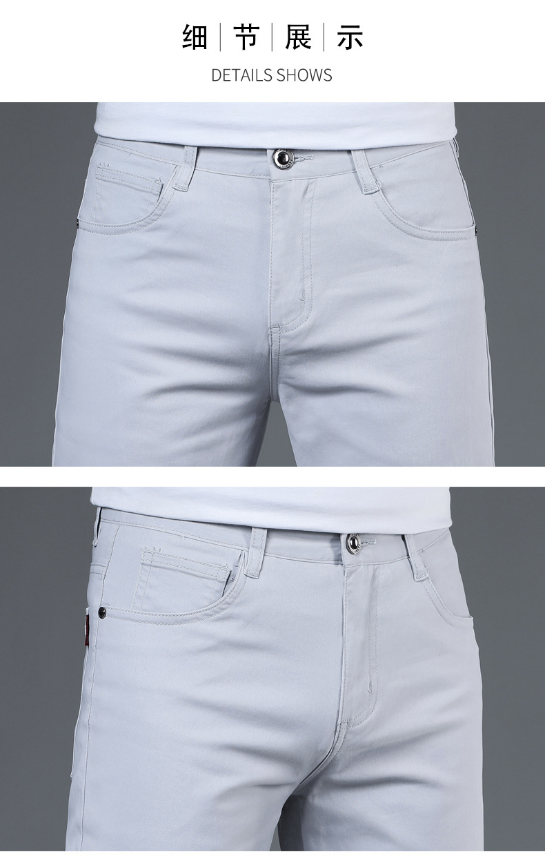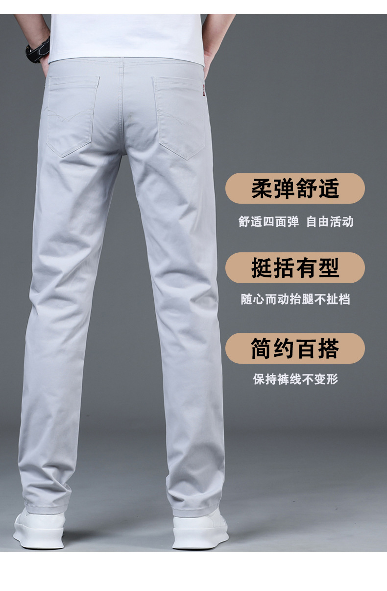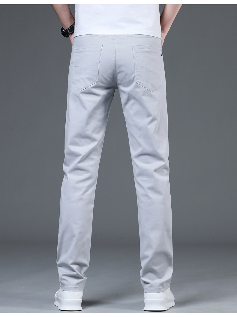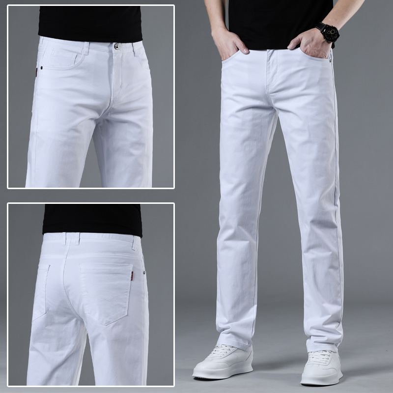 2025 새로운 순수 코튼 화이트 심플 캐주얼 바지 남성용 스몰 스트레이트 슬림 스트레치 여름 얇은 라이트 럭셔리 바지