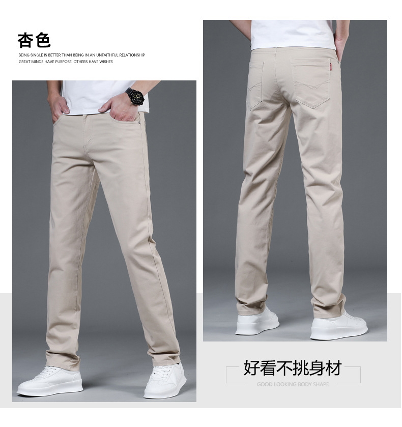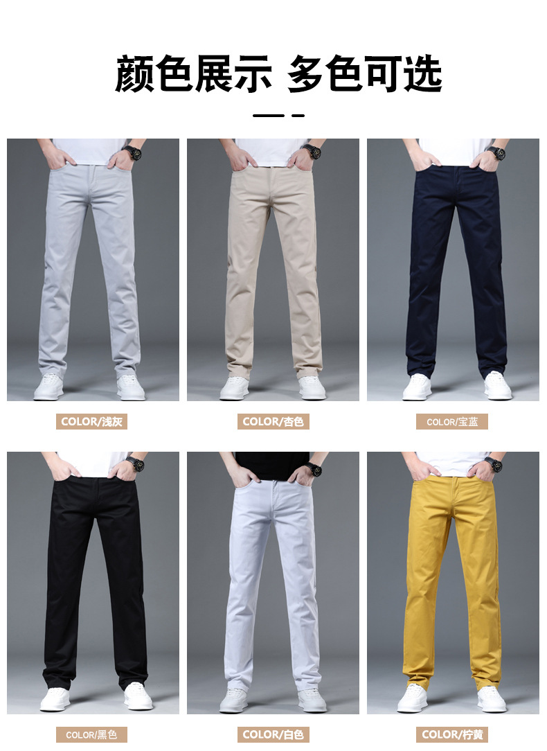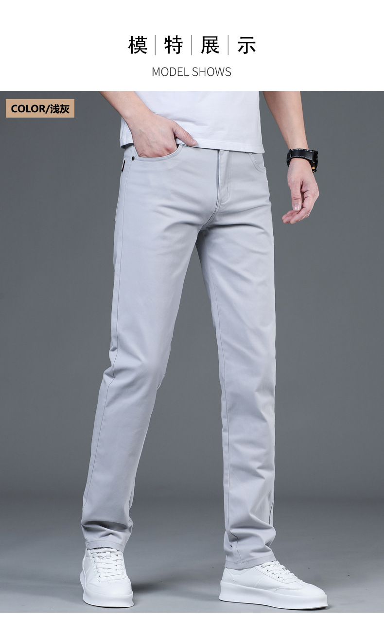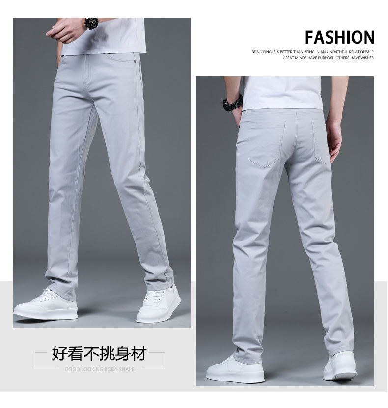2025 새로운 순수 코튼 화이트 심플 캐주얼 바지 남성용 스몰 스트레이트 슬림 스트레치 여름 얇은 라이트 럭셔리 바지스토어 가기