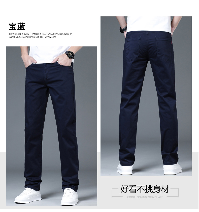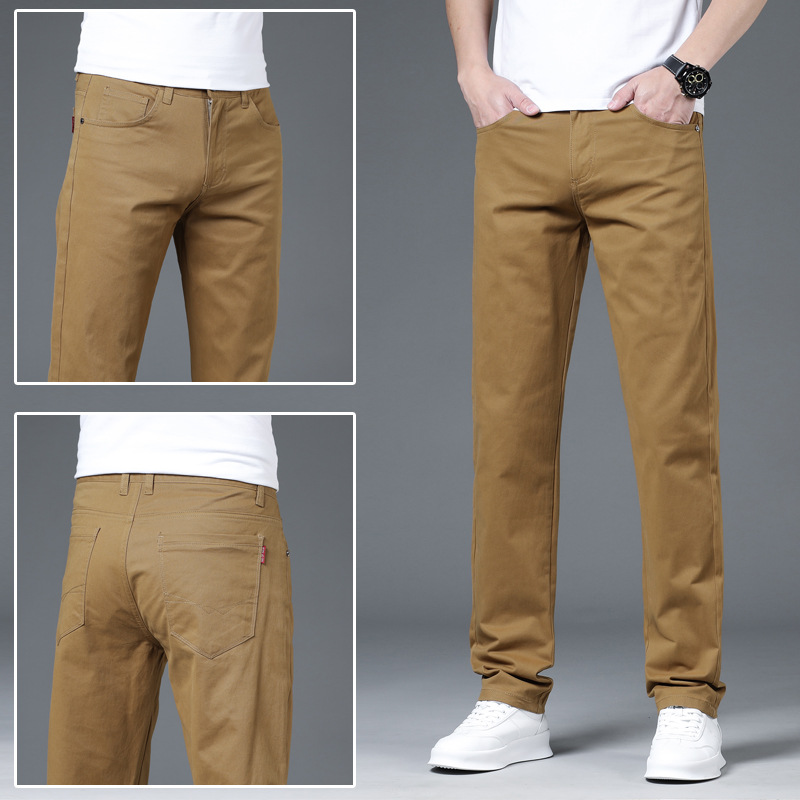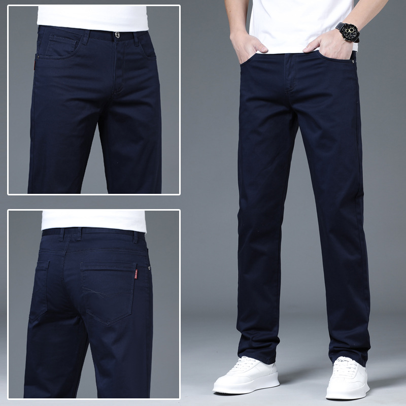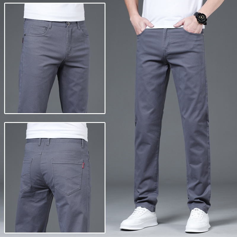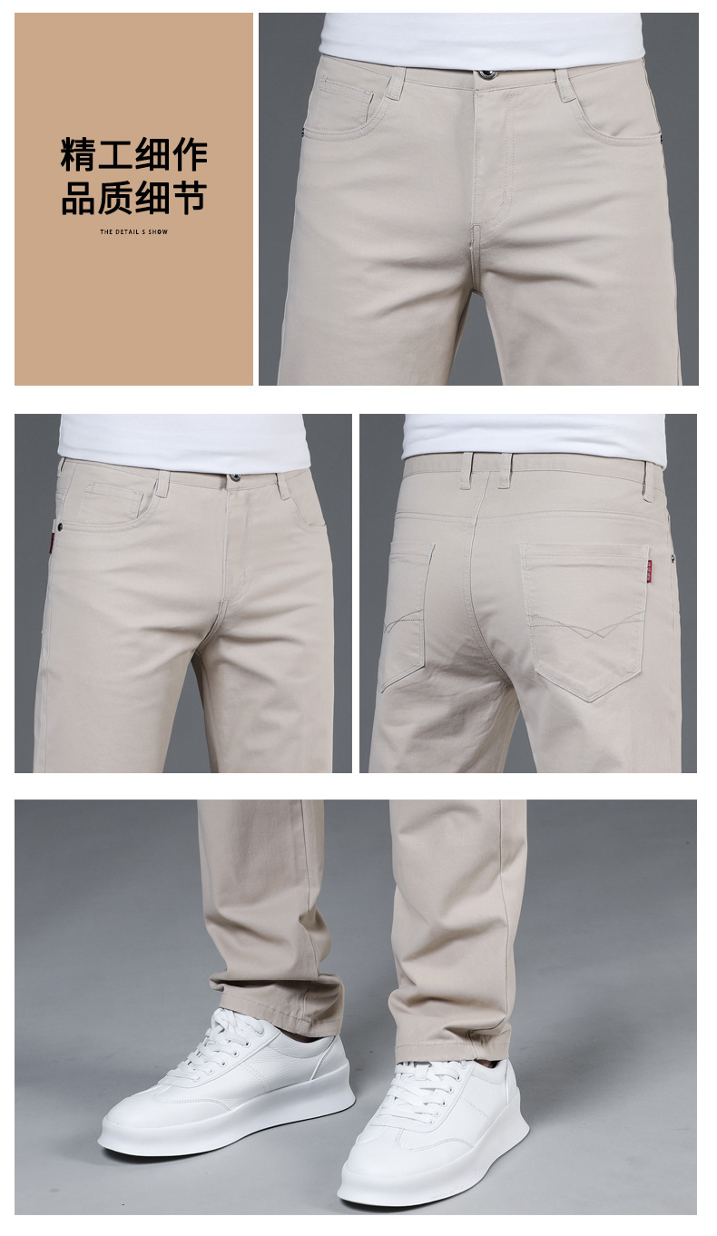 2025 새로운 순수 코튼 화이트 심플 캐주얼 바지 남성용 스몰 스트레이트 슬림 스트레치 여름 얇은 라이트 럭셔리 바지스토어 가기