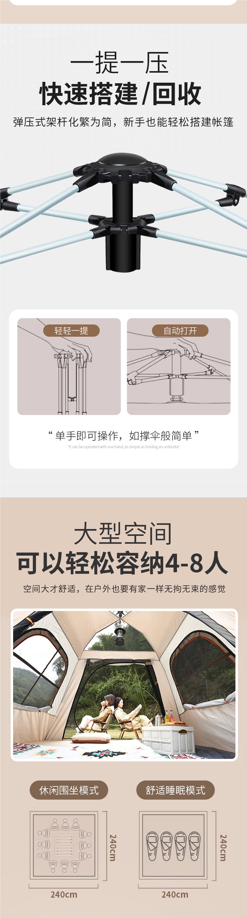 텐트 캐노피 투인원 야외 접이식 휴대용 캠핑 밤새 캠핑 두꺼운 방수 장비 전체 세트스토어 가기
