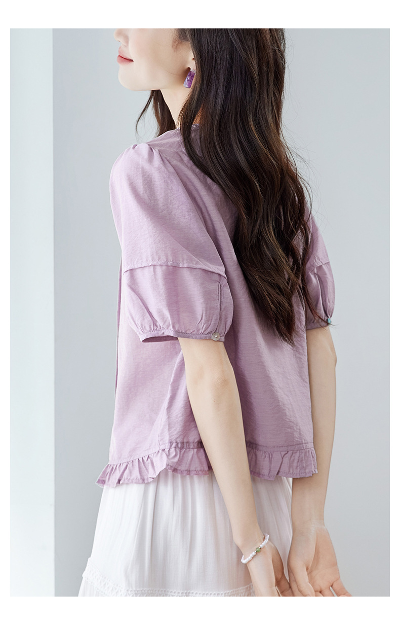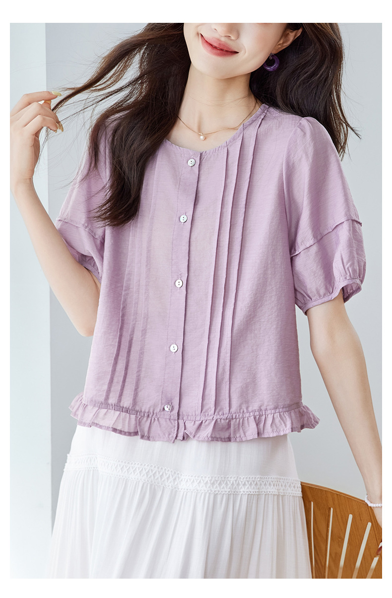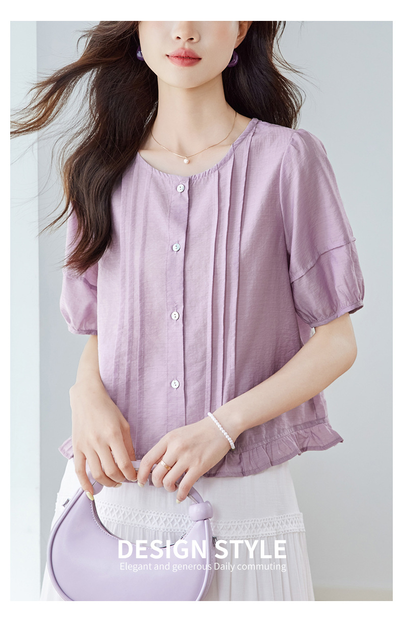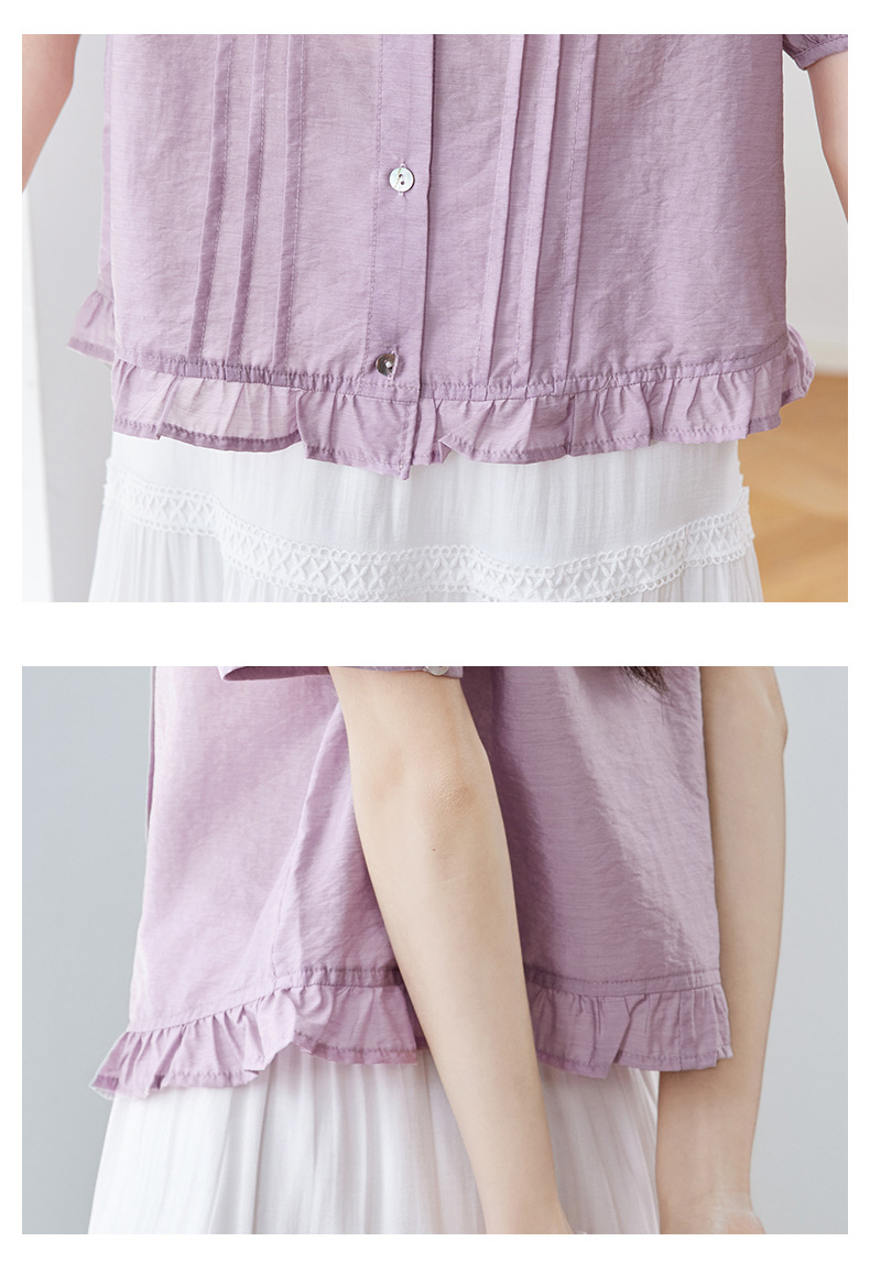Cotton Cocoon 2026 여름 신상 한국 스타일 패션 라운드넥 레이스 스플라이싱 반팔 셔츠 여성 루즈핏 슬리밍 탑스토어 가기