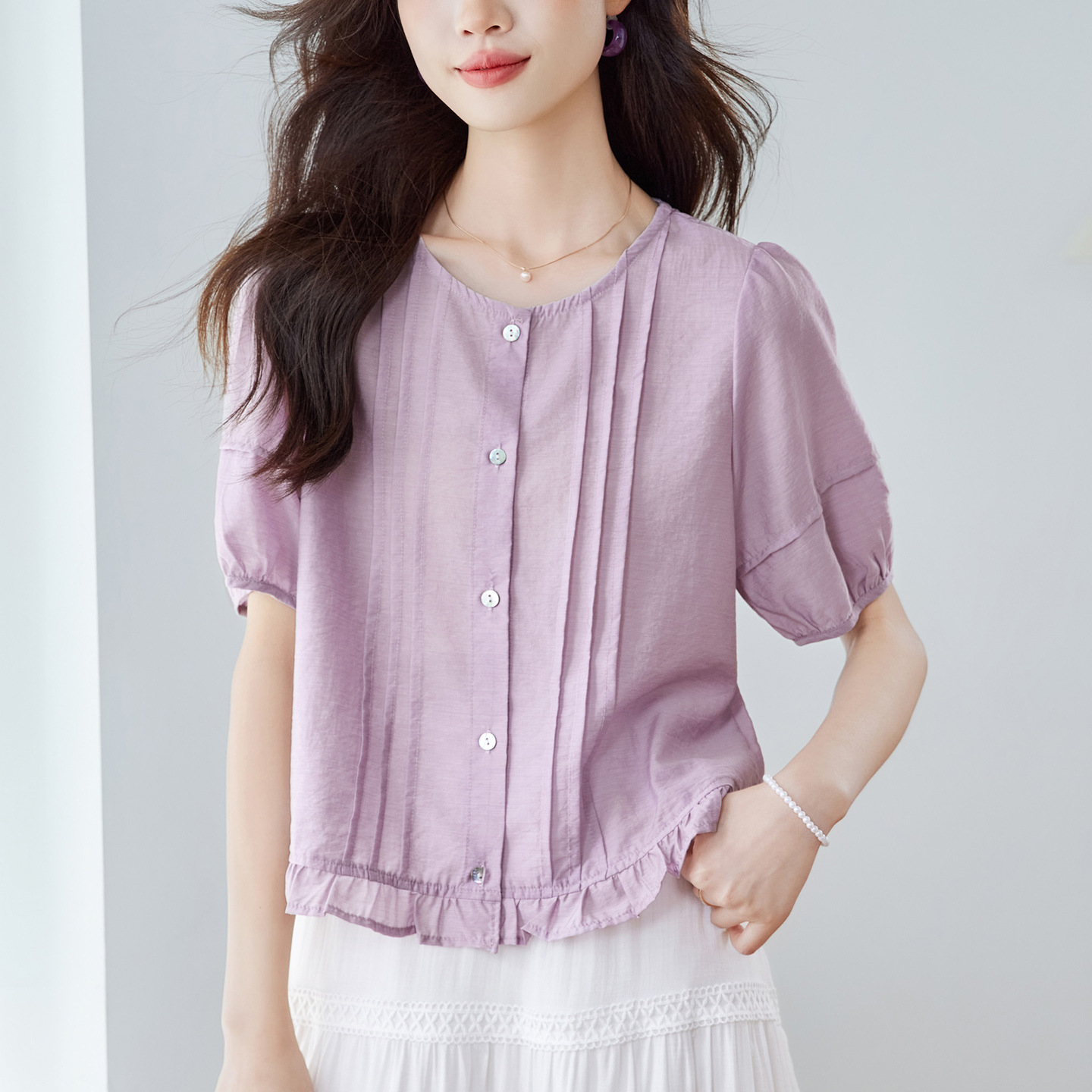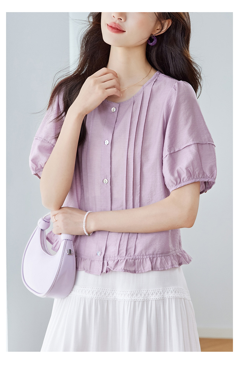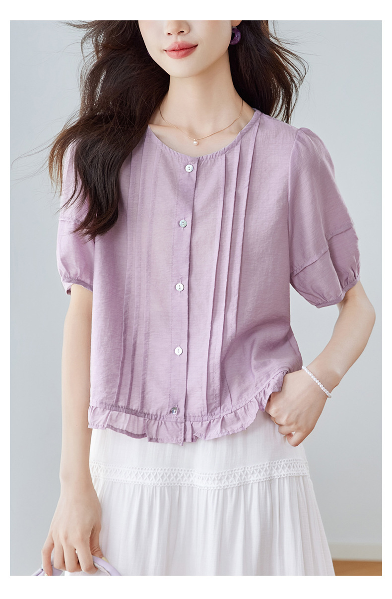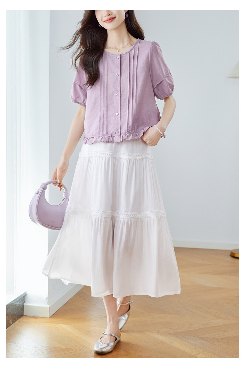 Cotton Cocoon 2026 여름 신상 한국 스타일 패션 라운드넥 레이스 스플라이싱 반팔 셔츠 여성 루즈핏 슬리밍 탑스토어 가기