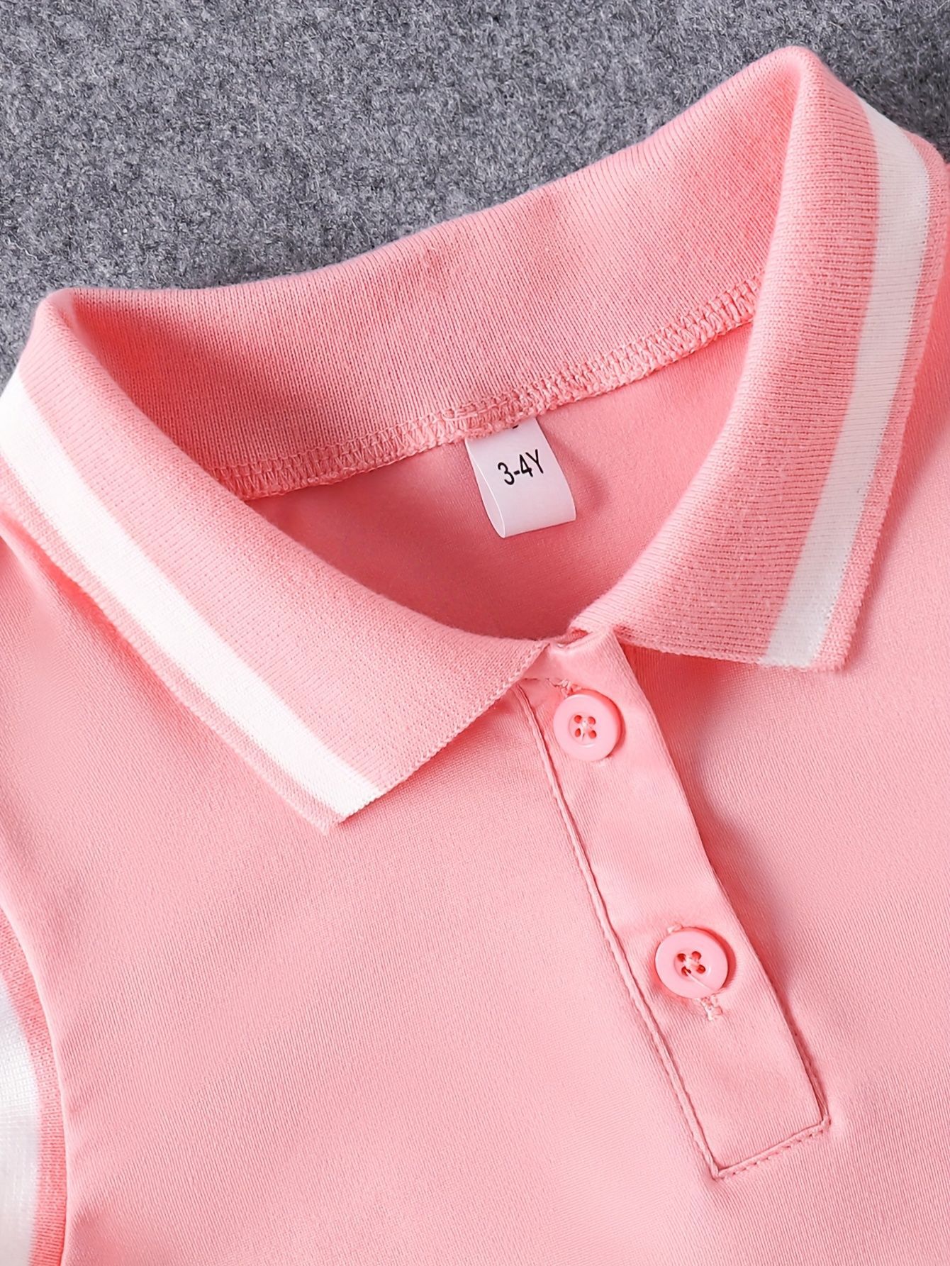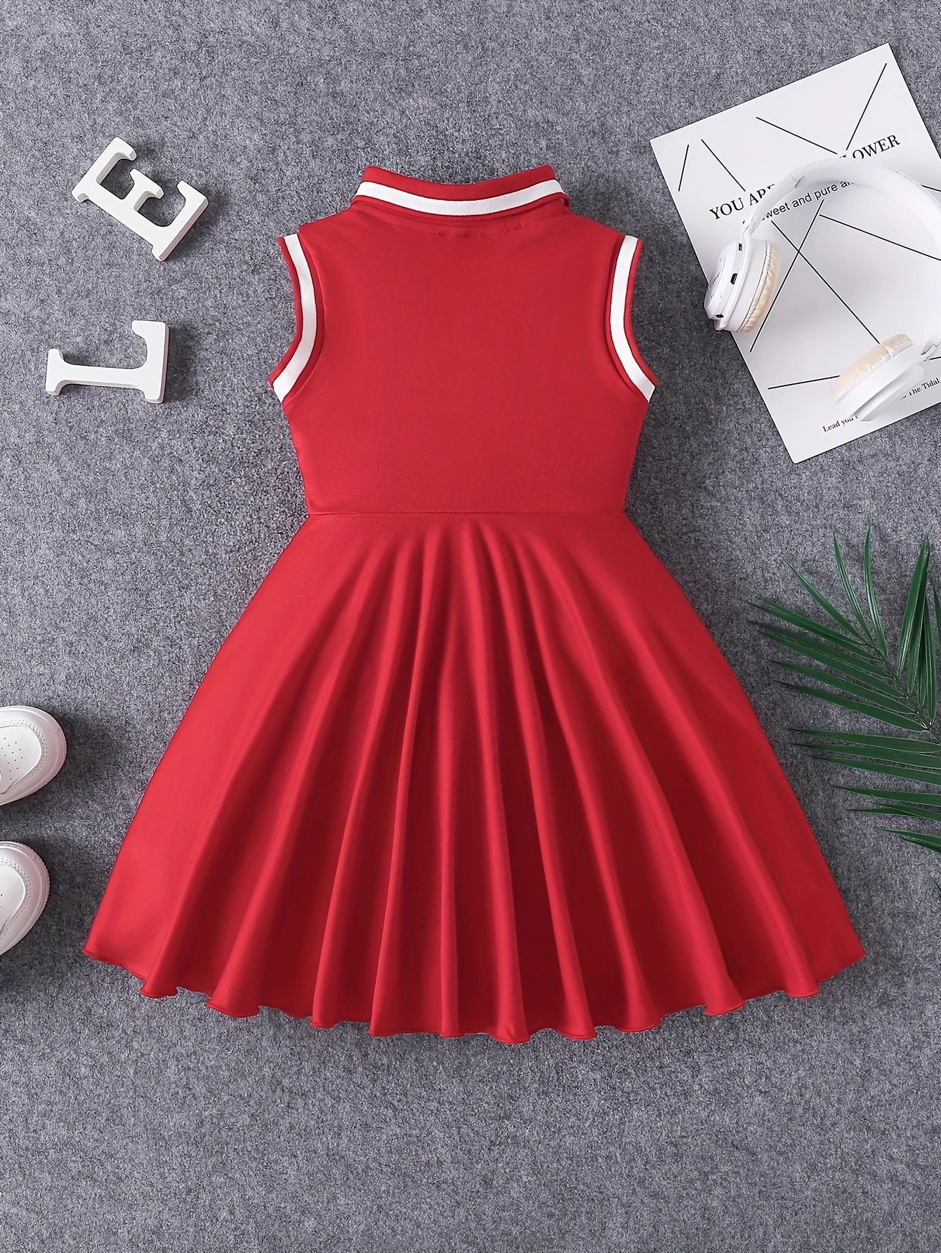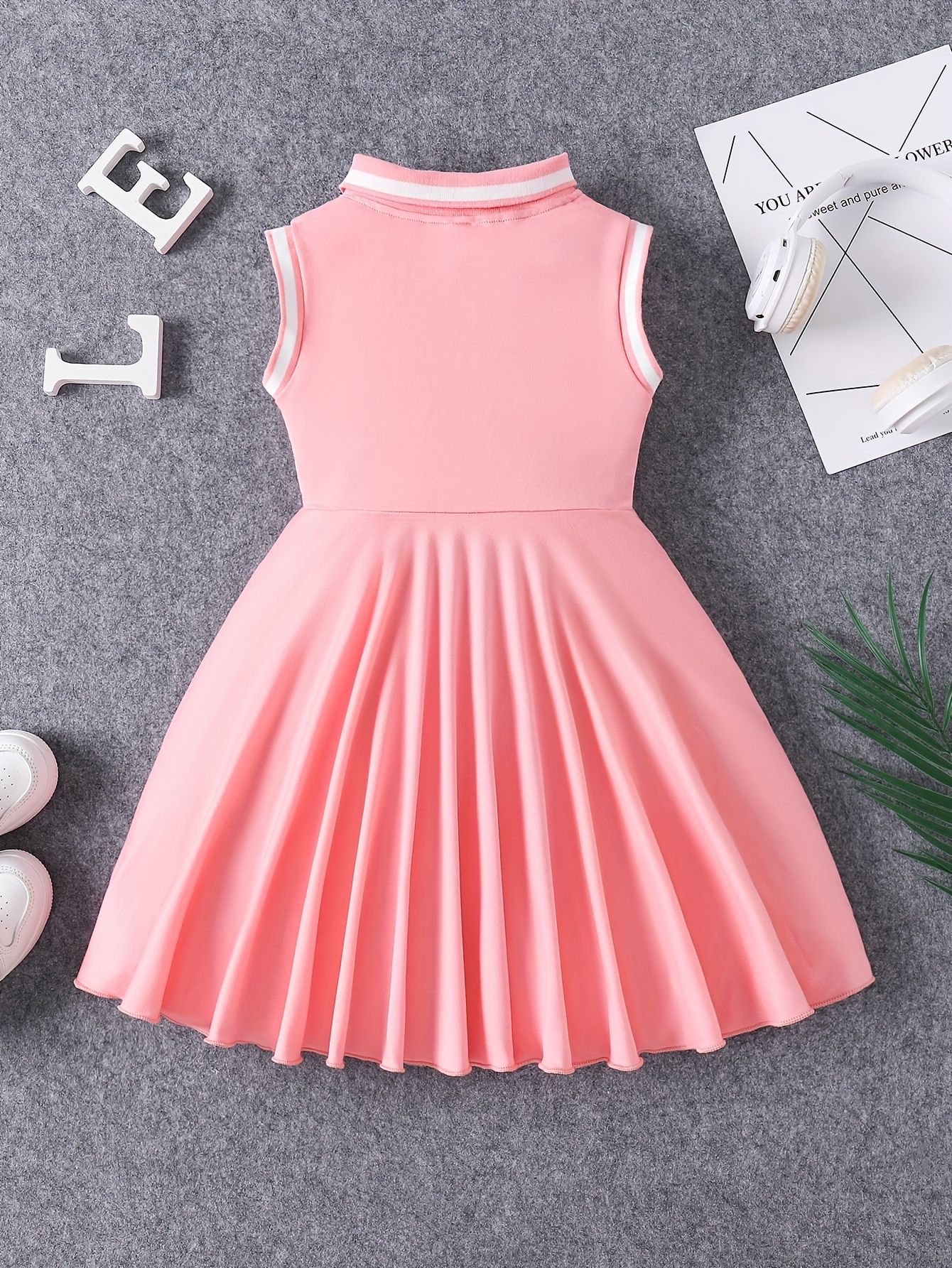 크로스보더 INS 여름 스타일 라펠 풀오버 민소매 하트 프린트 허리 주름 드레스(소형 및 중형 아동용)