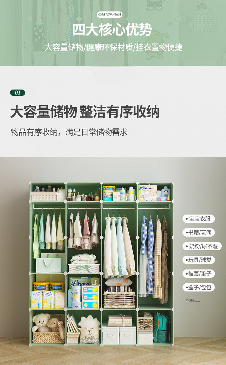 옷장 간단한 조립 임대 주택 가정용 어린이 옷장 수납 캐비닛 침실 천 주방 싱글 기숙사 작은 옷장