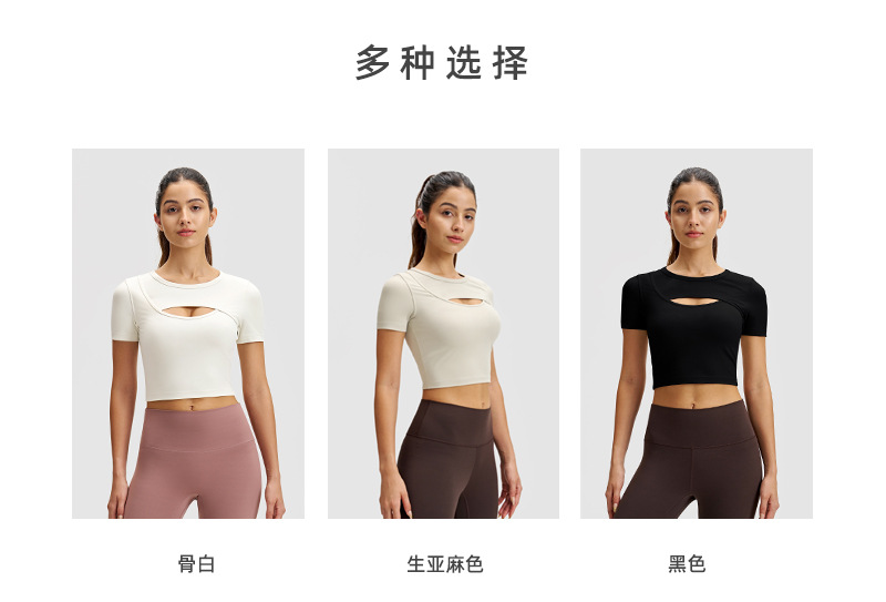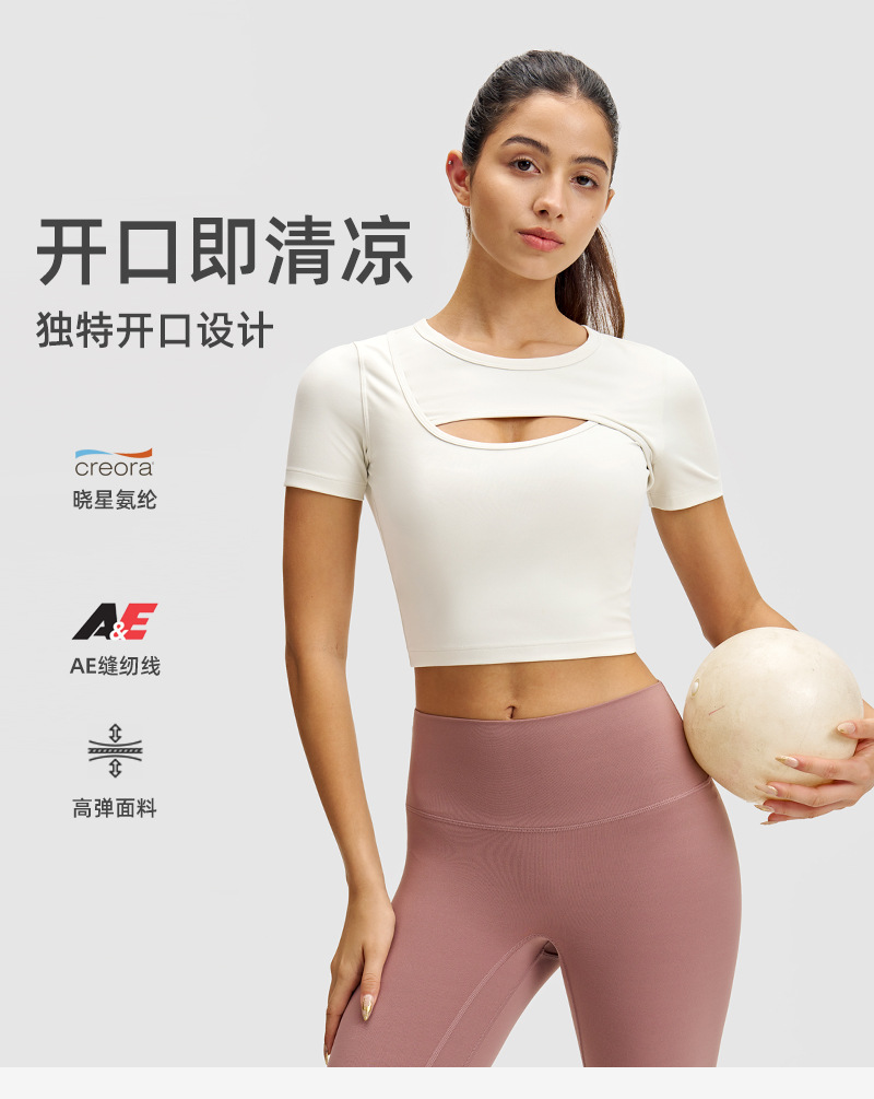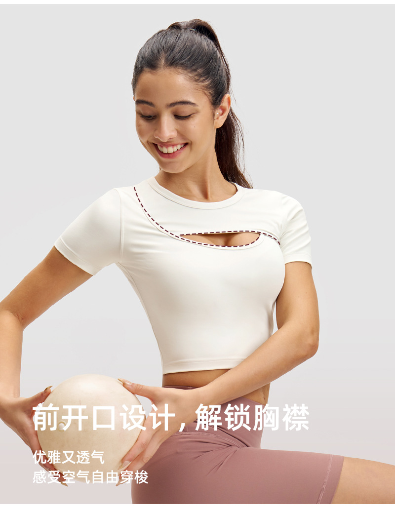 스포츠 반팔 여성 요가복 야외 티셔츠 앞 가슴 통기성 오픈 고탄성 속건성 얇은 트레이닝복 룰루