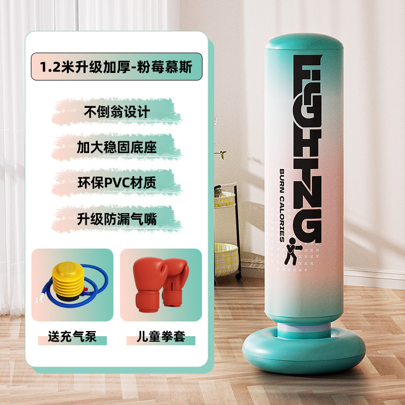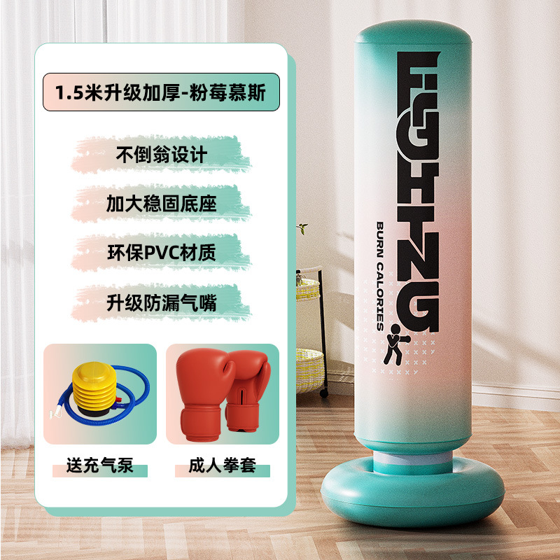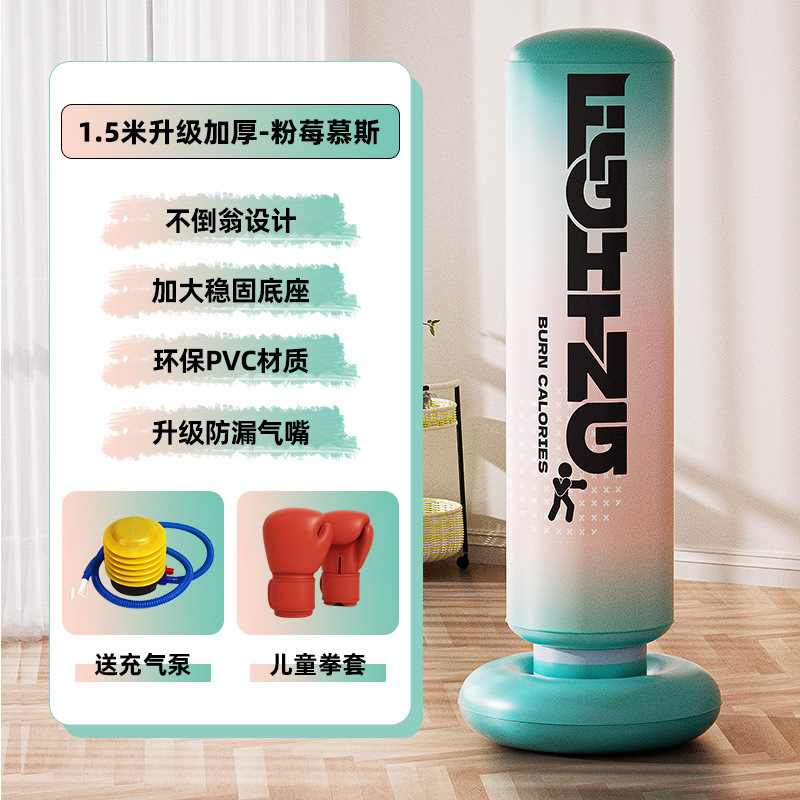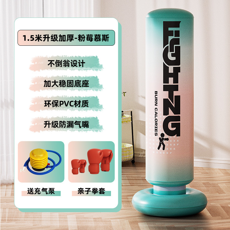 • 1.45m 핑크 베리 무스 복싱 포스트 + 풋 펌프 + 부모-자식 복싱 장갑