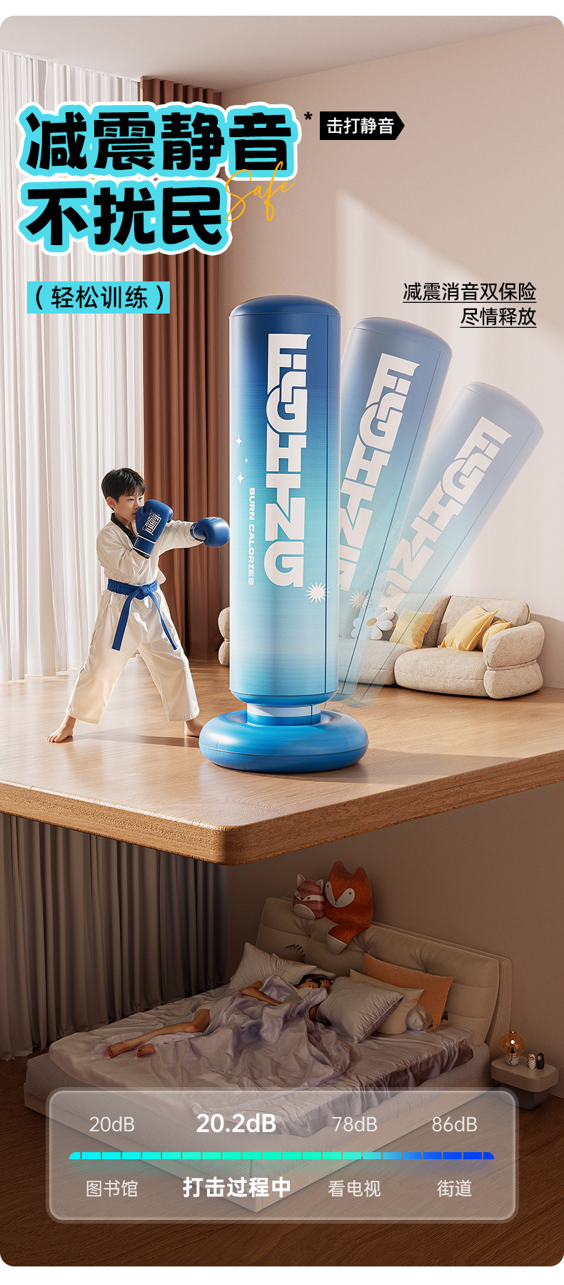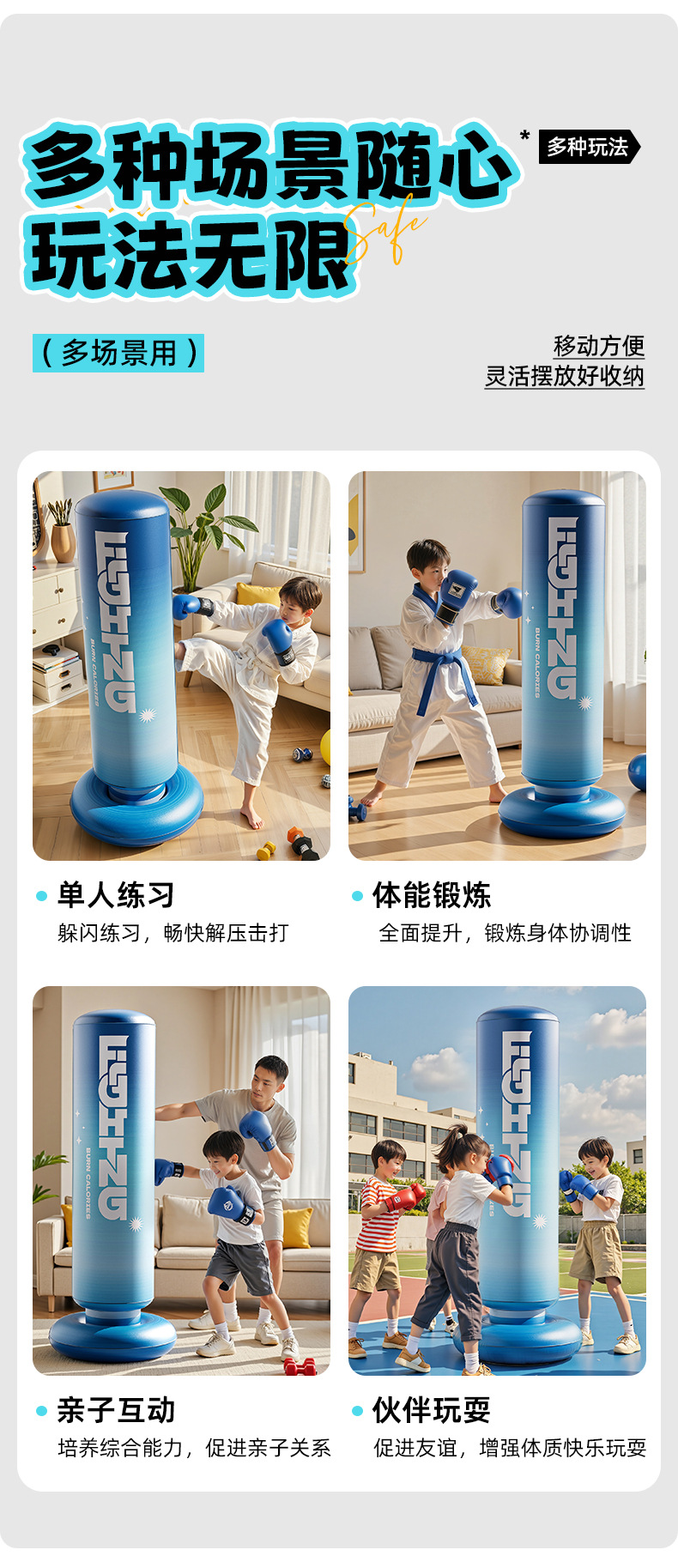 • 1.2m 눈 바다 블루 아이스 복싱 포스트 + 발 펌프 + 부모-자식 복싱 장갑