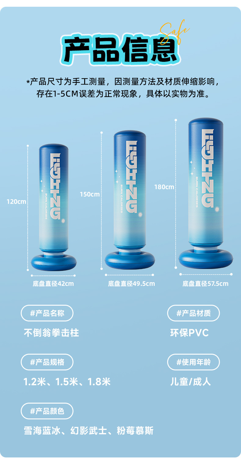 • 1.45m 스노우 씨 블루 아이스 복싱 포스트 + 풋 펌프 + 부모-자식 복싱 장갑