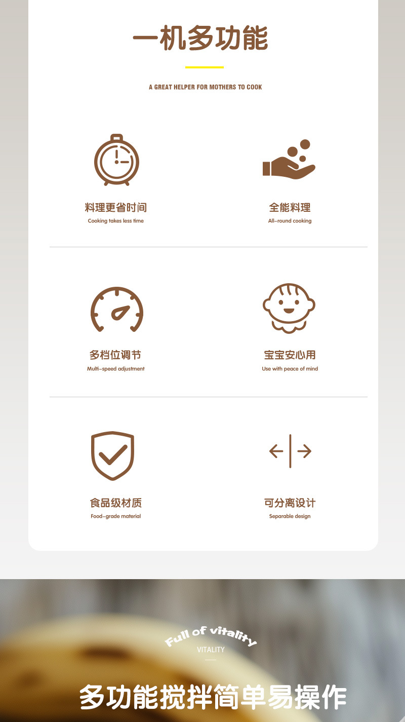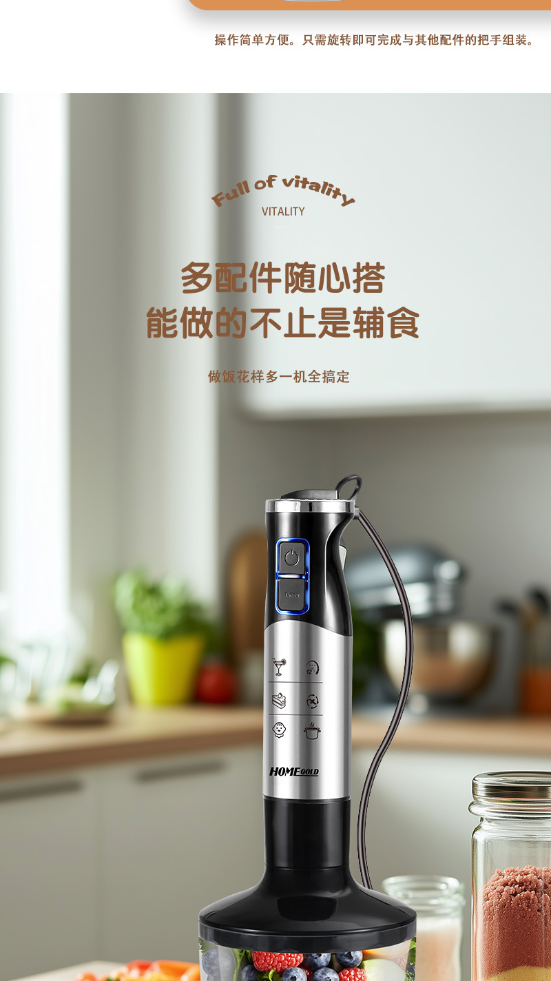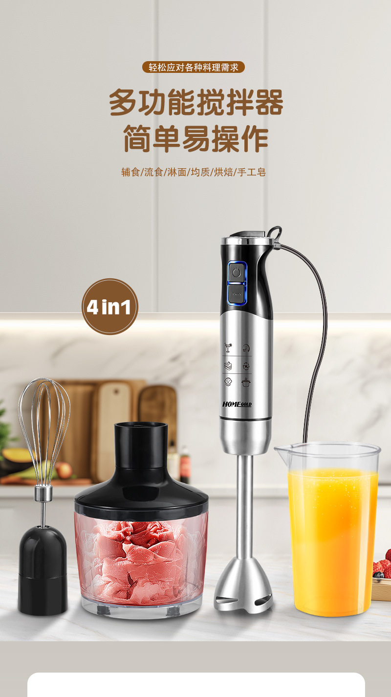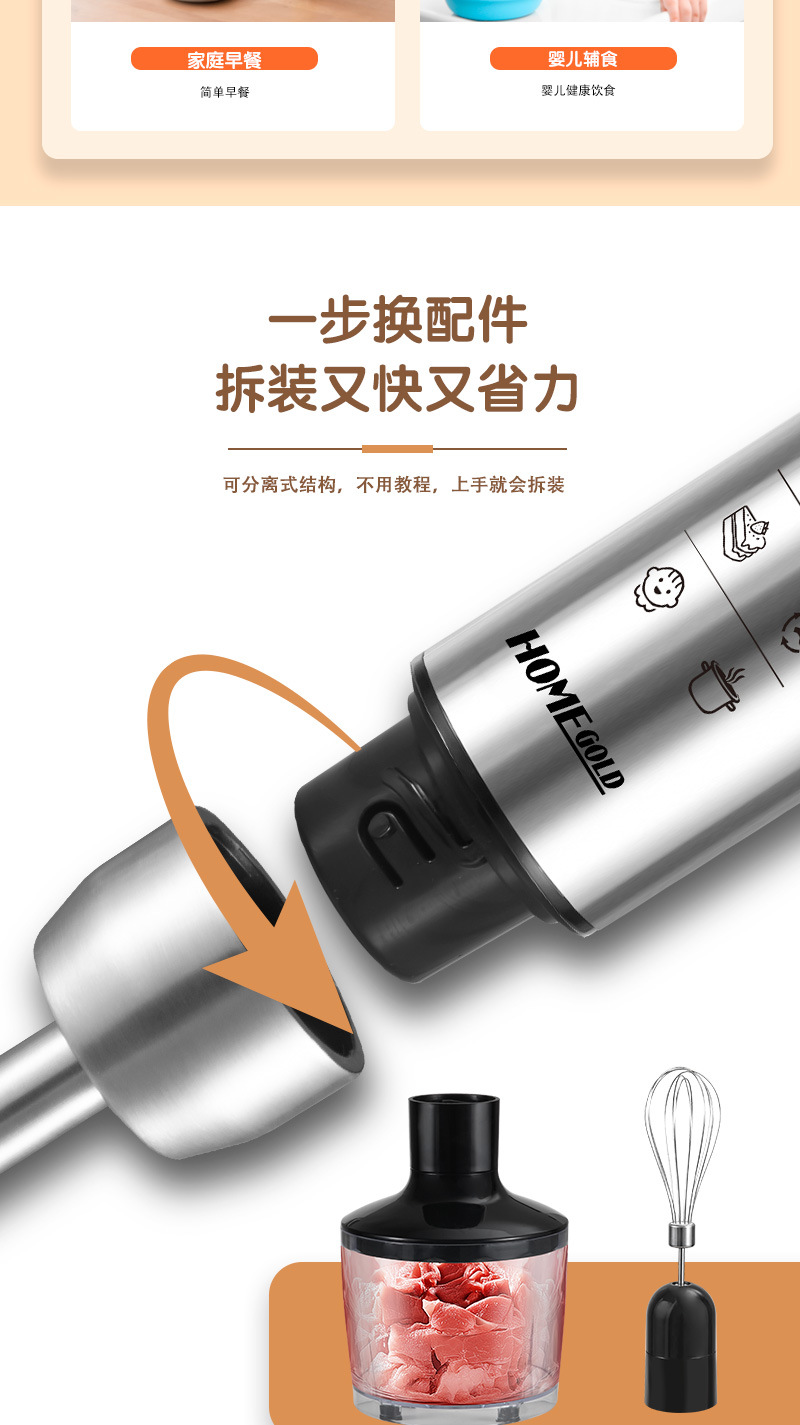 • HG-2106110V 미국 표준 스테인레스 스틸 칼 머리 이유식 보충 기계 다기능 휴대용 요리 스틱 중국에서는 촬영하지 마십시오