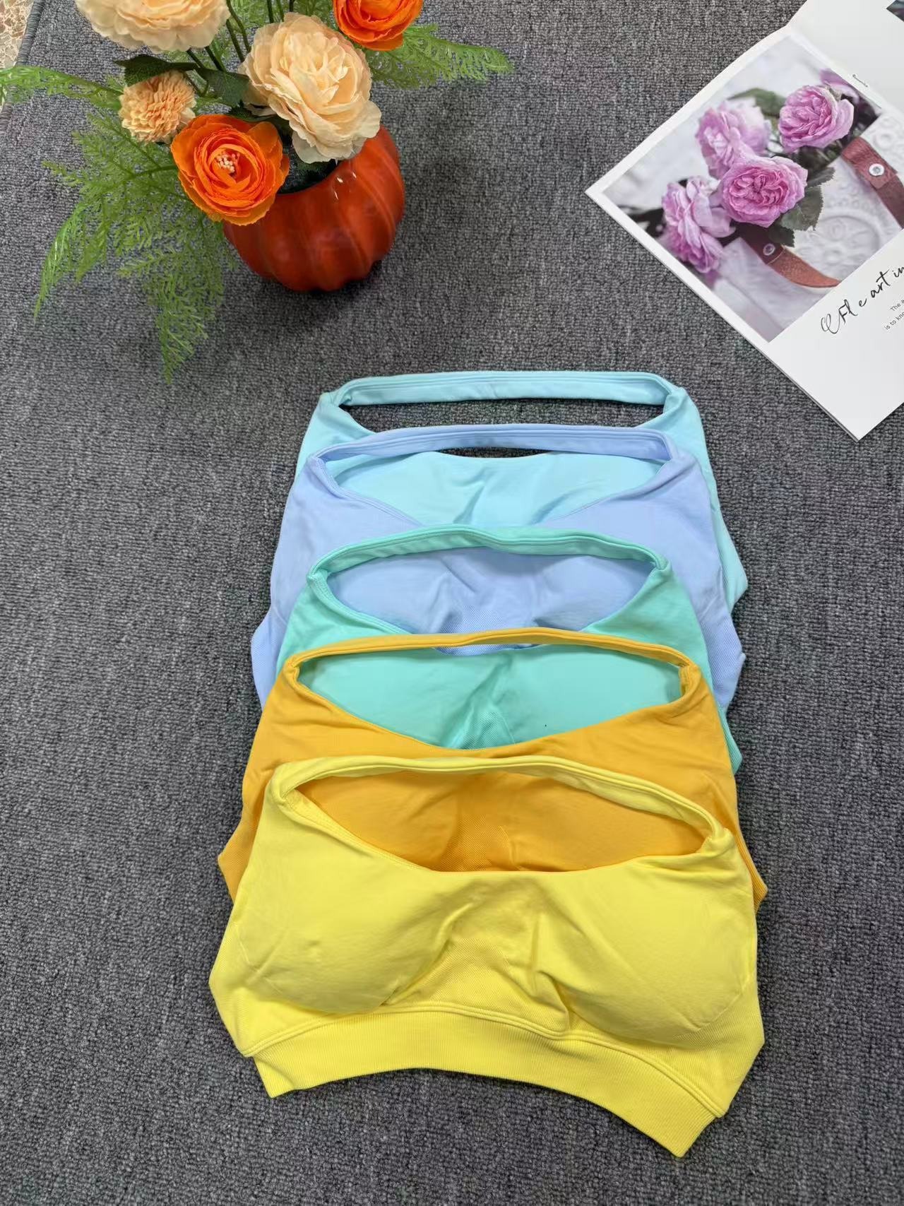 DF 시리즈 심리스 요가 스포츠 브라 홀터넥 조끼 고탄성 스포츠 조끼 다용도 캐주얼 슬림핏 탑
