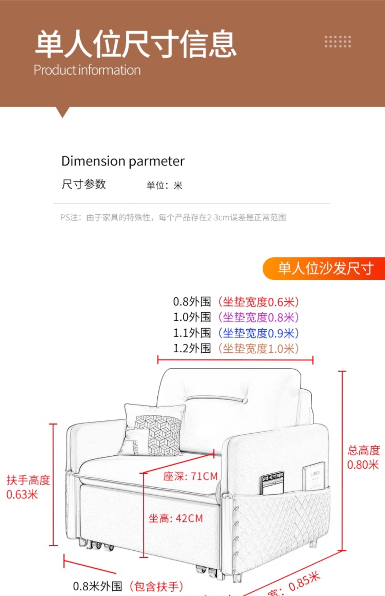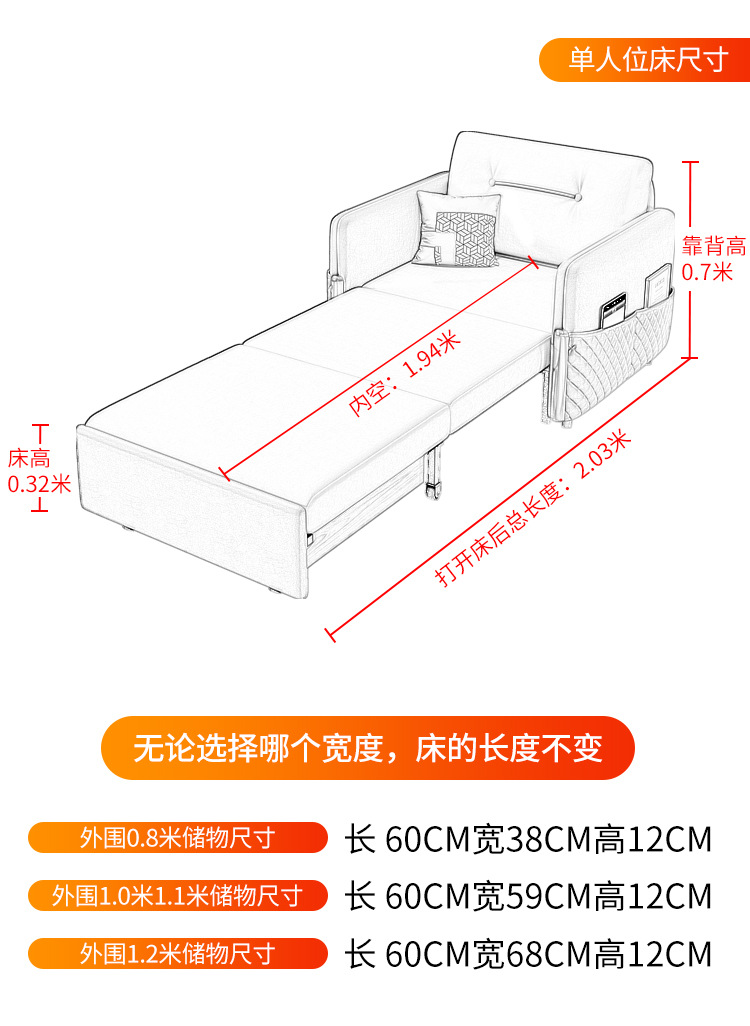 1인용 접이식 소파 베드, 겸용 소형 원목 수납, 모던 심플 서재, 발코니, 다기능 빗 rω