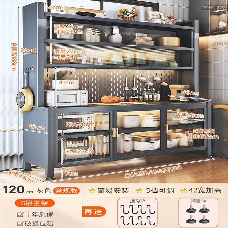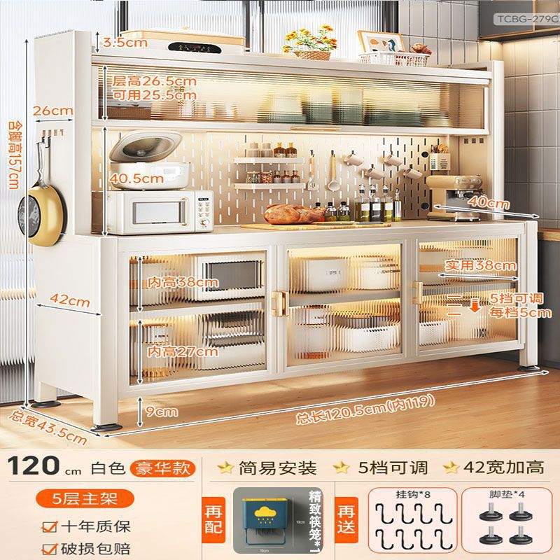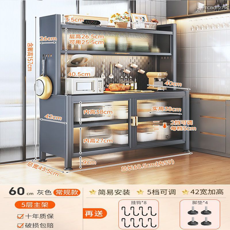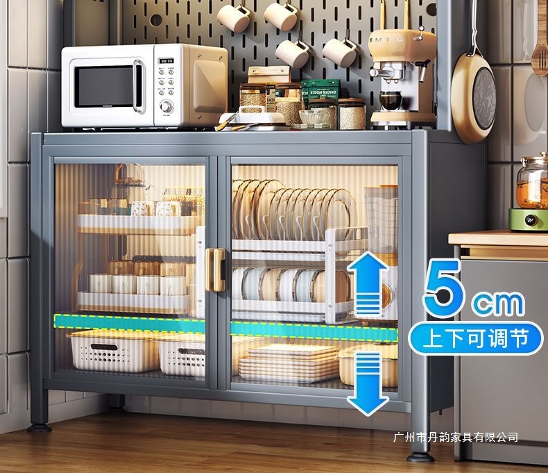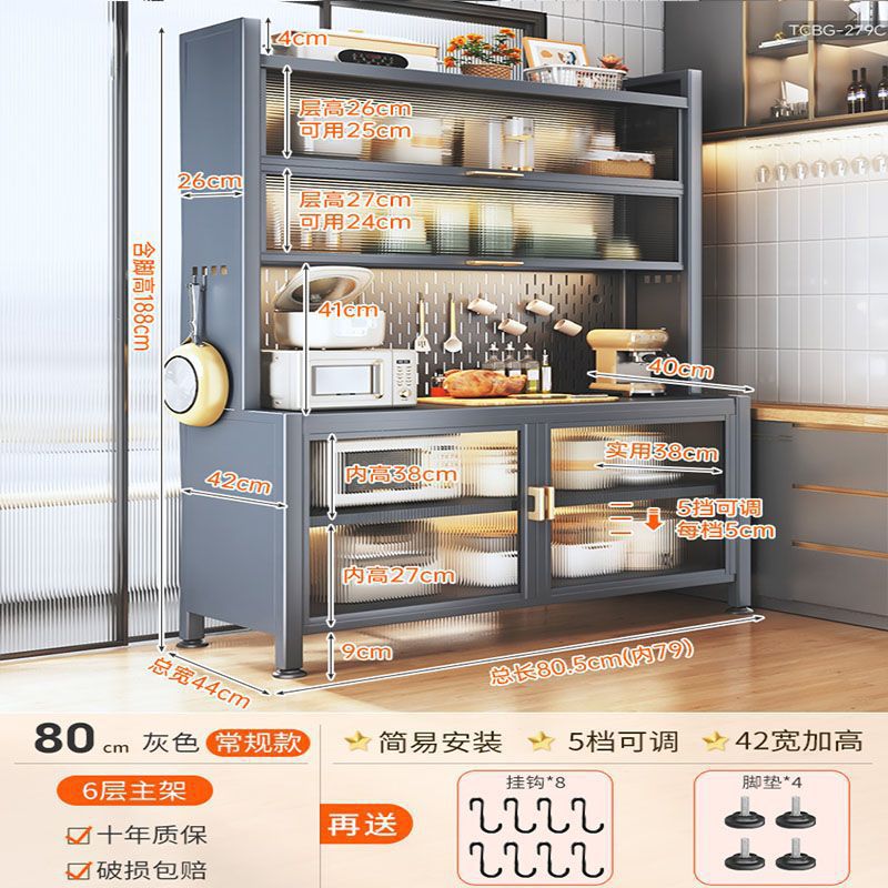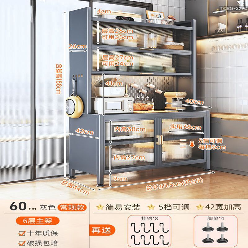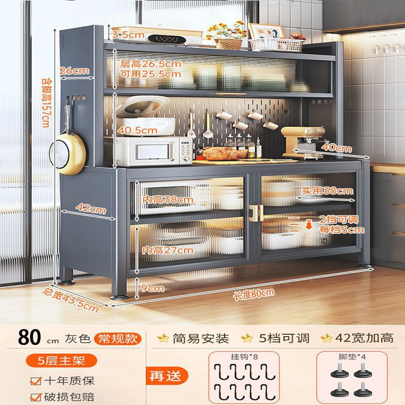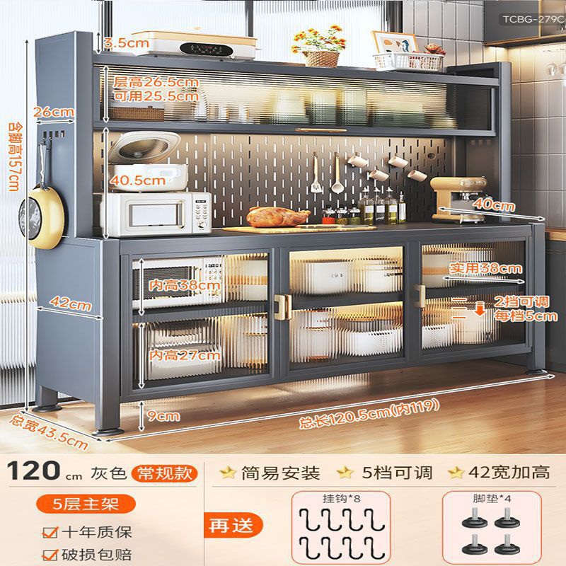 주방 밀폐형 수납 선반, 확장형 바닥부터 천장까지 이어지는 다층 철제 찬장, 다기능 수납 식기 및 냄비 수납 캐비닛