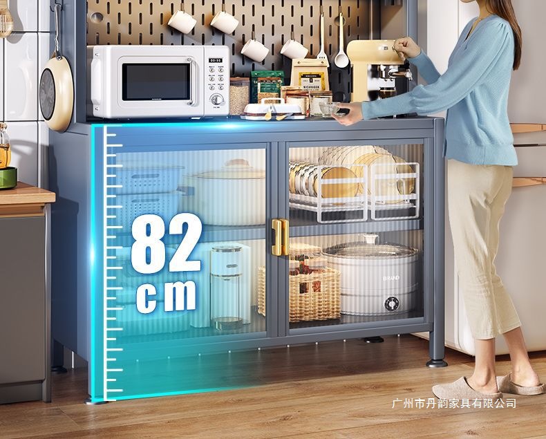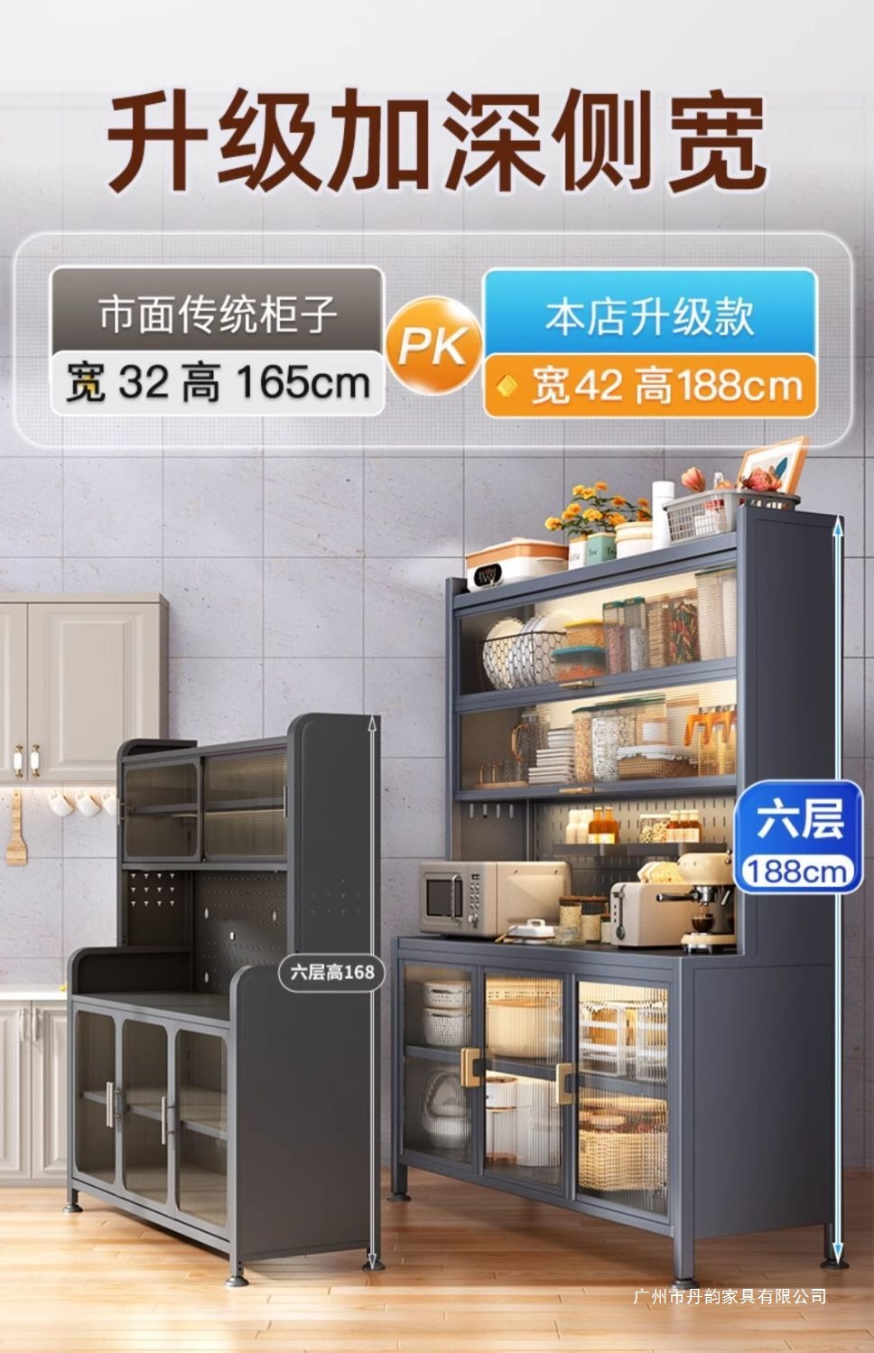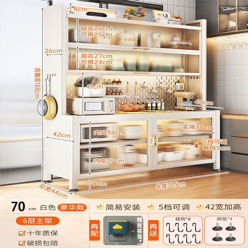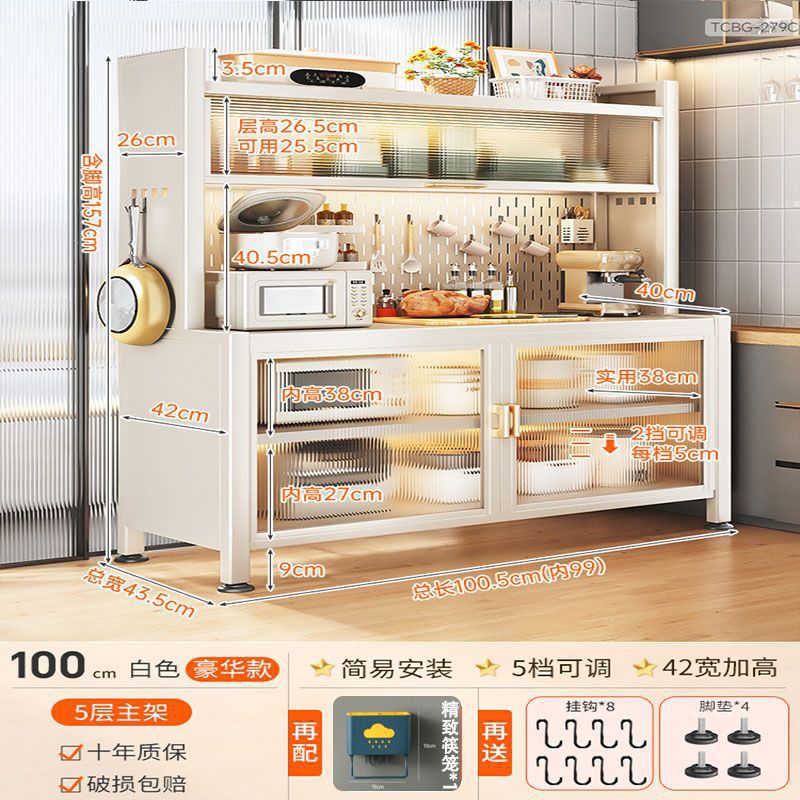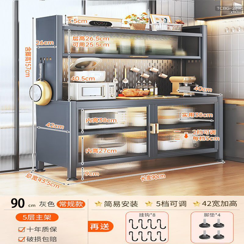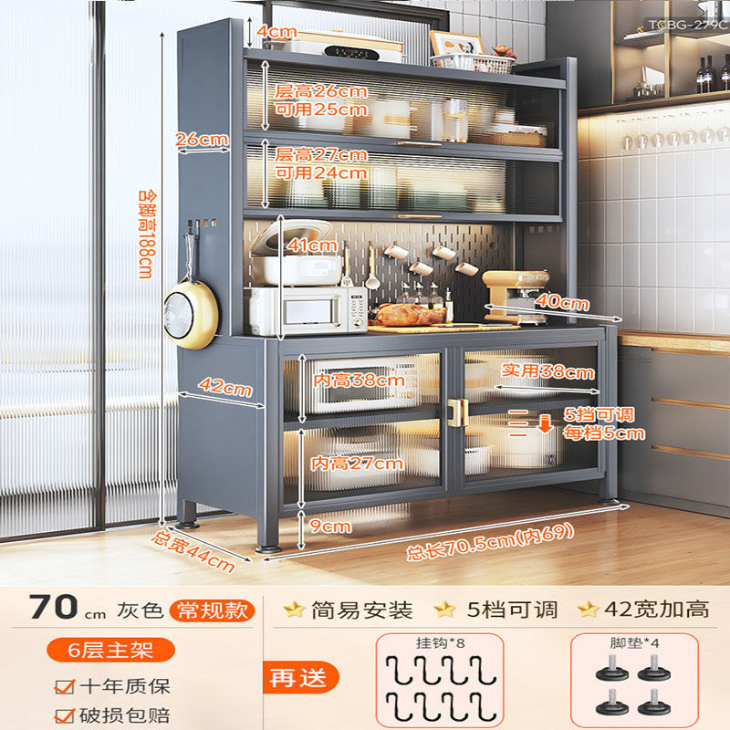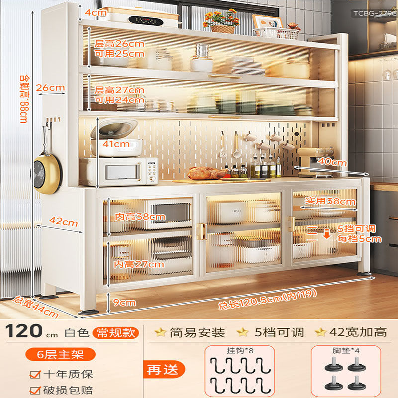 주방 밀폐형 수납 선반, 확장형 바닥부터 천장까지 이어지는 다층 철제 찬장, 다기능 수납 식기 및 냄비 수납 캐비닛