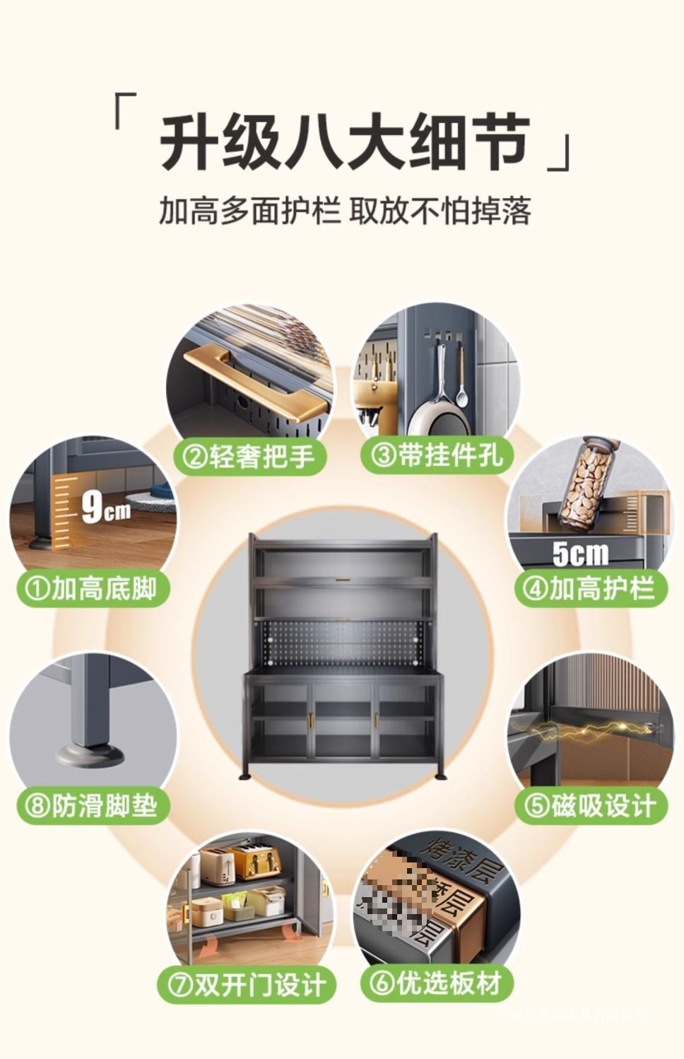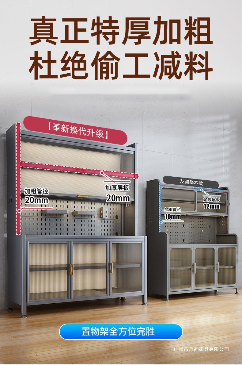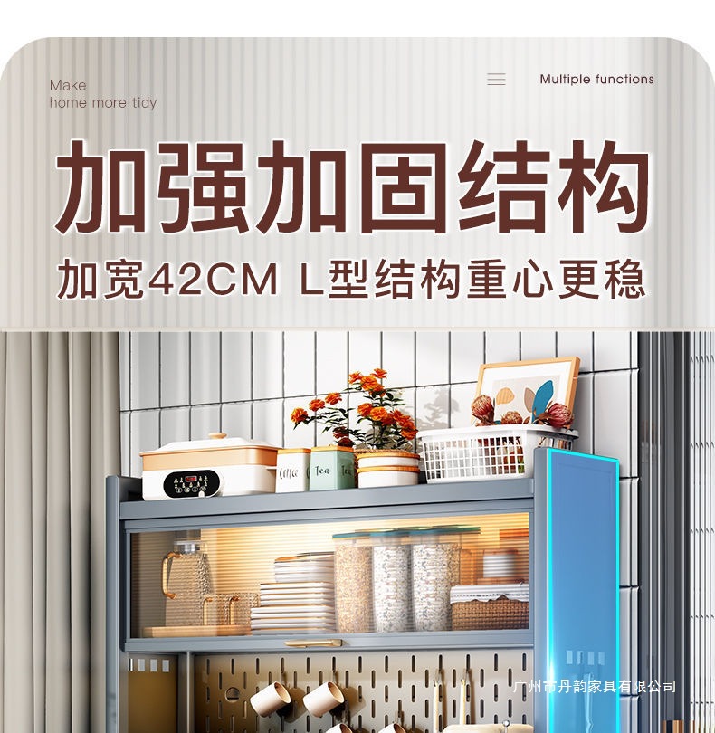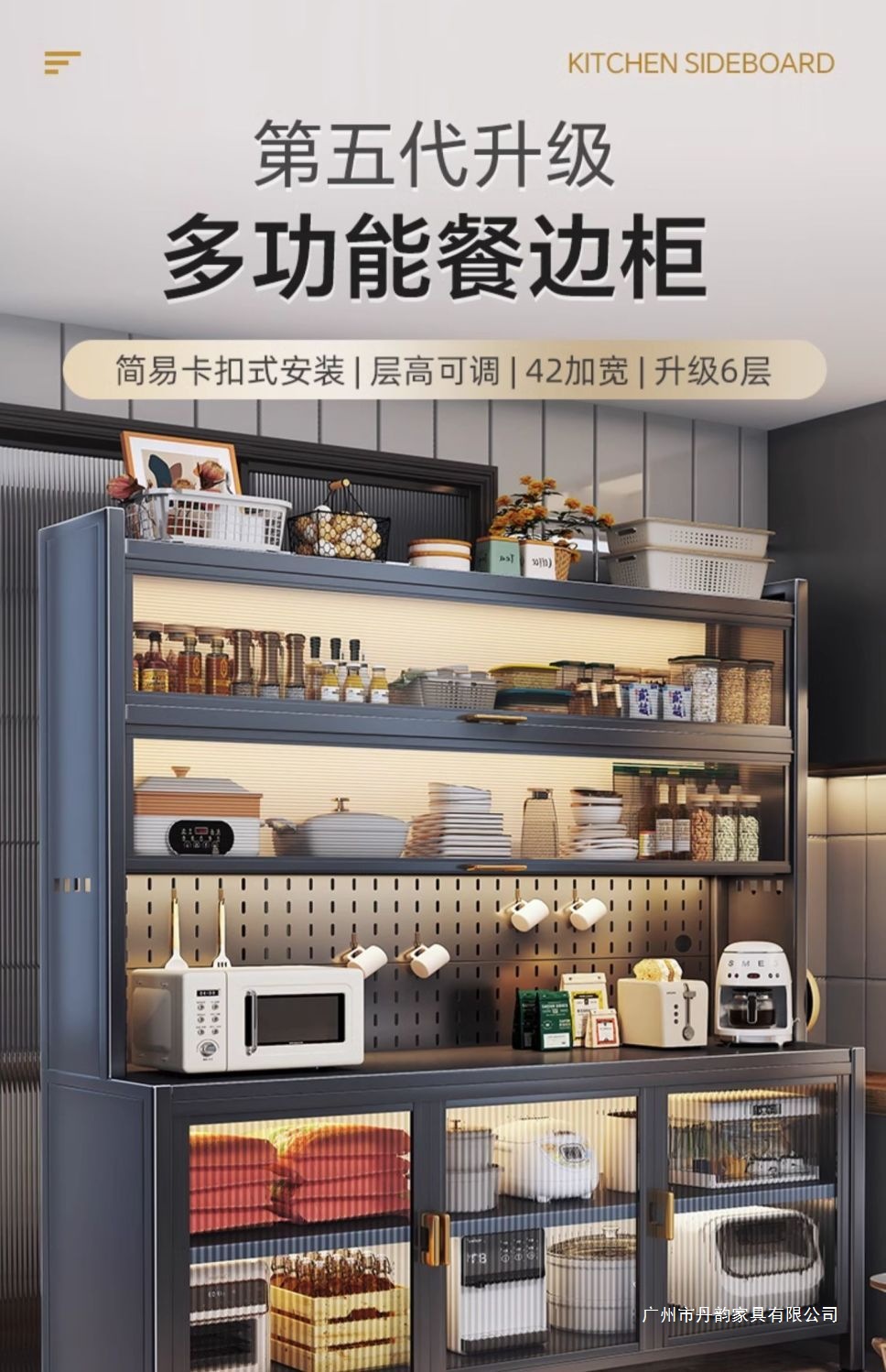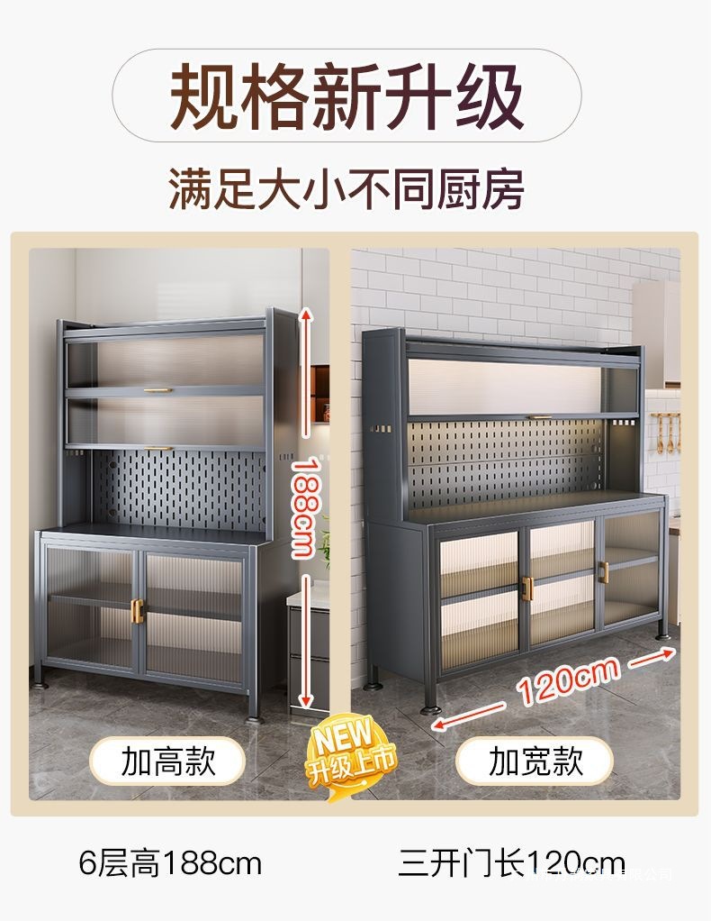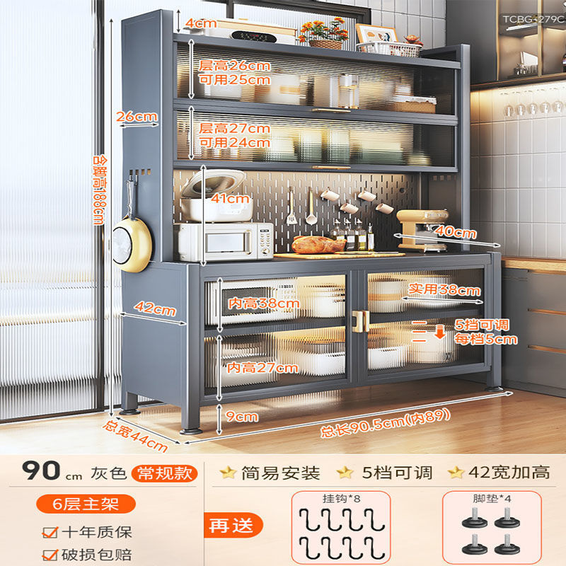 주방 밀폐형 수납 선반, 확장형 바닥부터 천장까지 이어지는 다층 철제 찬장, 다기능 수납 식기 및 냄비 수납 캐비닛