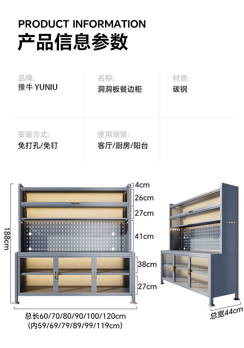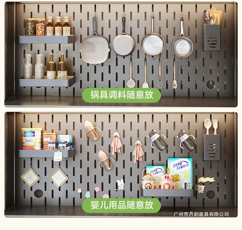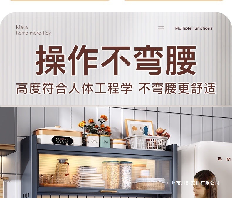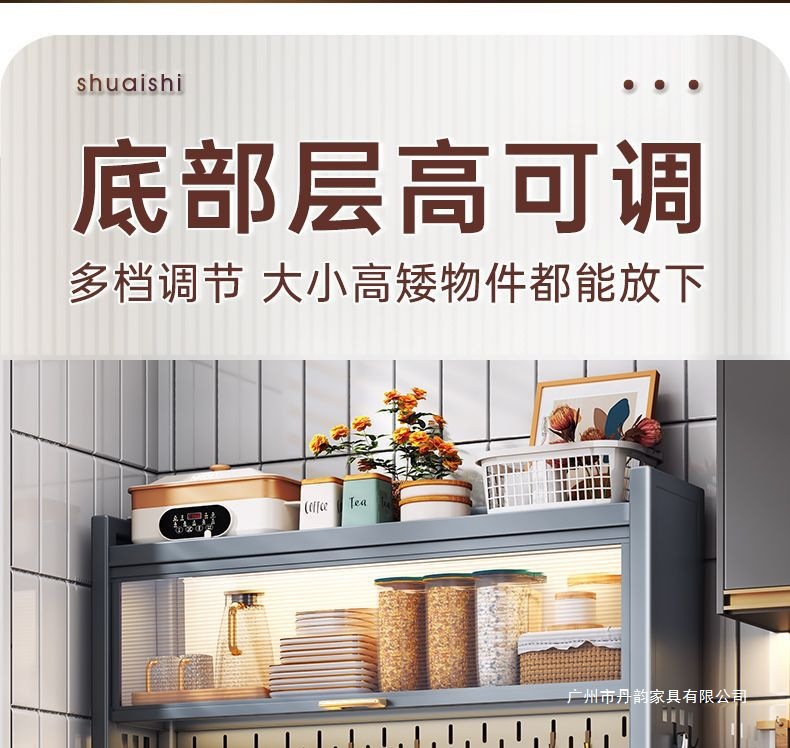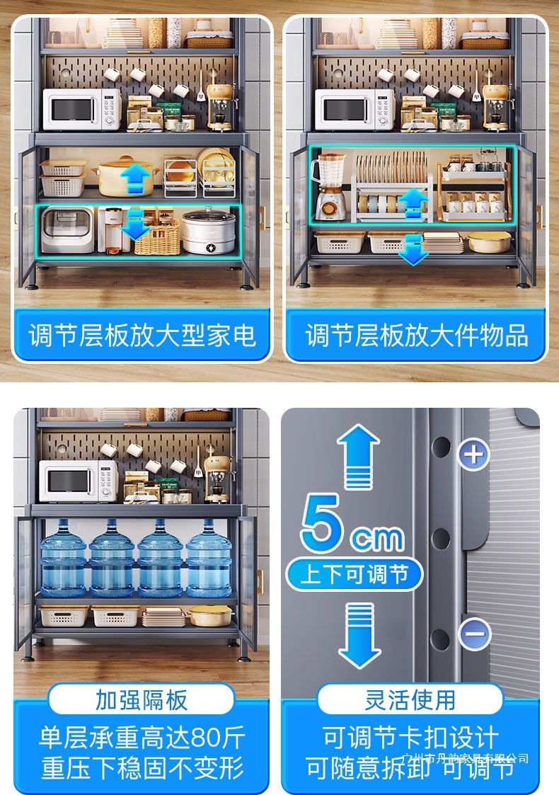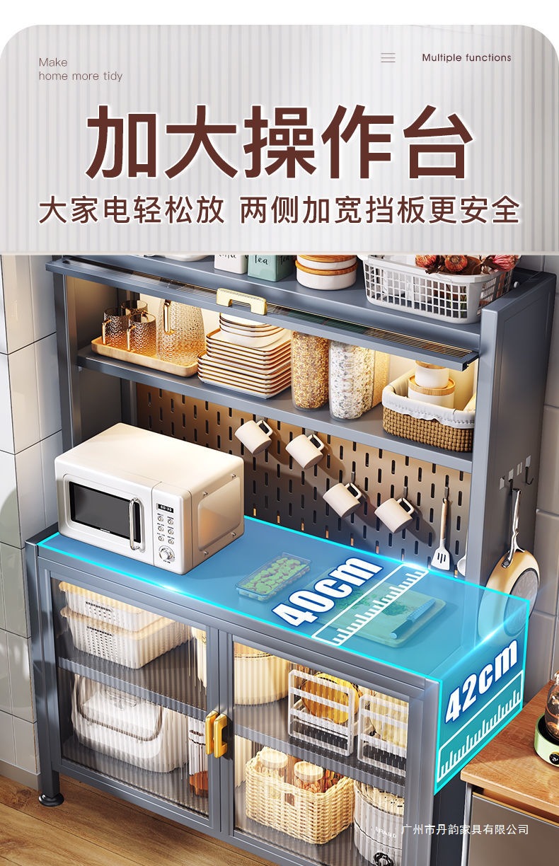 주방 밀폐형 수납 선반, 확장형 바닥부터 천장까지 이어지는 다층 철제 찬장, 다기능 수납 식기 및 냄비 수납 캐비닛