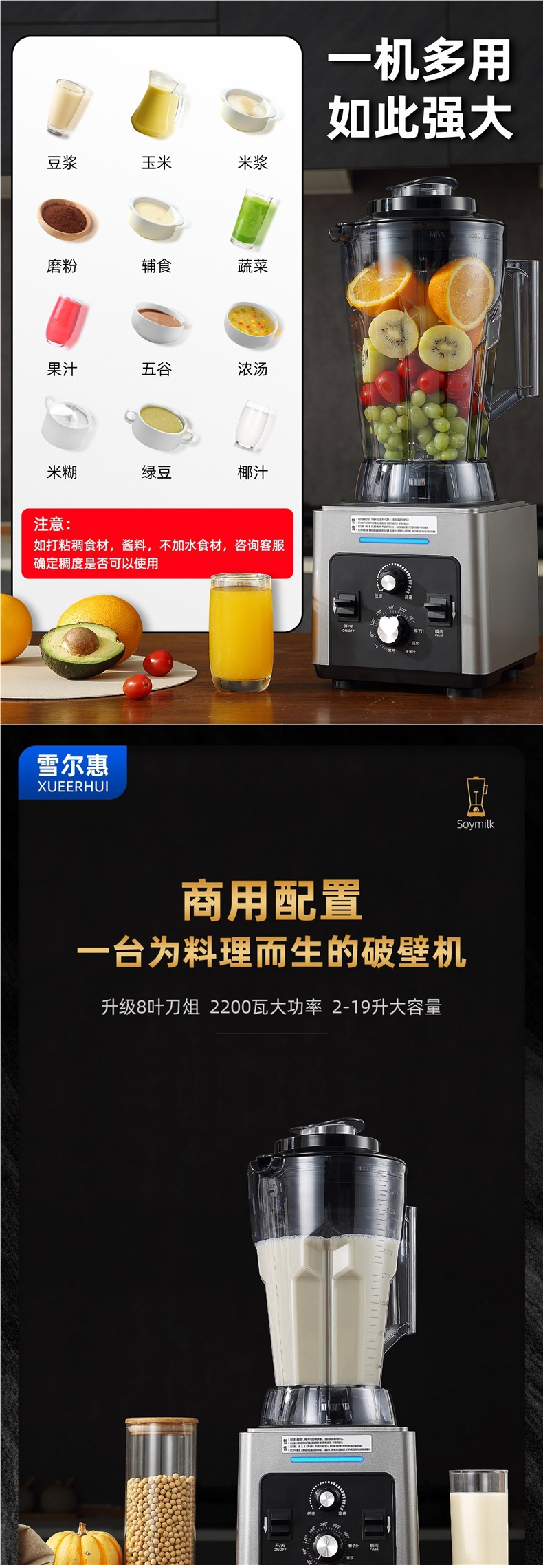 벽파괴기, 상업용 아침식당, 두유, 가정용 주스믹서, 고출력, 대용량 조리기