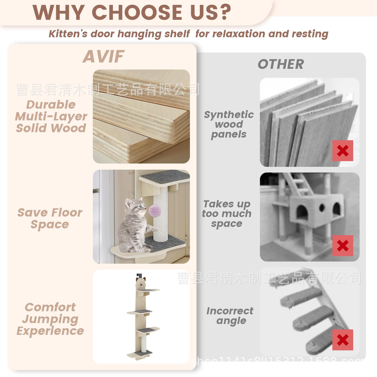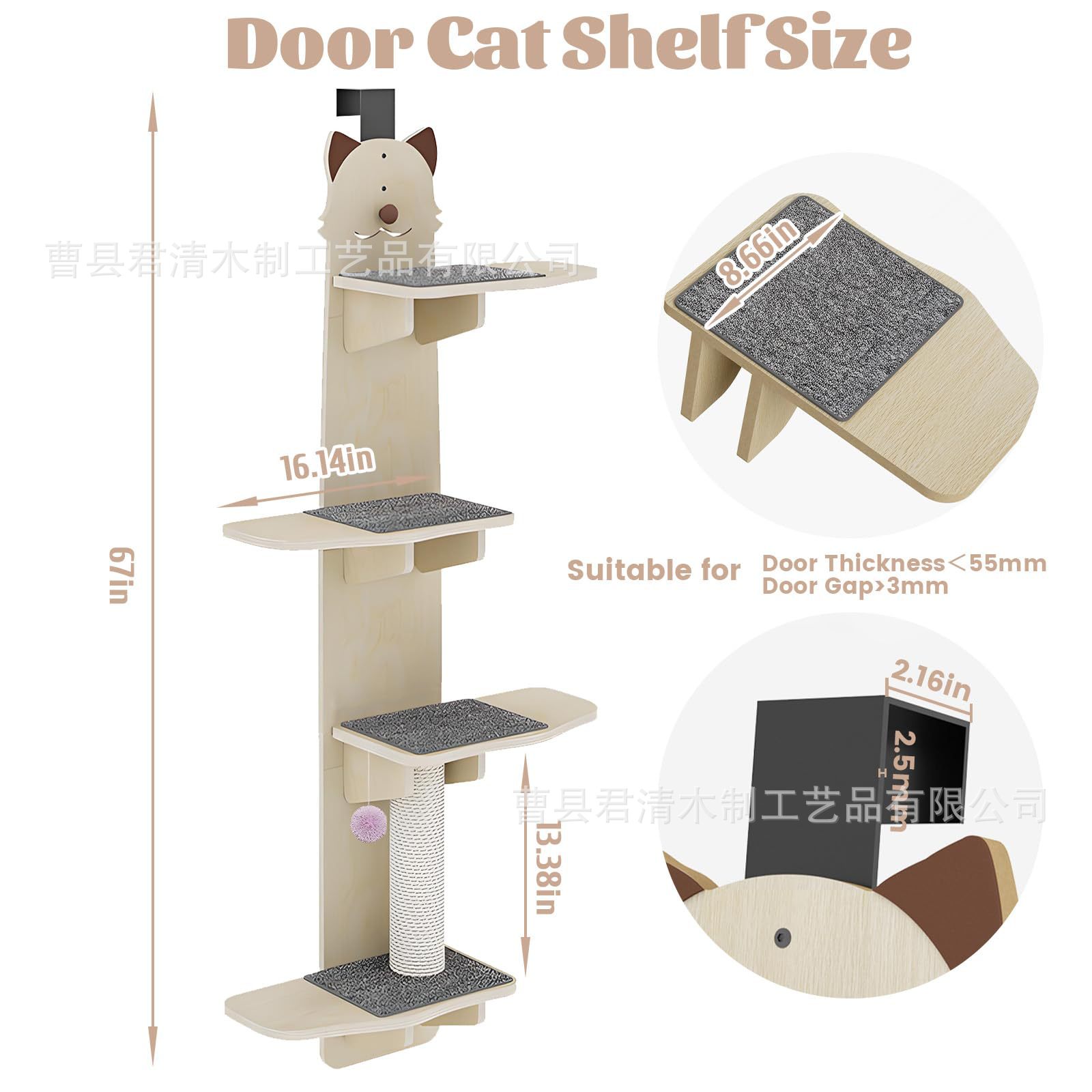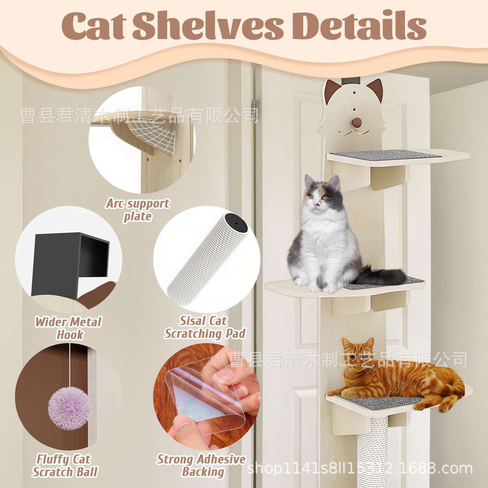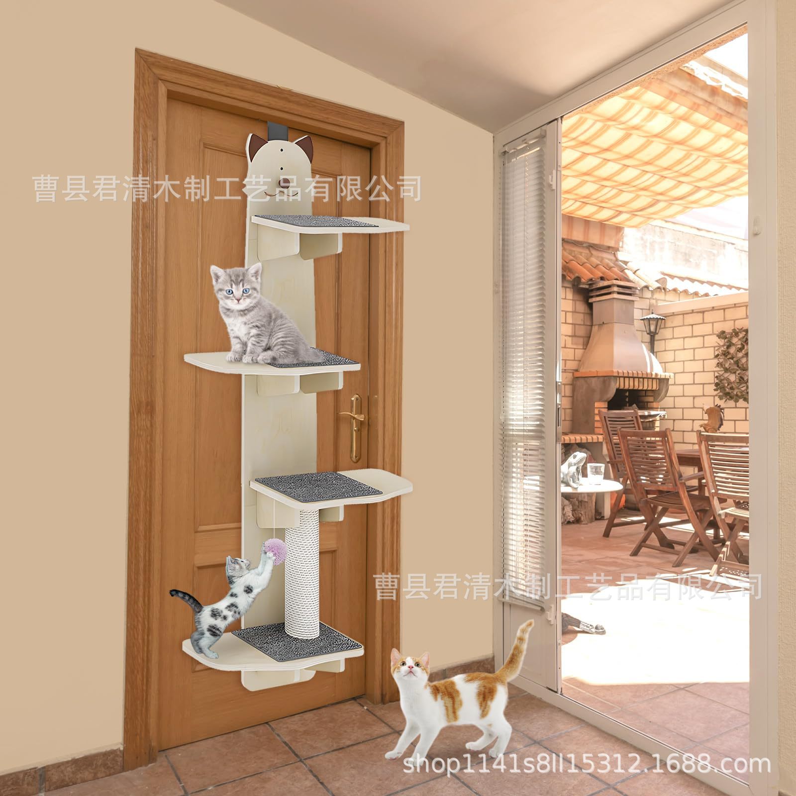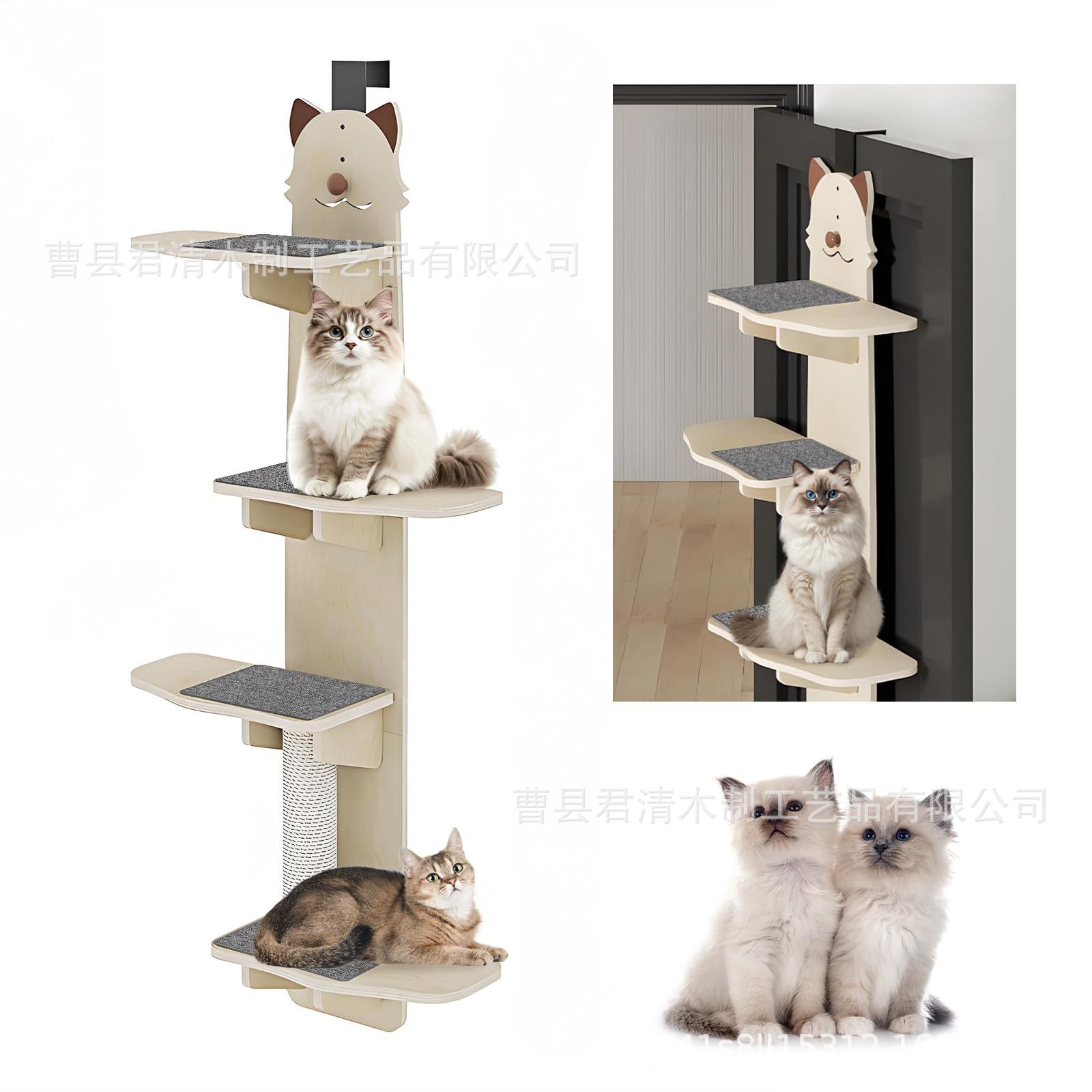 문에 걸린 나무 고양이 클라이밍 프레임, 고양이 점프 플랫폼, 벽에 걸린 다층 고양이 장난감, 공간을 차지하지 않는 고양이 클라이밍 프레임