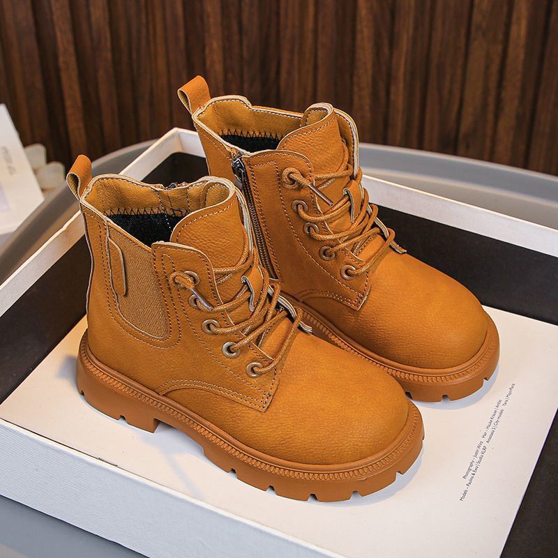 2025 봄과 가을 새로운 스타일 소년 패션 마틴 부츠 소녀 복고풍 캐주얼 작은 가죽 부츠 중형 및 대형 어린이 스노우 부츠