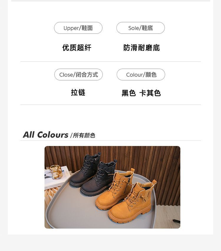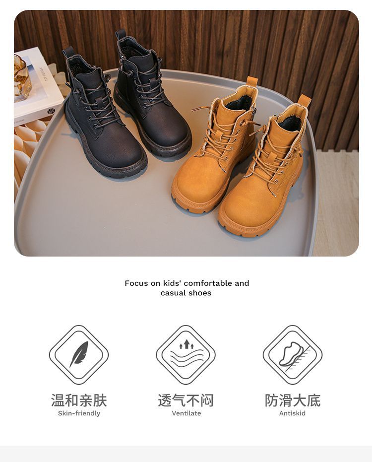 2025 봄과 가을 새로운 스타일 소년 패션 마틴 부츠 소녀 복고풍 캐주얼 작은 가죽 부츠 중형 및 대형 어린이 스노우 부츠스토어 가기