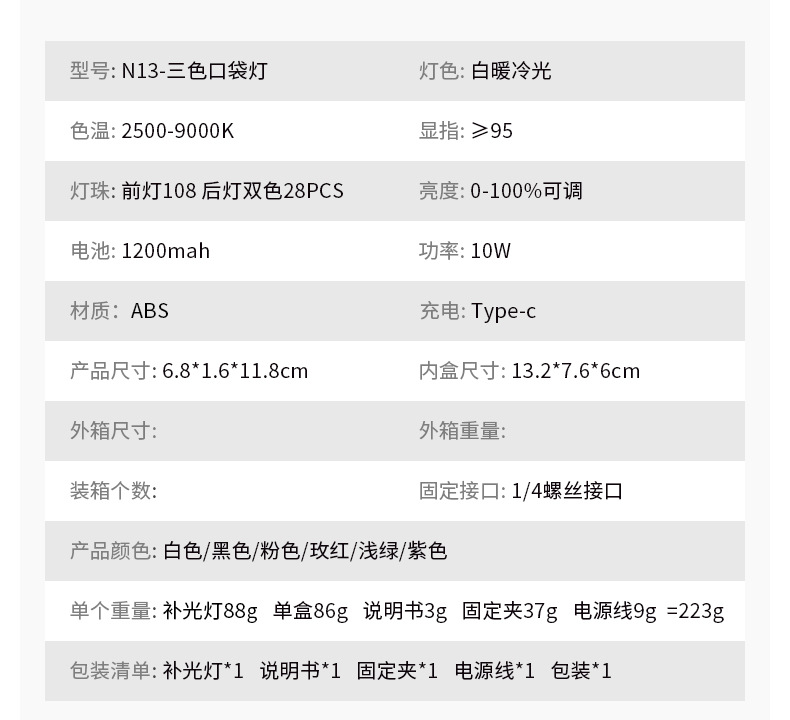 휴대폰 셀카 뷰티 필 라이트 야외 라이브 촬영 비디오 SLR 카메라 사진 조명 포켓 라이트