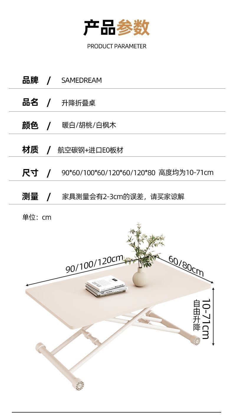 다기능 리프팅 접이식 테이블, 리프팅 가능한 커피 테이블, 식탁, 간단한 이동식 책상, 컴퓨터 테이블, 수납형 책상