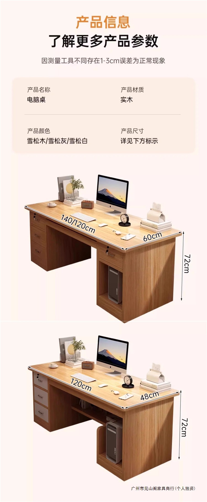 • 고급 원목 생태 보드 [서랍 4개 호스트 위치] 삼나무 색상 120cm