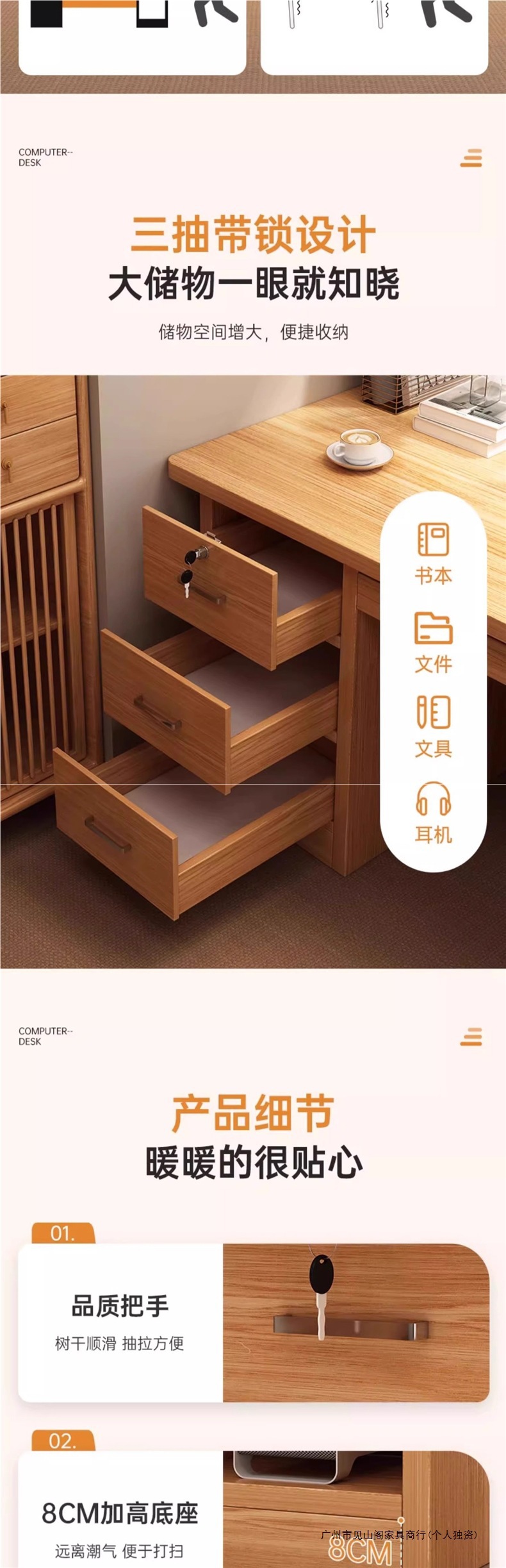 • 고급 원목 생태 보드 [3단 서랍 호스트] 삼나무 색상 120CM