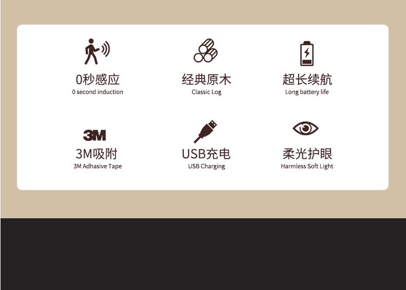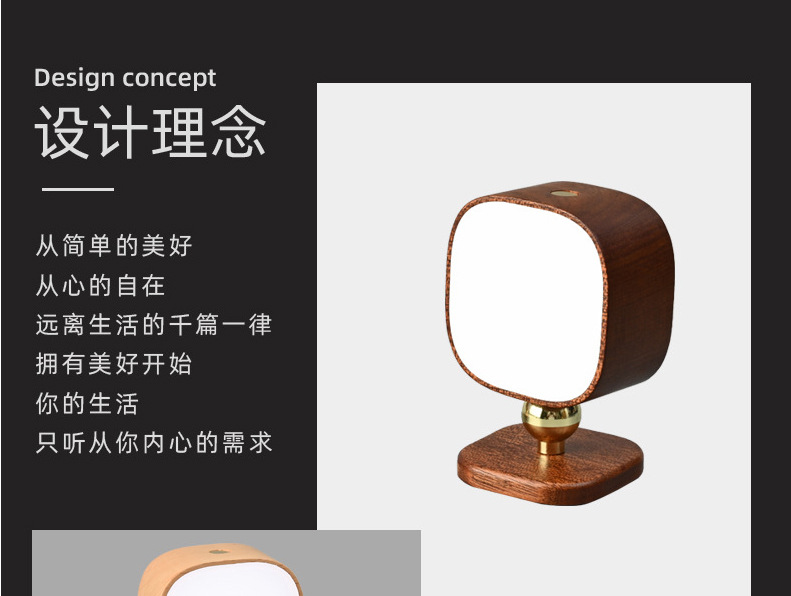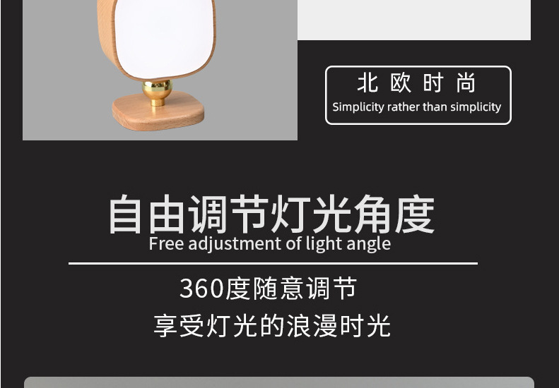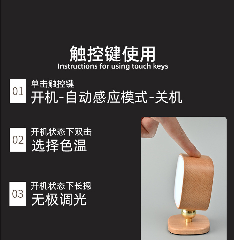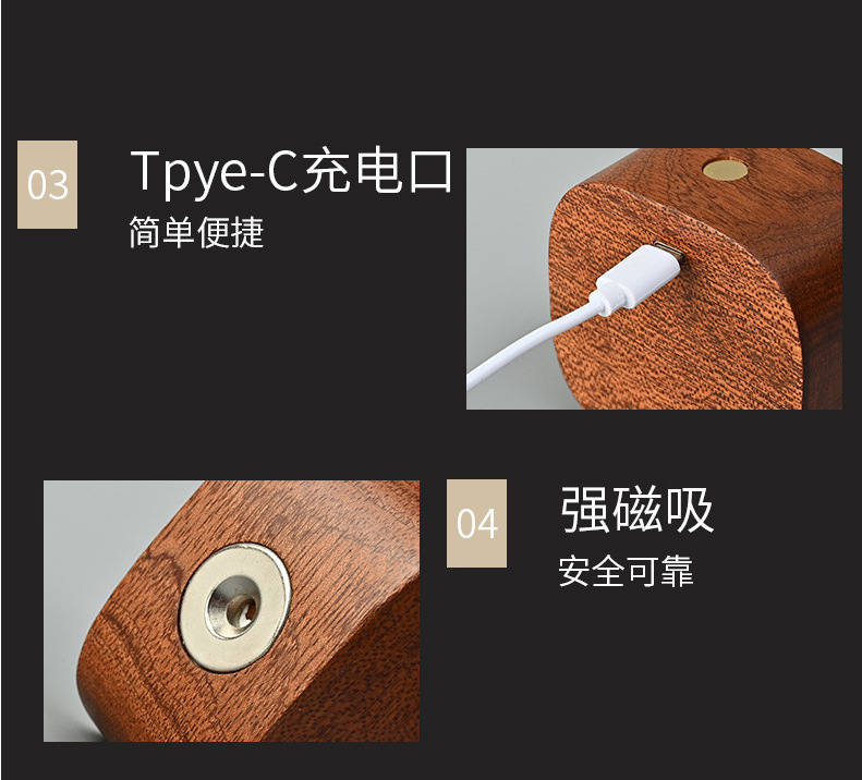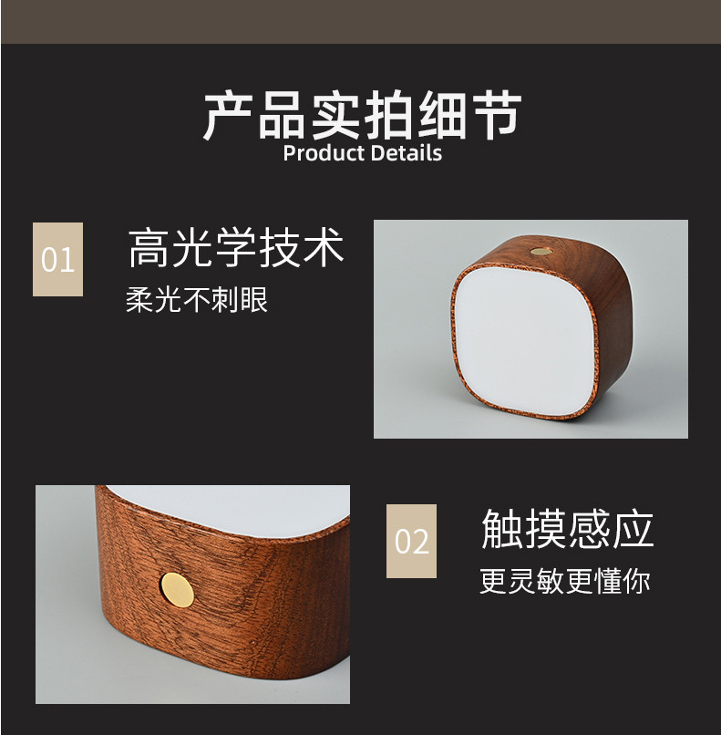 지능형 인체 유도 단단한 나무 야간 조명 장식품 빛나는 휴대용 무선 충전 새로운 창 레이더 유도 테이블 램프