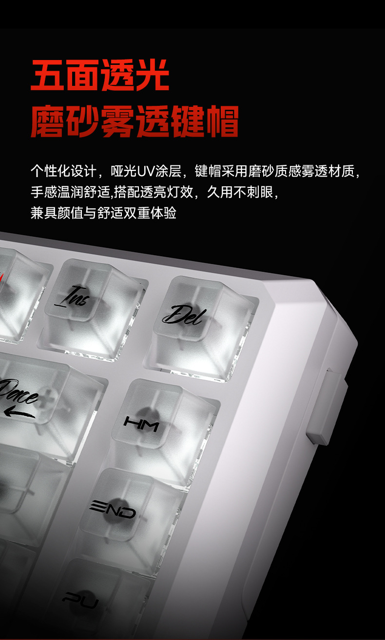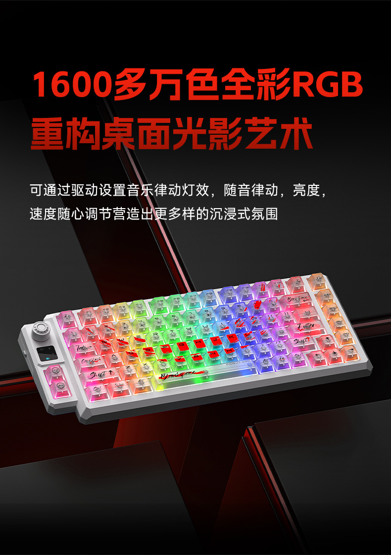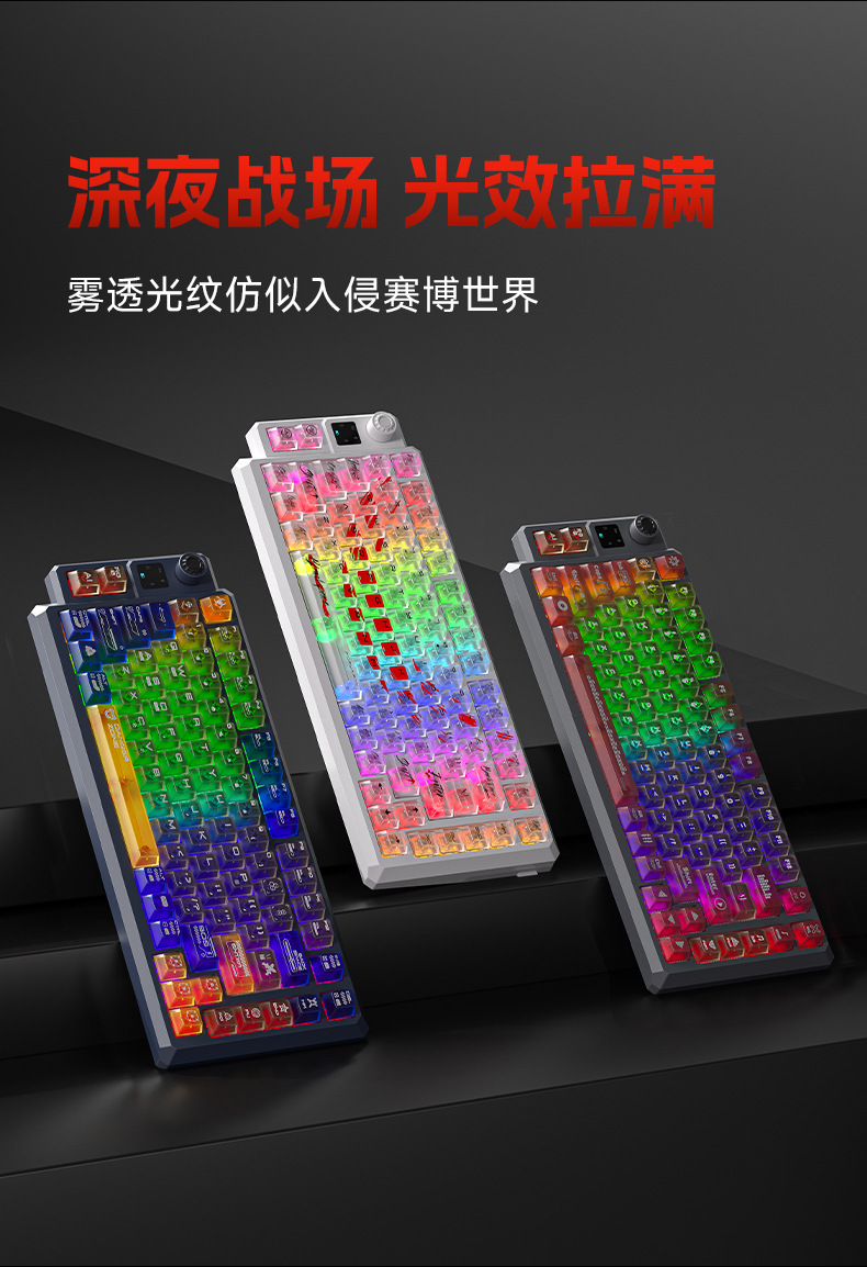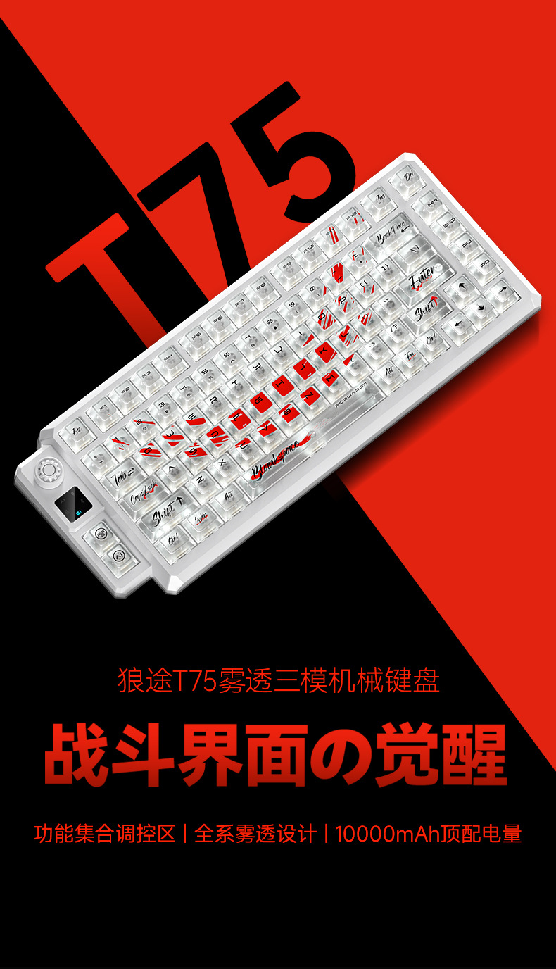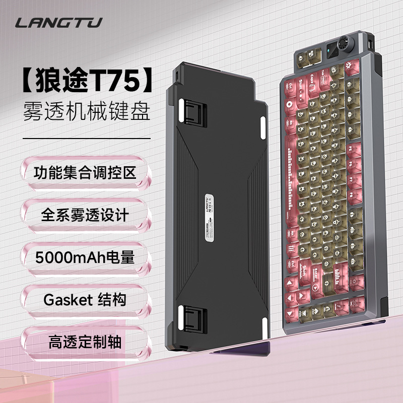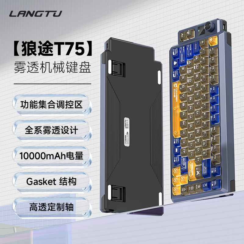 狼途T75竞技游戏办公专用无线键盘客制化热插拔透明键帽机械键盘