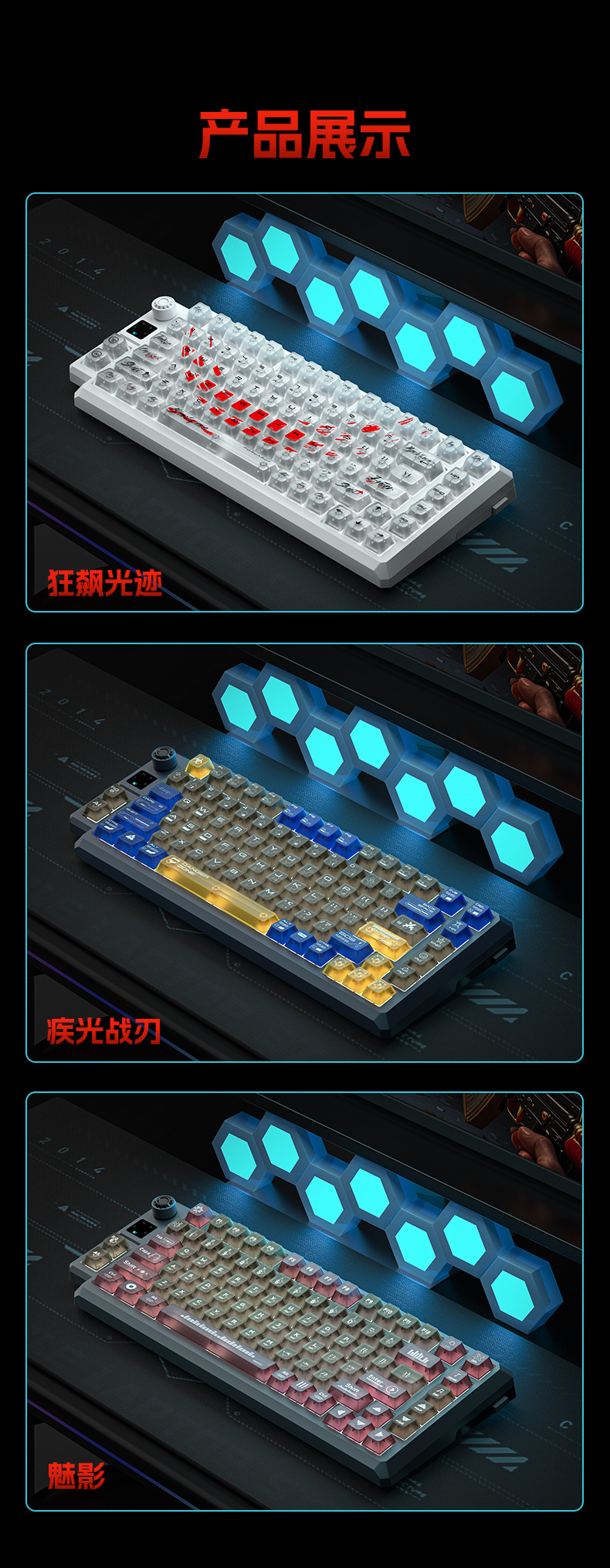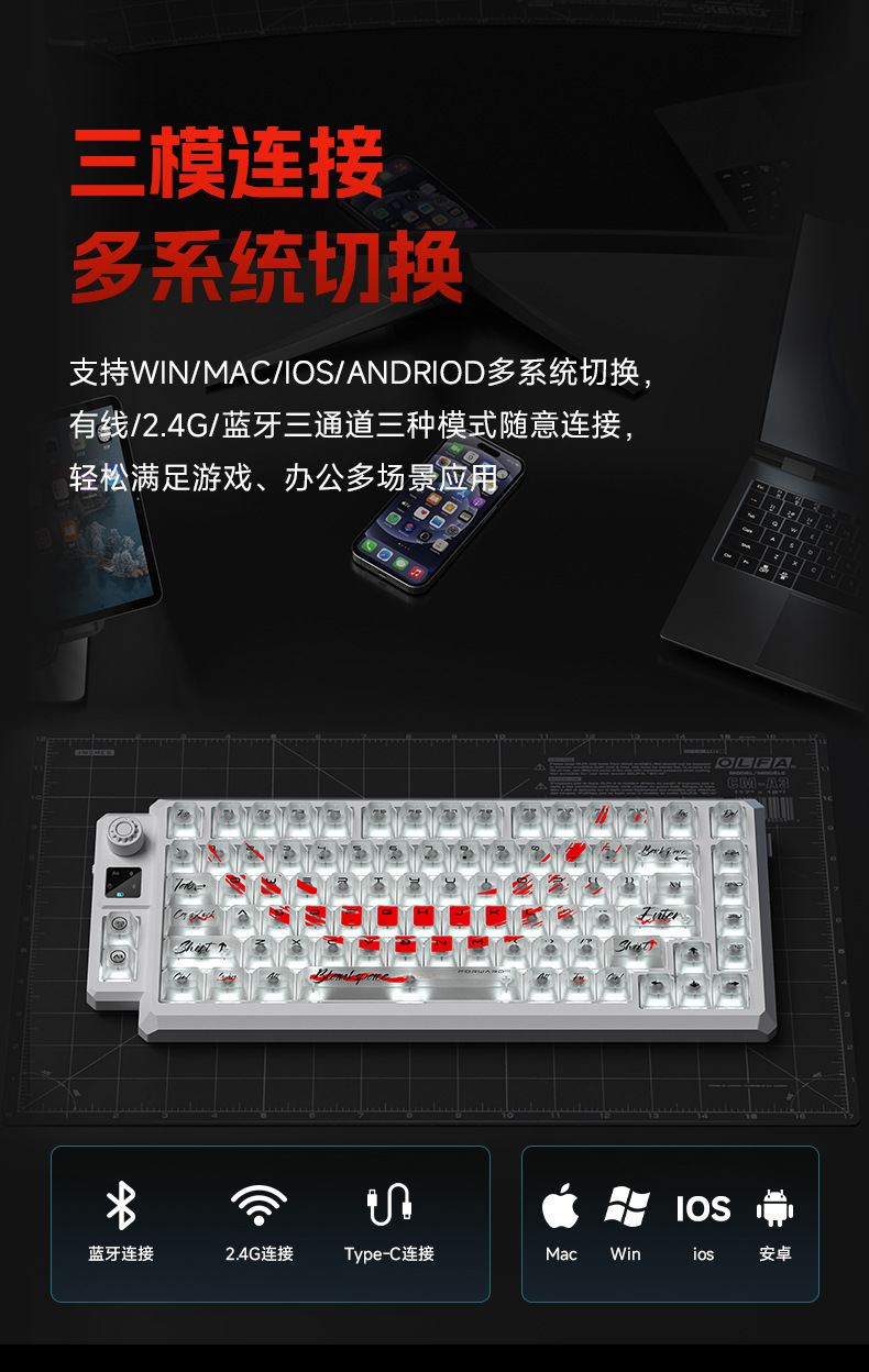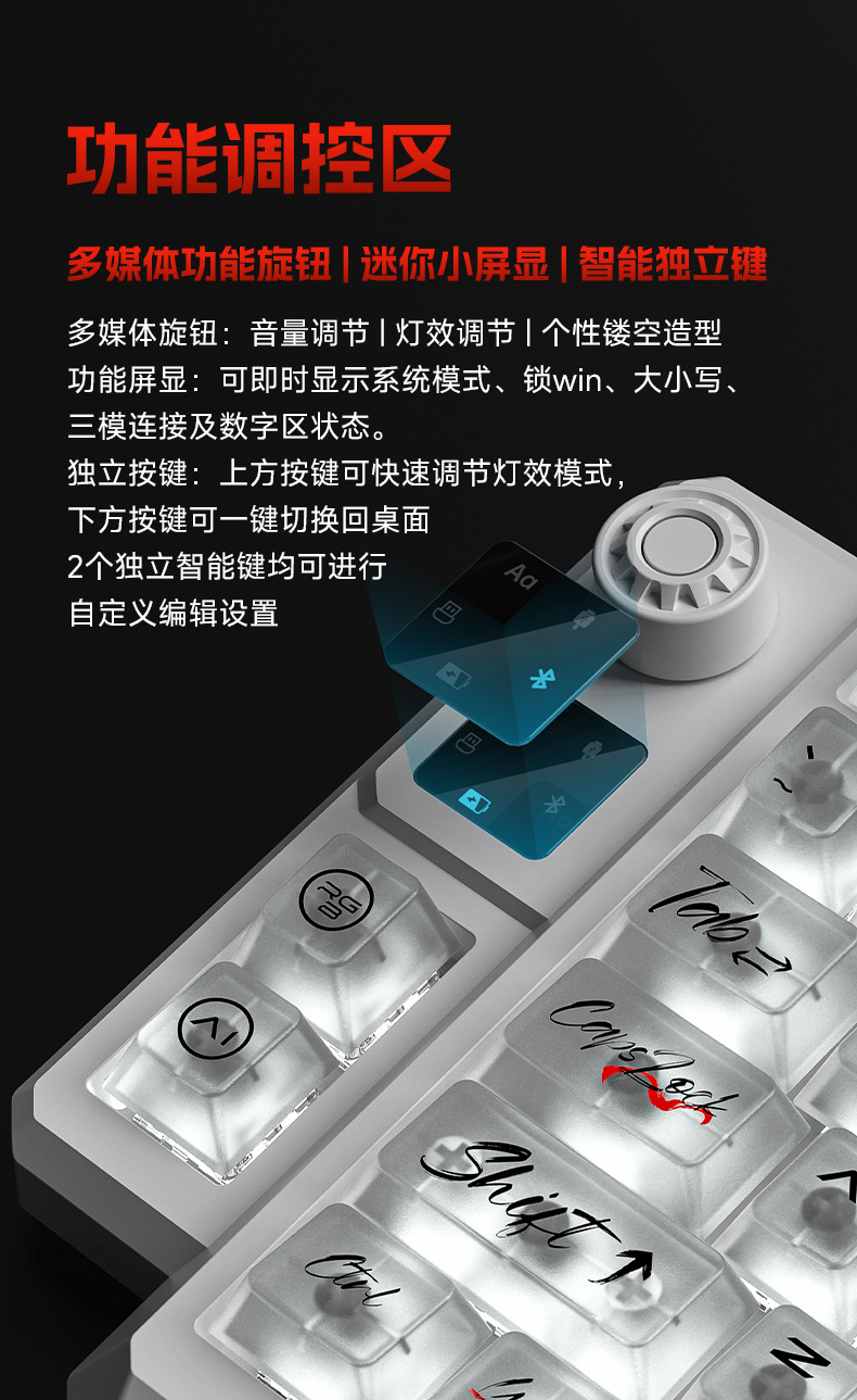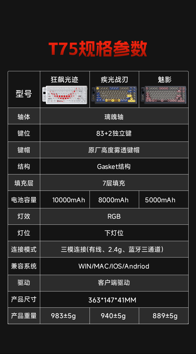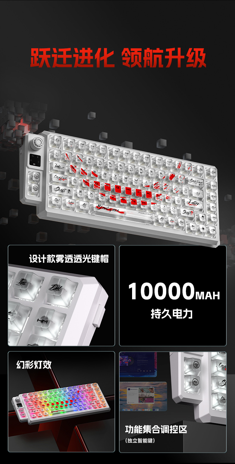 狼途T75竞技游戏办公专用无线键盘客制化热插拔透明键帽机械键盘